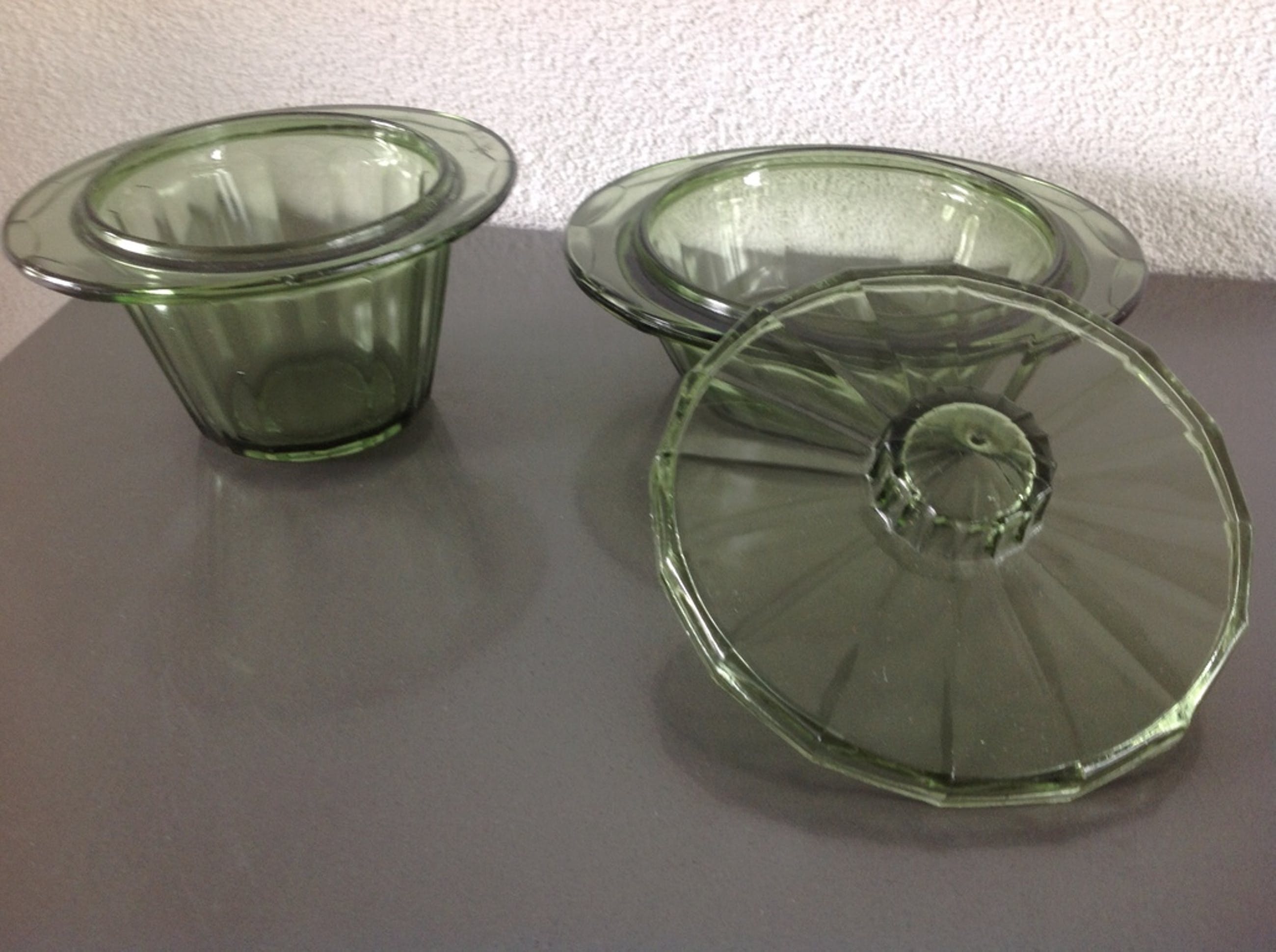 Twee item van het servies "Neerlandia" dat Copier in 1939 ontwierp voor de glasfabriek "Leerdam".