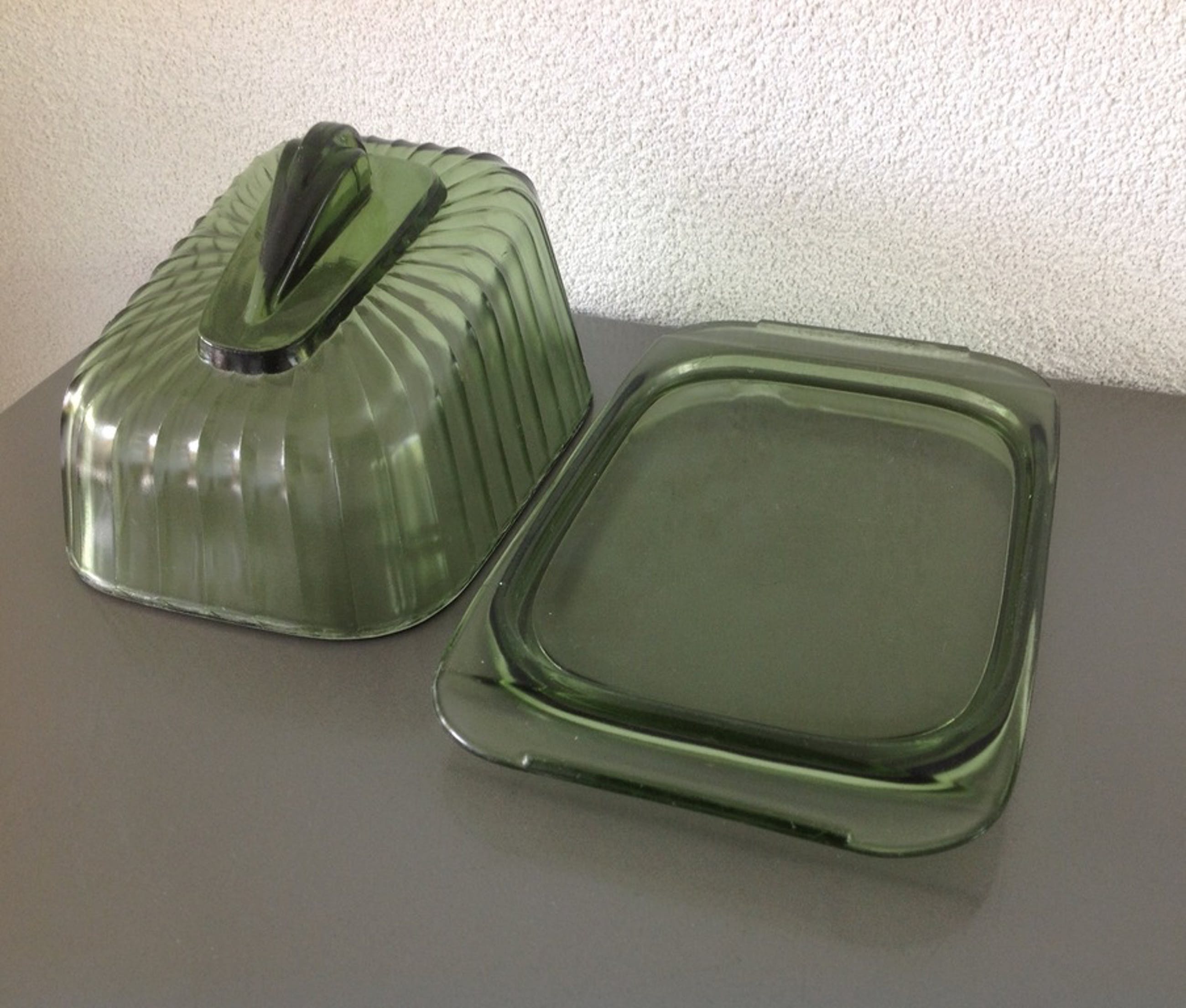 De groenglazen kaasstolp is in 1939 ontworpen door Andries Copier voor de glasfabriek "Leerdam".