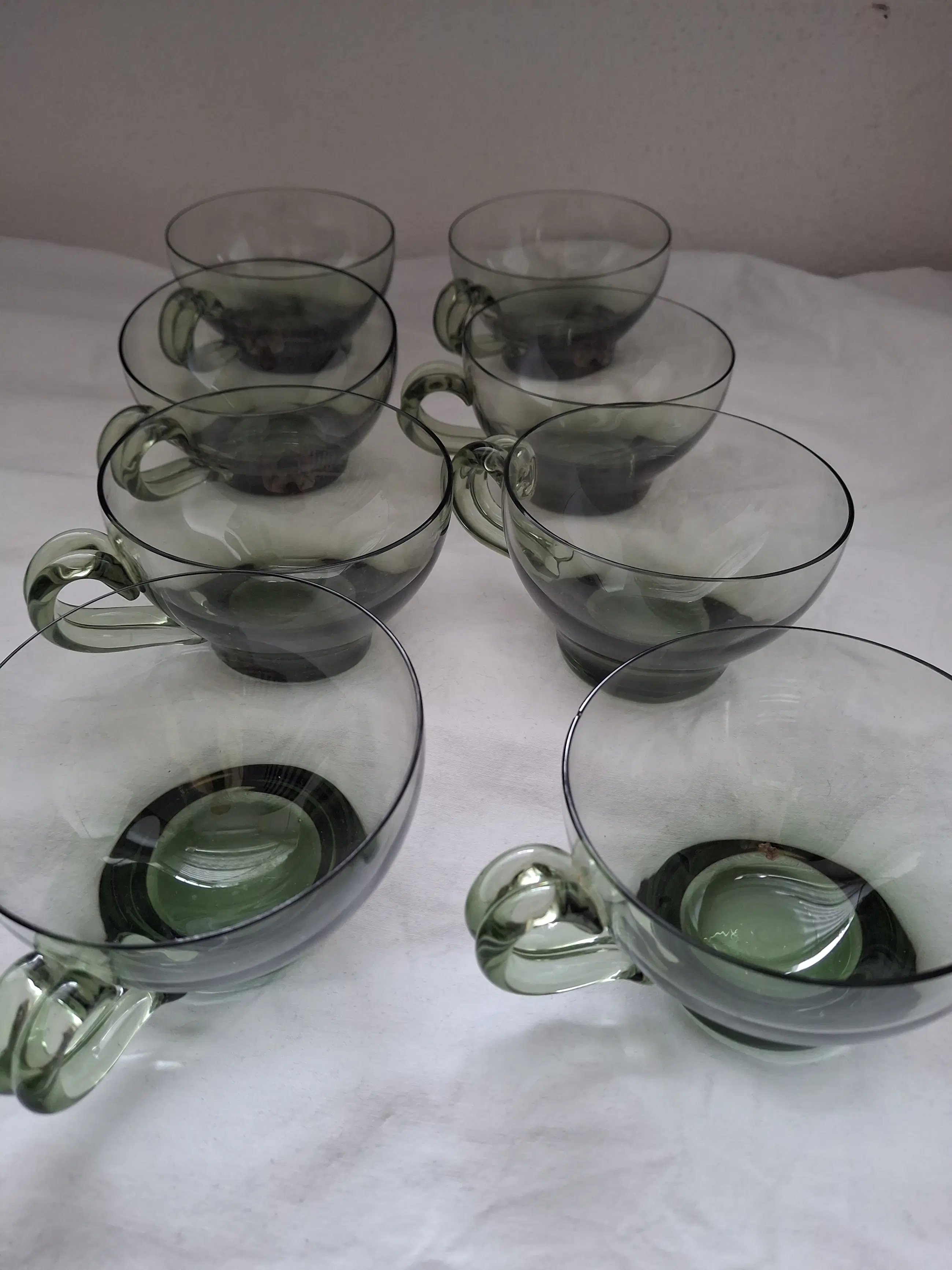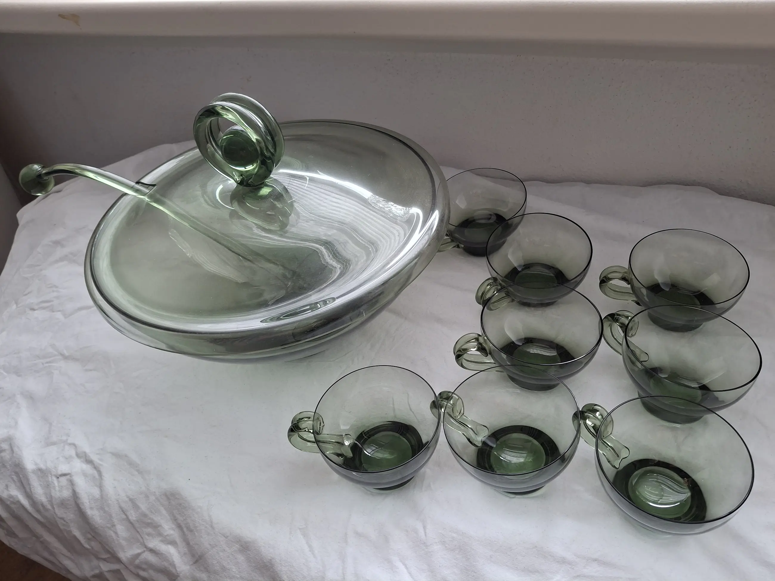 Bowlset AD Copier Kleur: groen Doorsnede schaal: 30cm 8 kopjes ( 1 met minieme chip aan de rand) Allen gemerkt(schaal en kopjes)