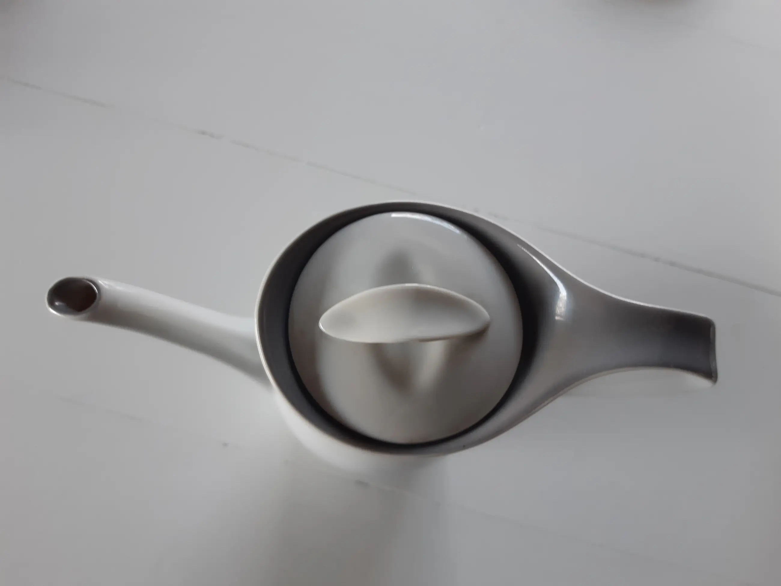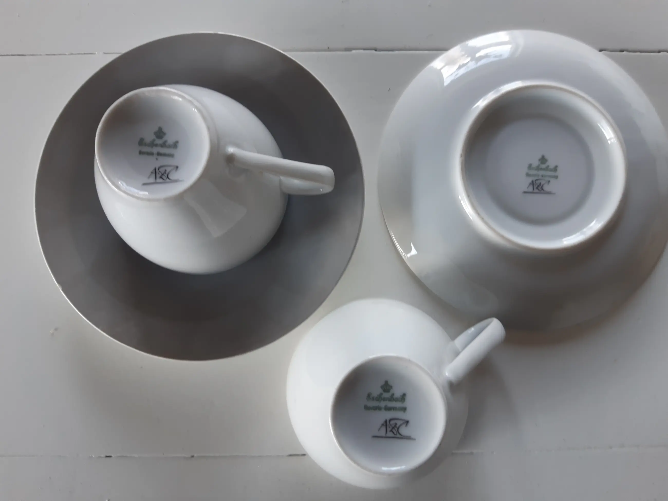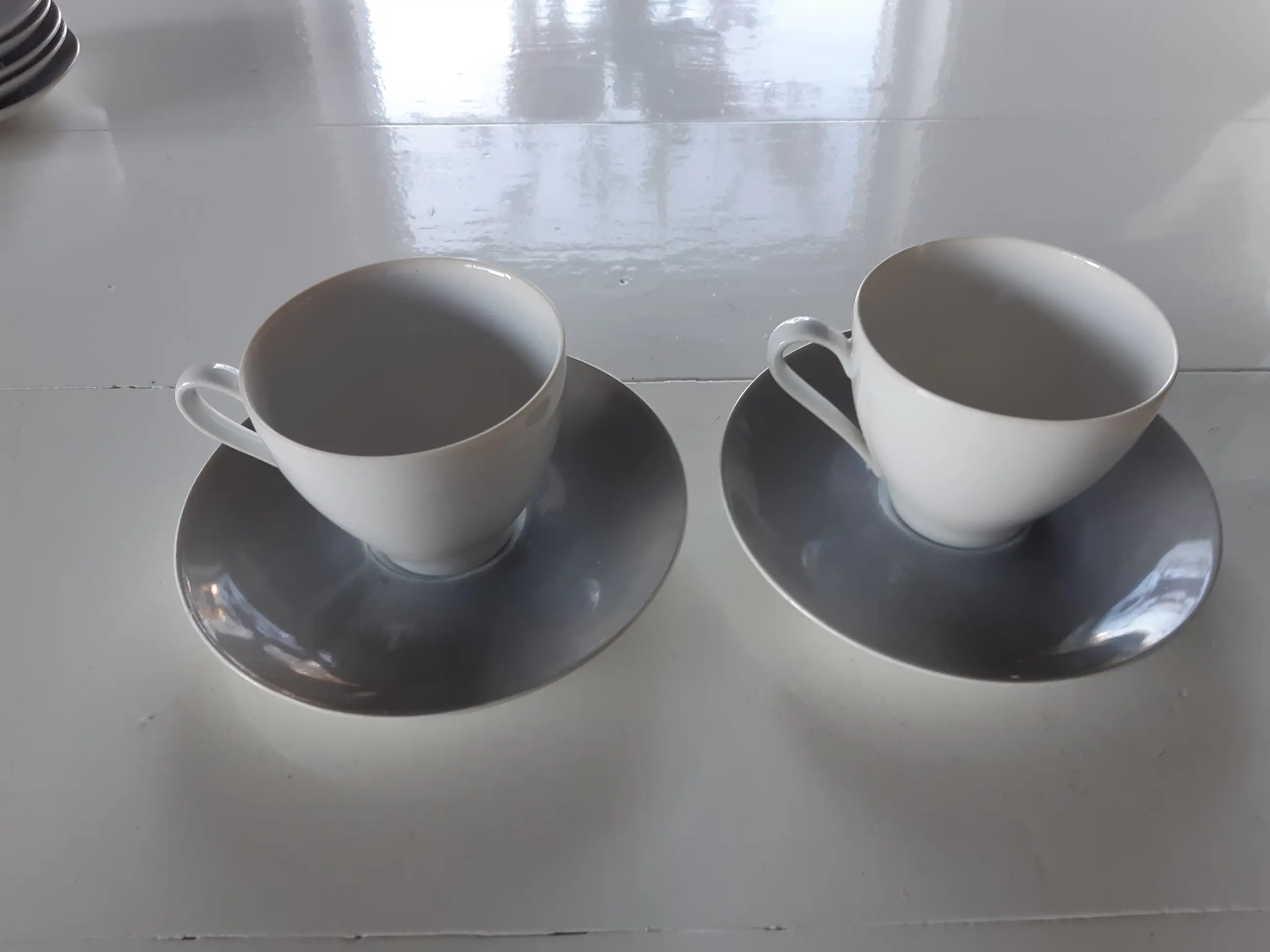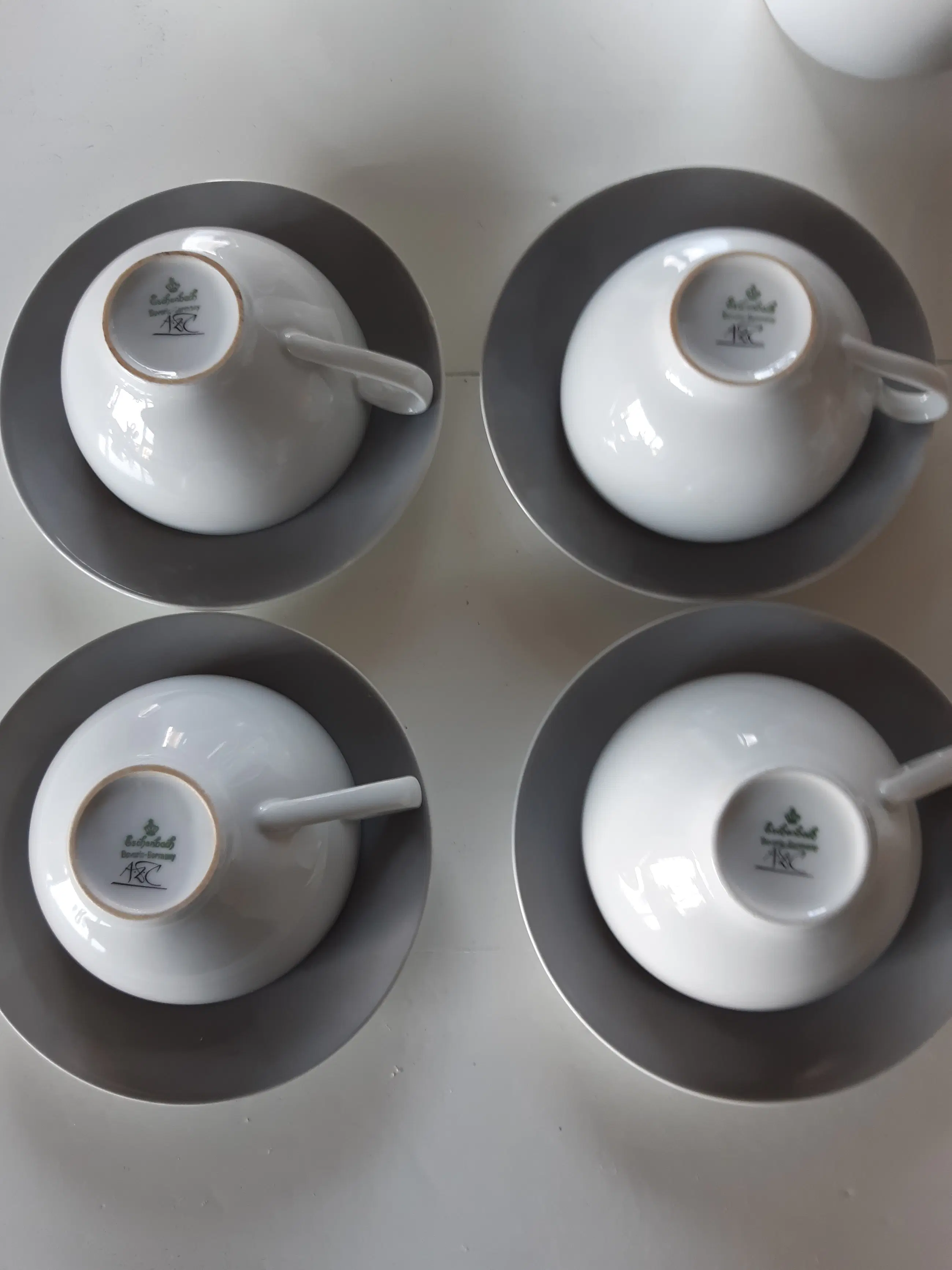 Elegant servies van Copier en Eschenbach bestaand uit Koffiekan Theepot Melkkannetje en suikerpot 2 koffiekopjes 4 theekopjes 5 extra schoteltjes Mooi servies in wit met grijze accenten