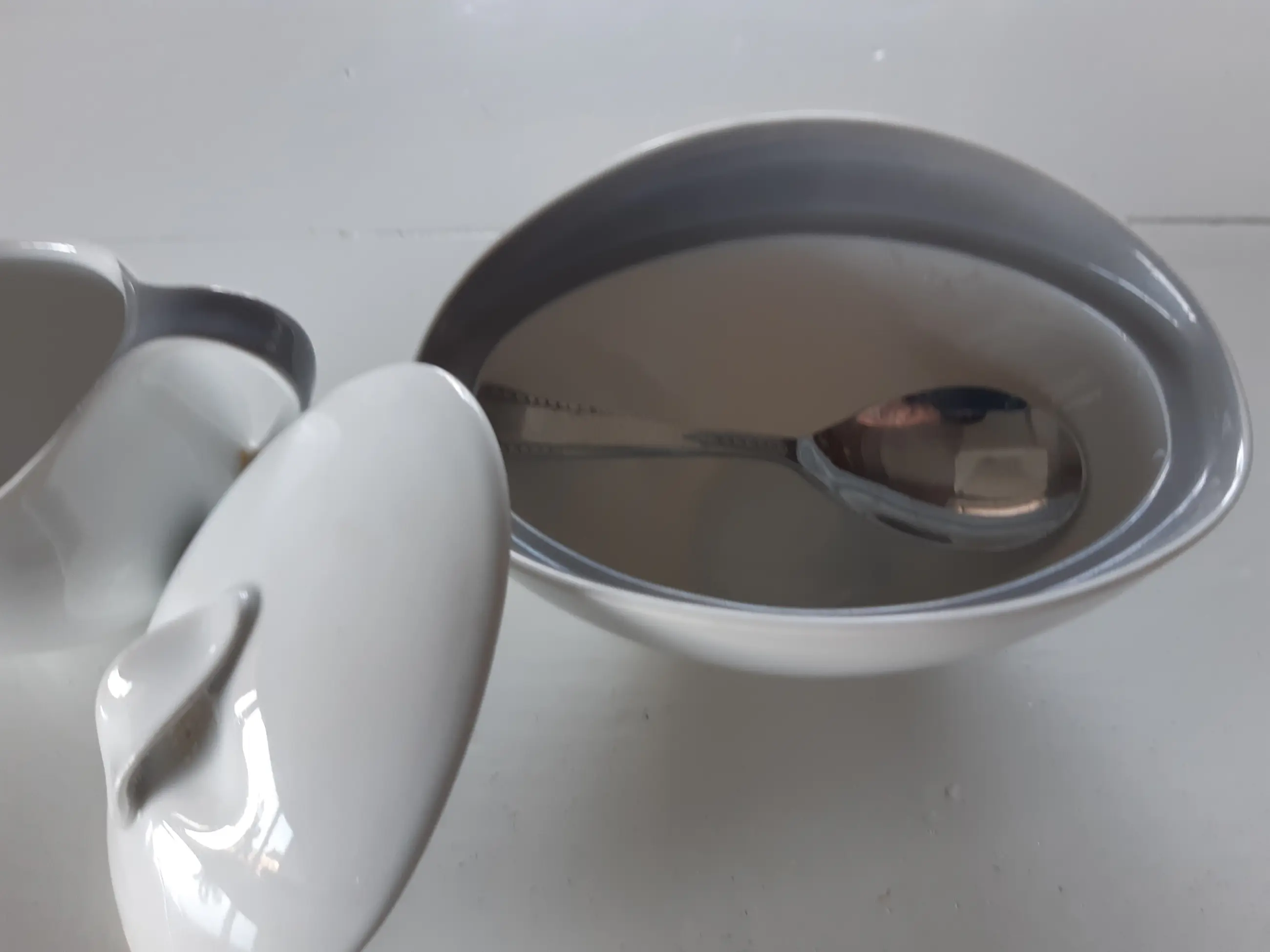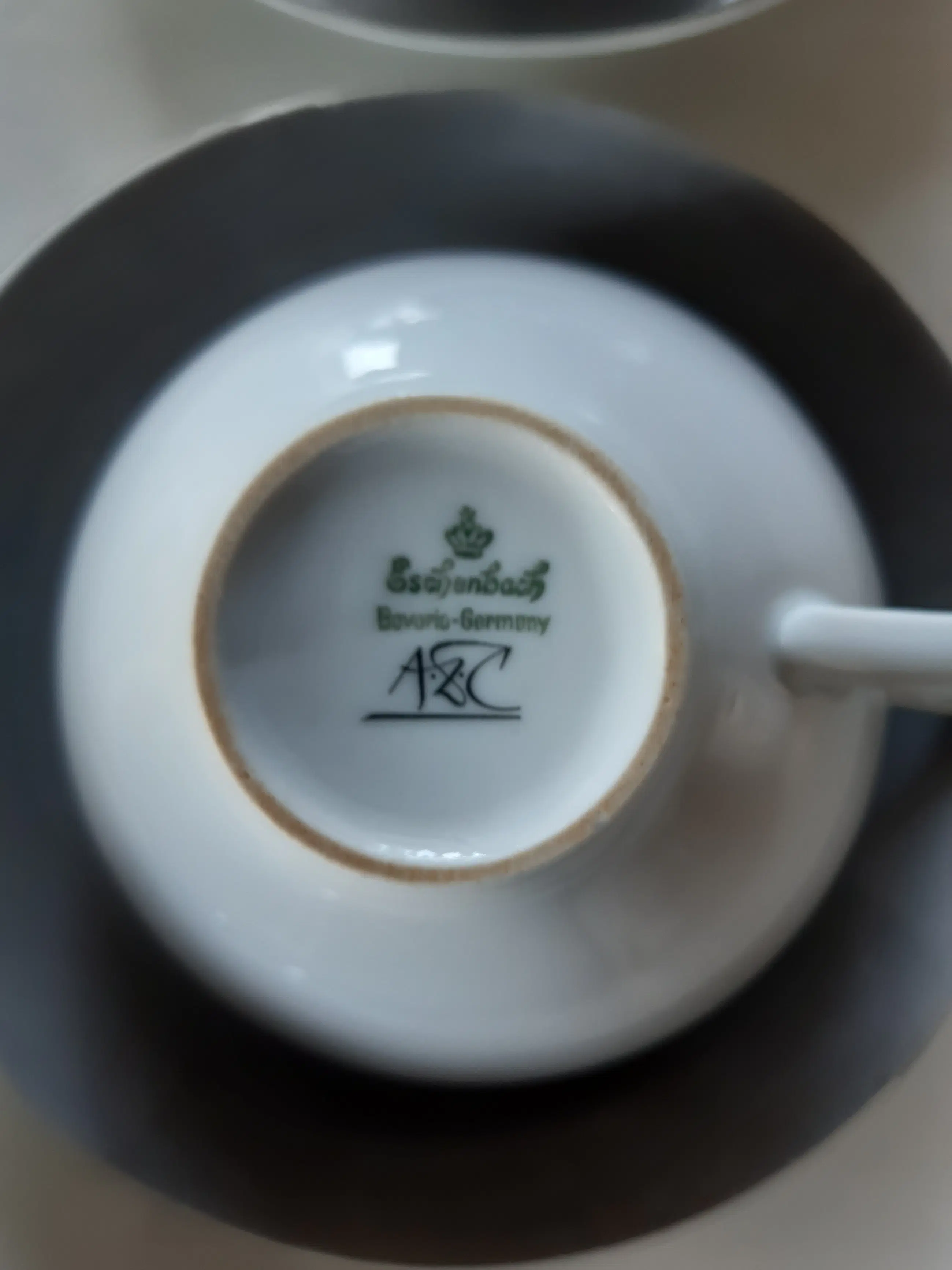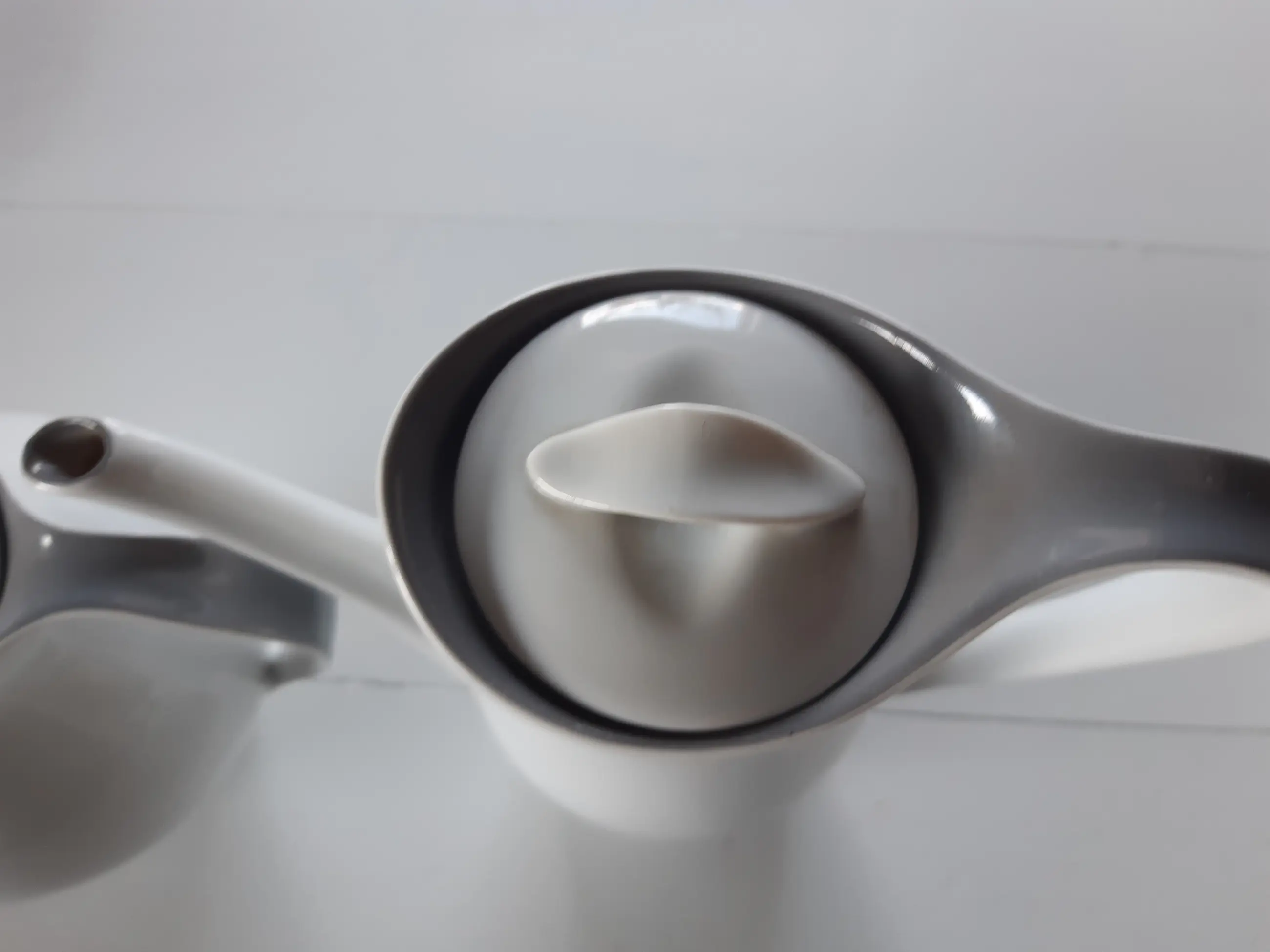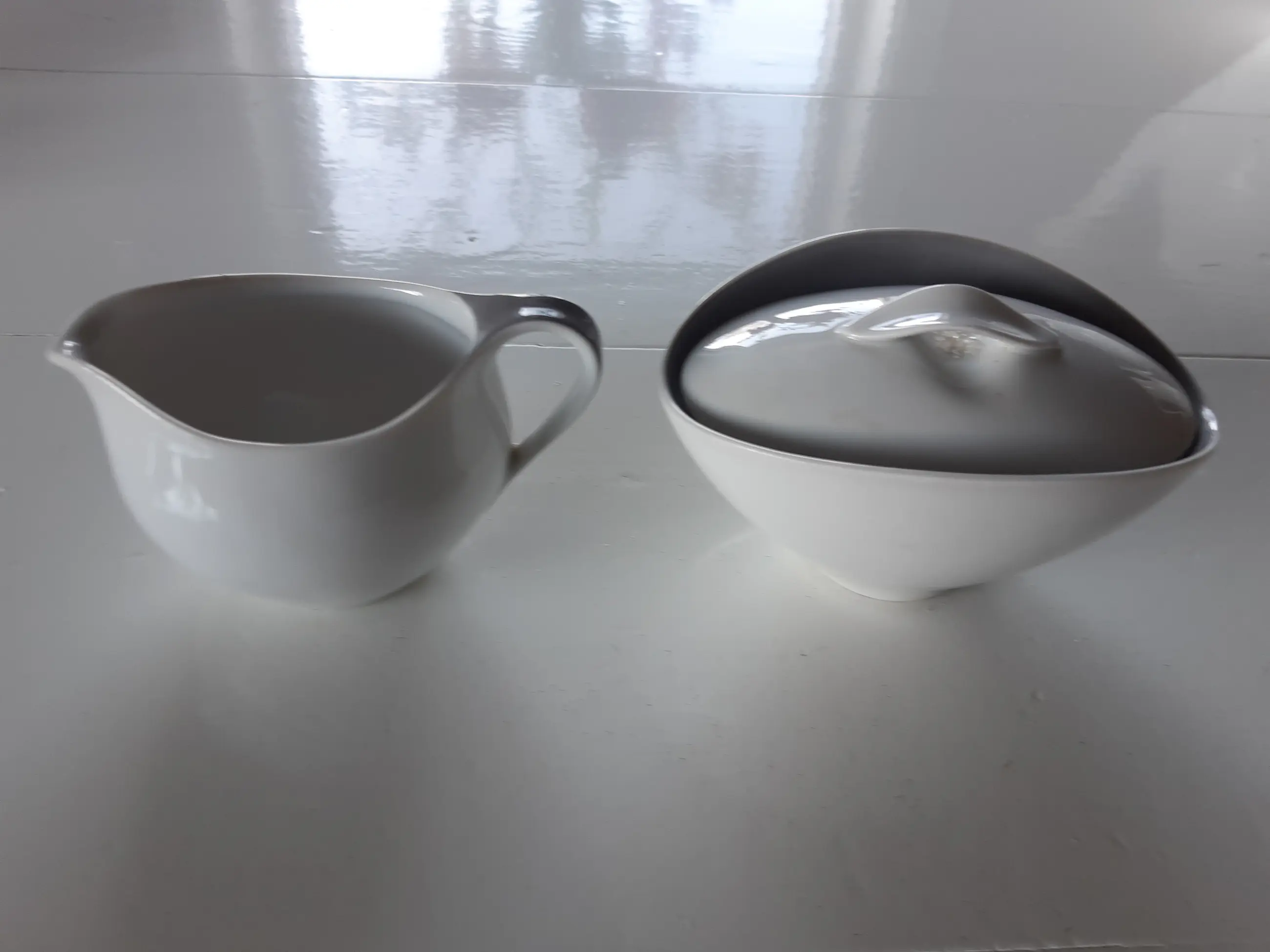 Elegant servies van Copier en Eschenbach bestaand uit Koffiekan Theepot Melkkannetje en suikerpot 2 koffiekopjes 4 theekopjes 5 extra schoteltjes Mooi servies in wit met grijze accenten