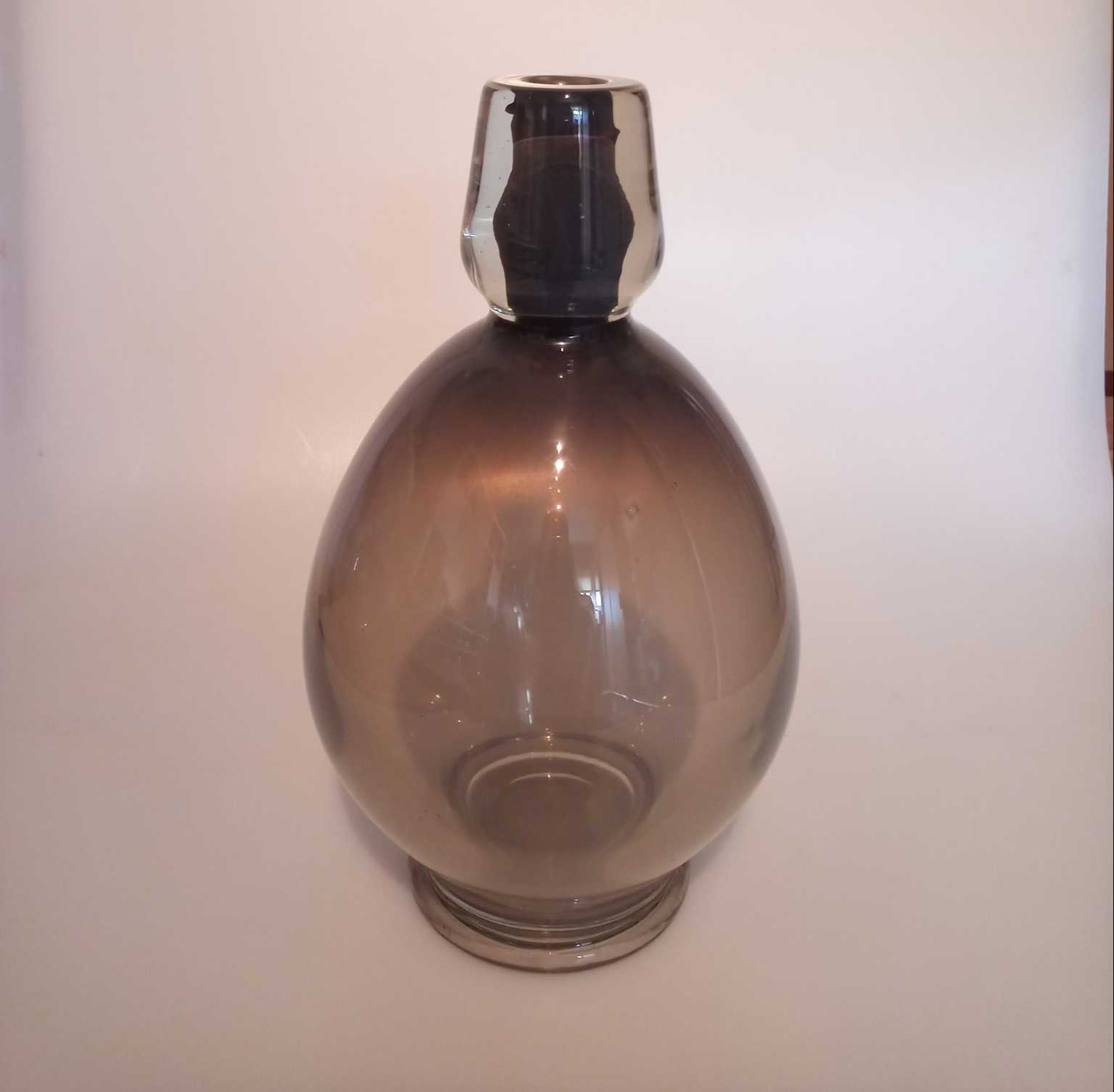Leerdam Unica vaas uit 1943 van Andries Copier, geblazen in de Glasfabriek Leerdam onder serienummer V1012. Deze unieke vaas is handgesigneerd en verkeert in uitmuntende conditie, op wat luchtbelletjes & schuifkrasjes na.