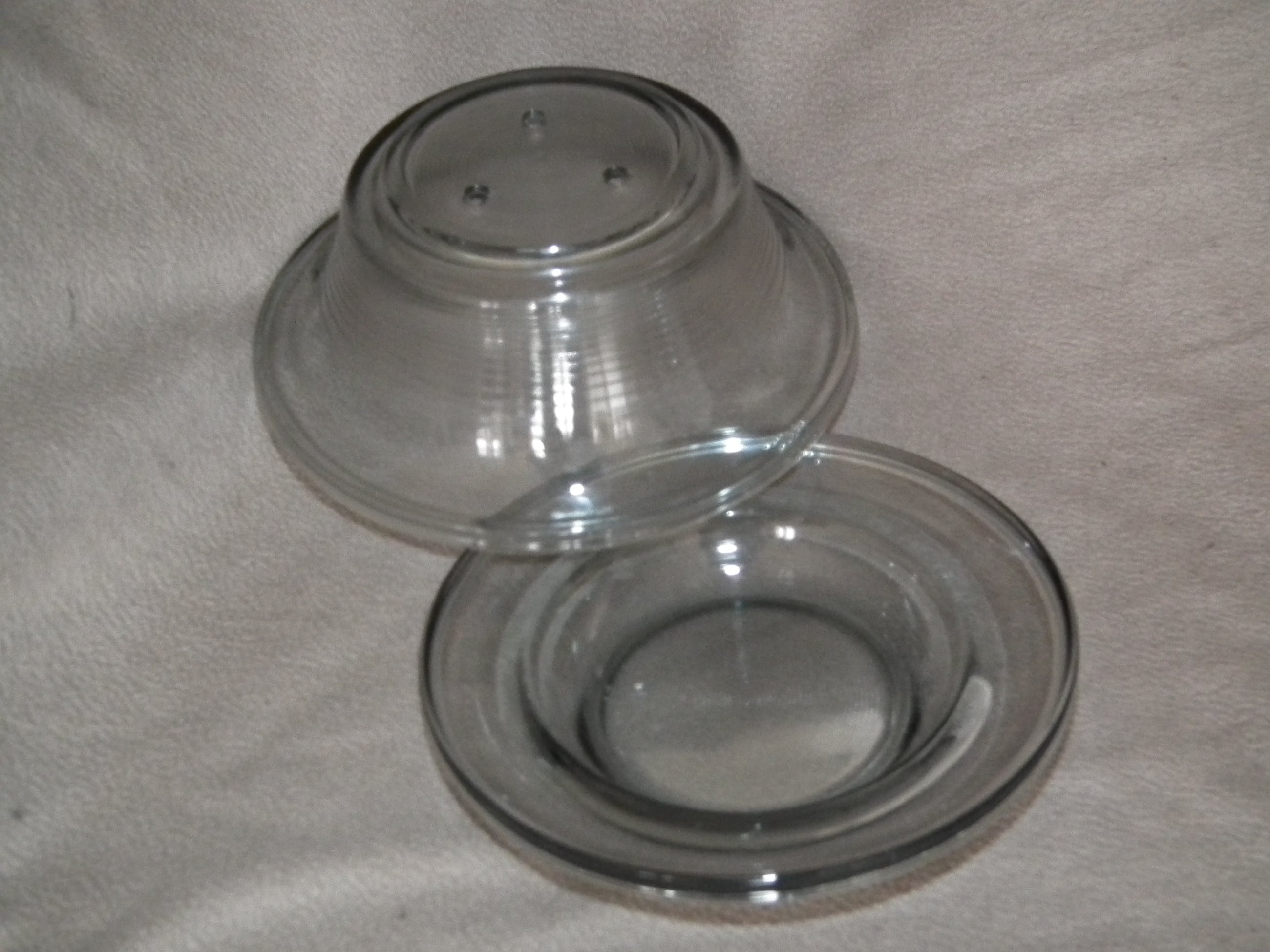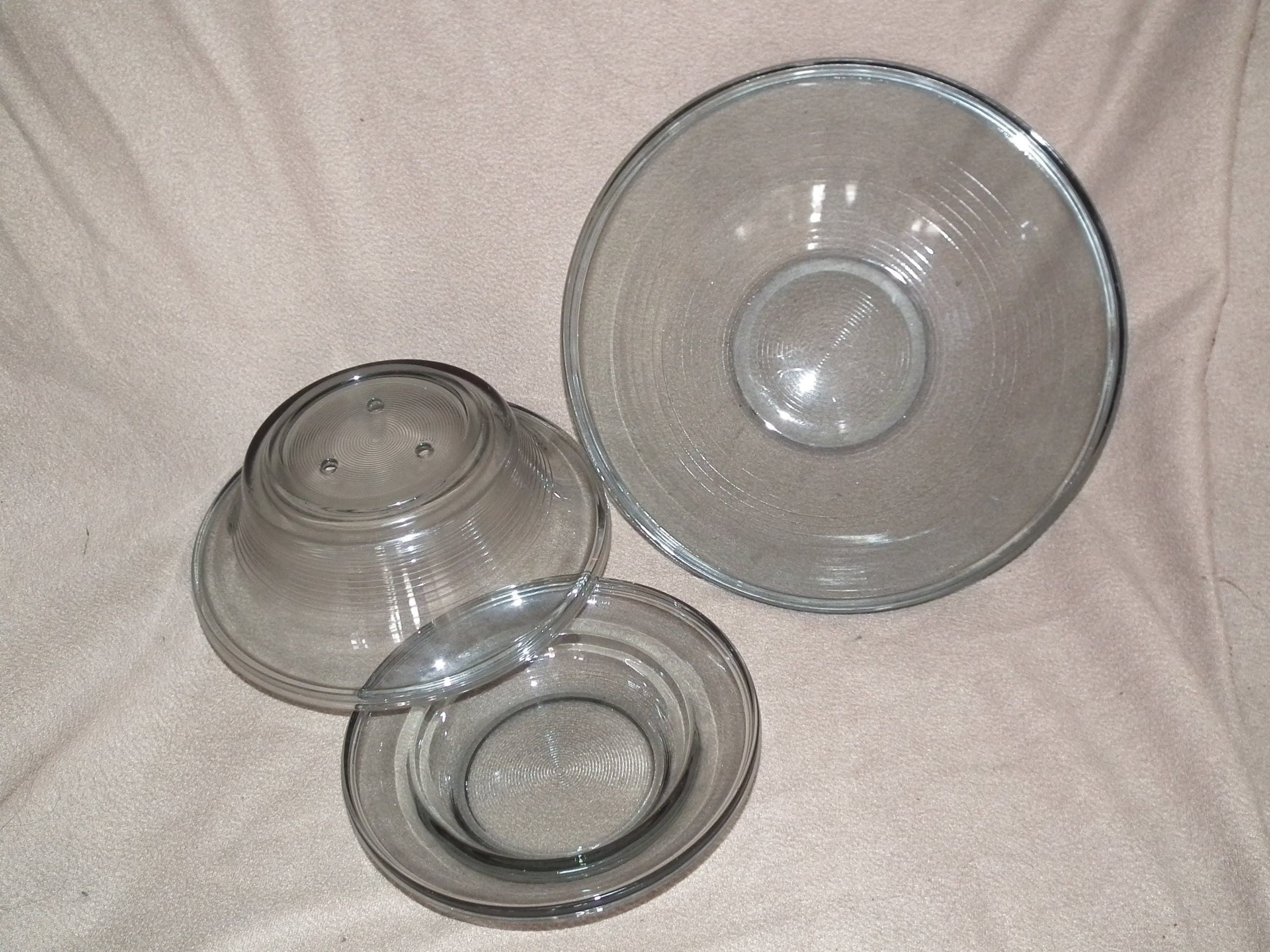 In zeer nette staat verkerende set van de fruittest of uitlekschaal met onderbord en een grote fruitschaal van 28 Cm diameter en hoogte van net geen 7 Cm.