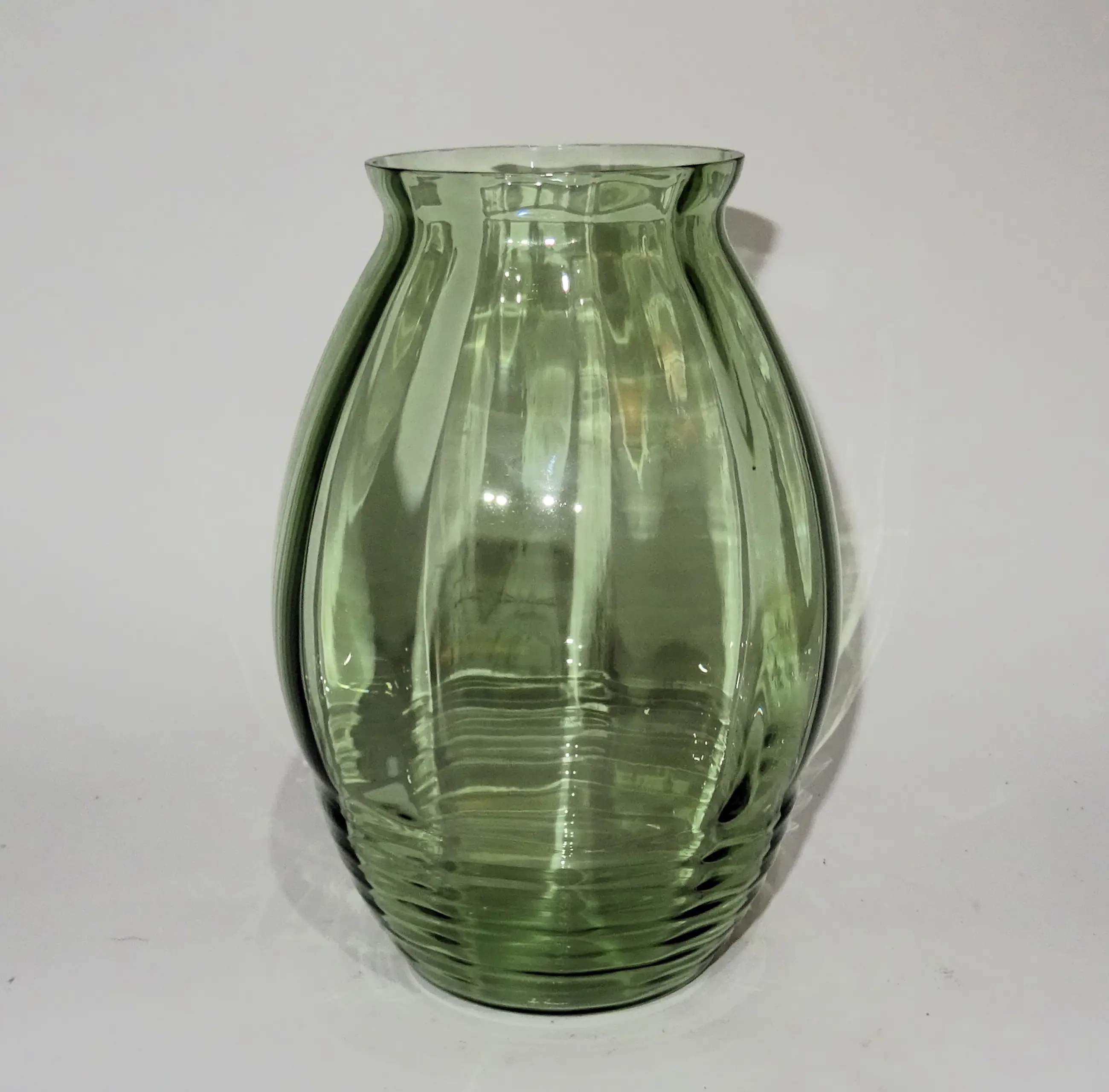 Een smaragdgroene vaas uit de huishoudcollectie. Ontwerp A.D. Copier voor Glasfabriek Leerdam jaren zestig.