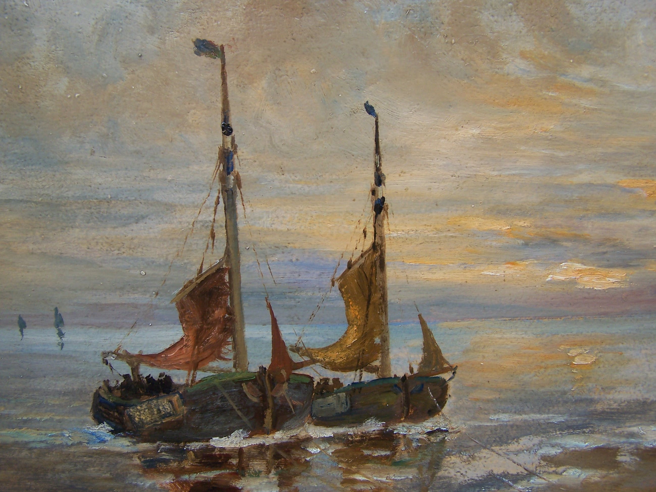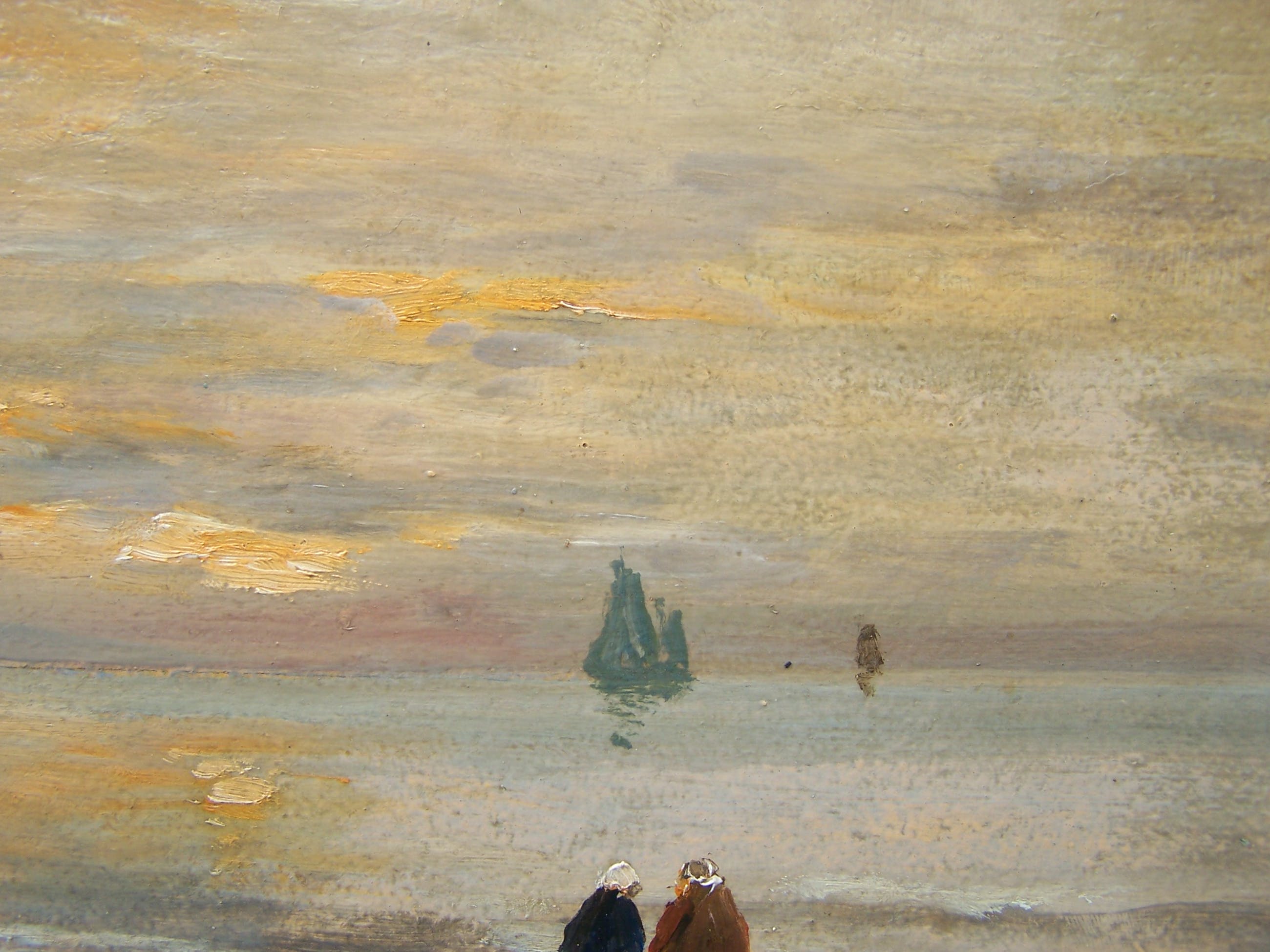 Mooi nostalgisch tafereel van bomdchuiten aan het strand en twee visersvrouwen.