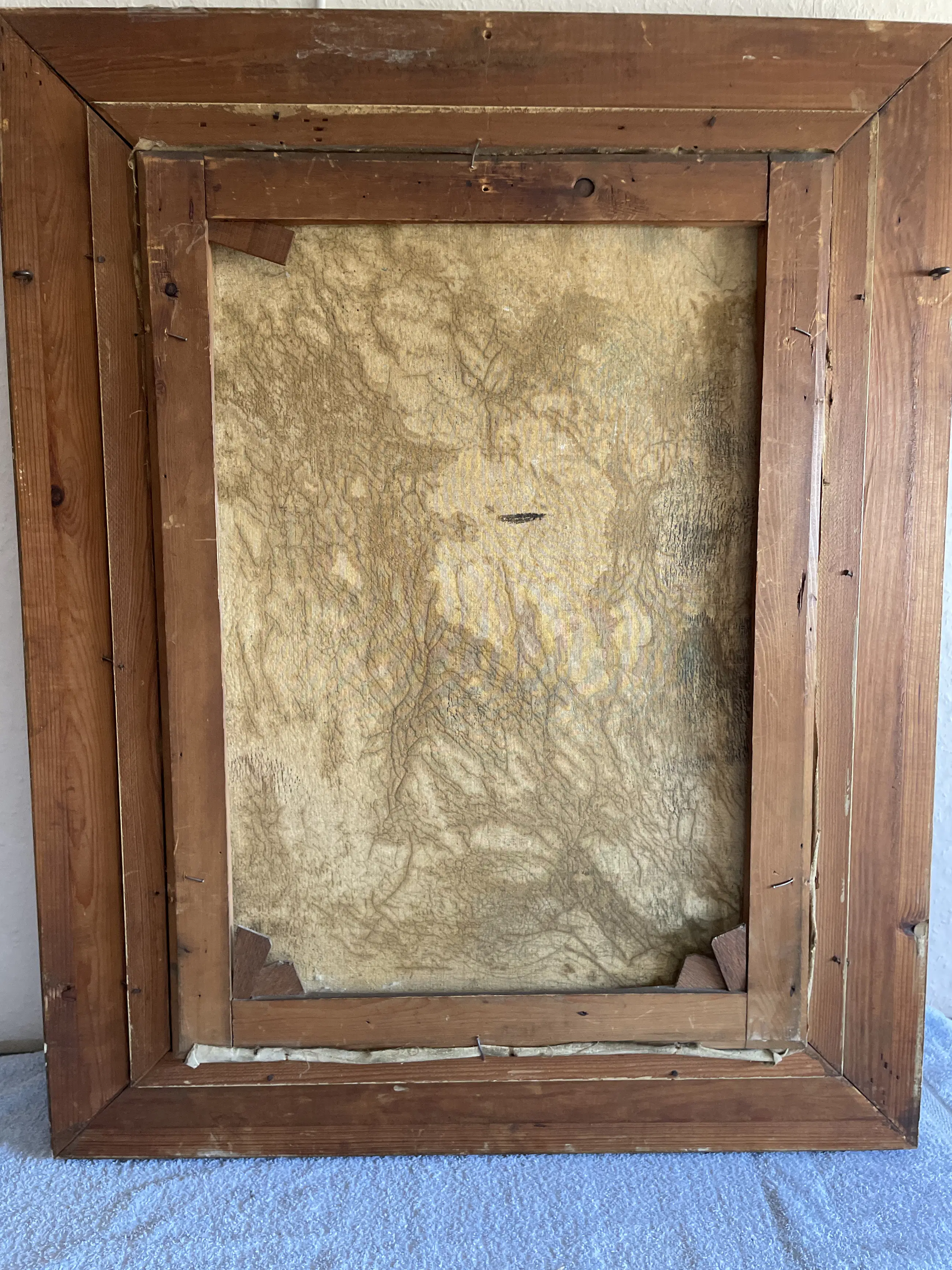 Het doek is vrij van grote schade. Het olieverfschilderij vertoont lichte vergeling en craquelé. De binnenlijst is licht kromgetrokken. Er zijn kleine beschadigingen zichtbaar.