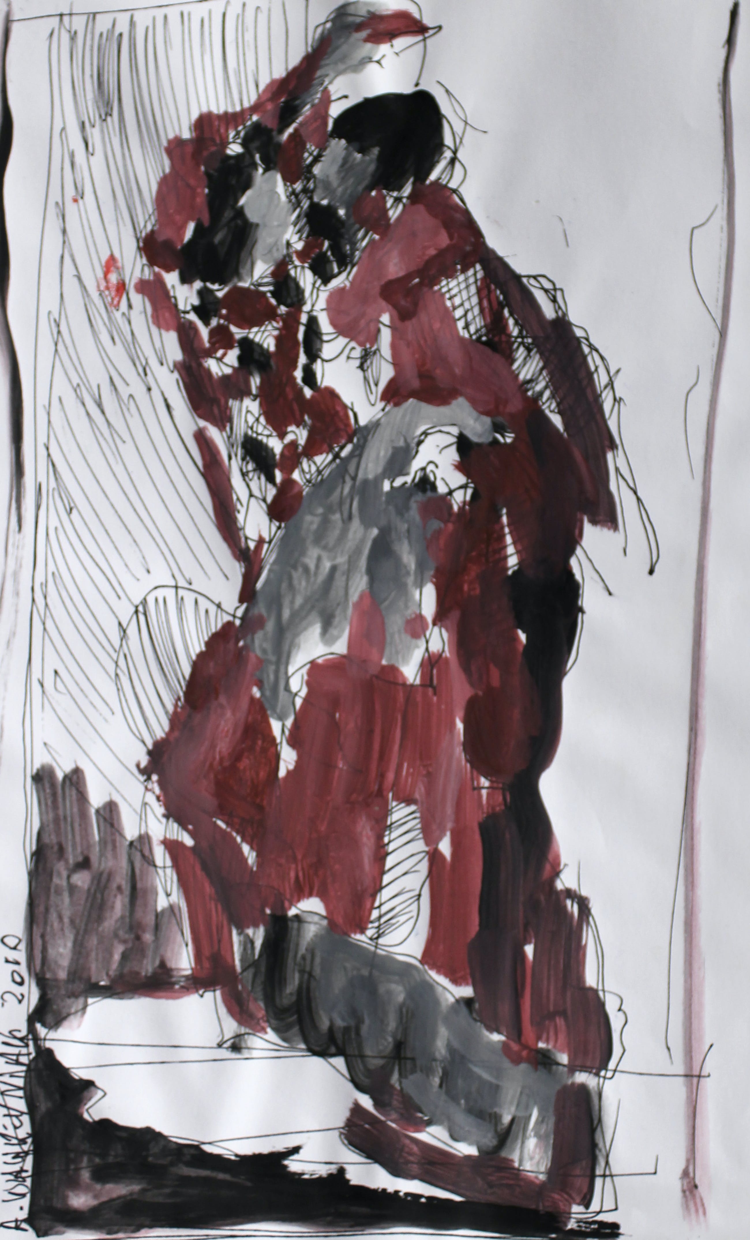 Studie in acryl en inkt van deze, van origine, Poolse schilder. Opleiding: Kunstacademie Moskou. Woont en werkt sinds begin jaren '80 in Nederland. Typische Oost-Europese stijl, met een groot vakmanschap. Sterke kleurontwikkeling.