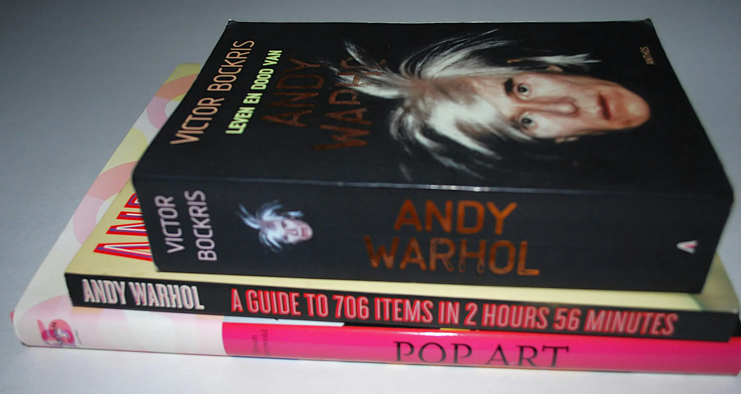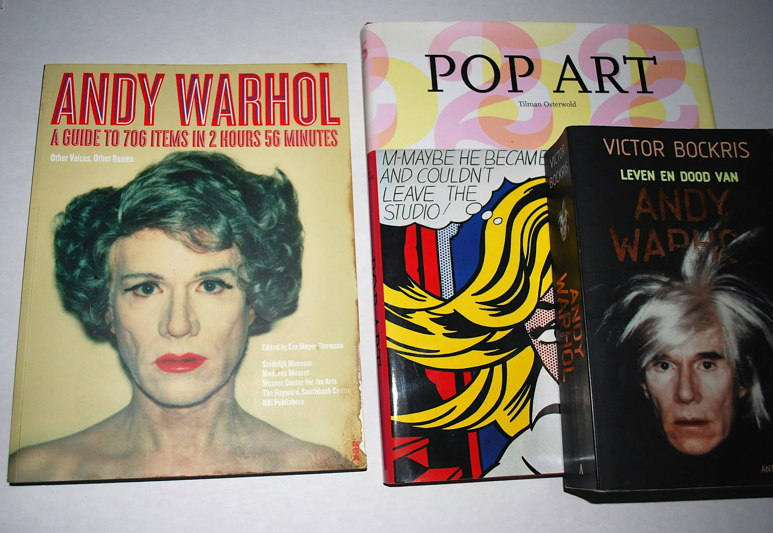 - A guide to 706 items - Stedelijk Museum 2008. - Leven en dood van Andy Warhol, 700 pag! ook geïllustreerd. - Pop Art, hardcover uitgave Taschen 2011, 240 pag.