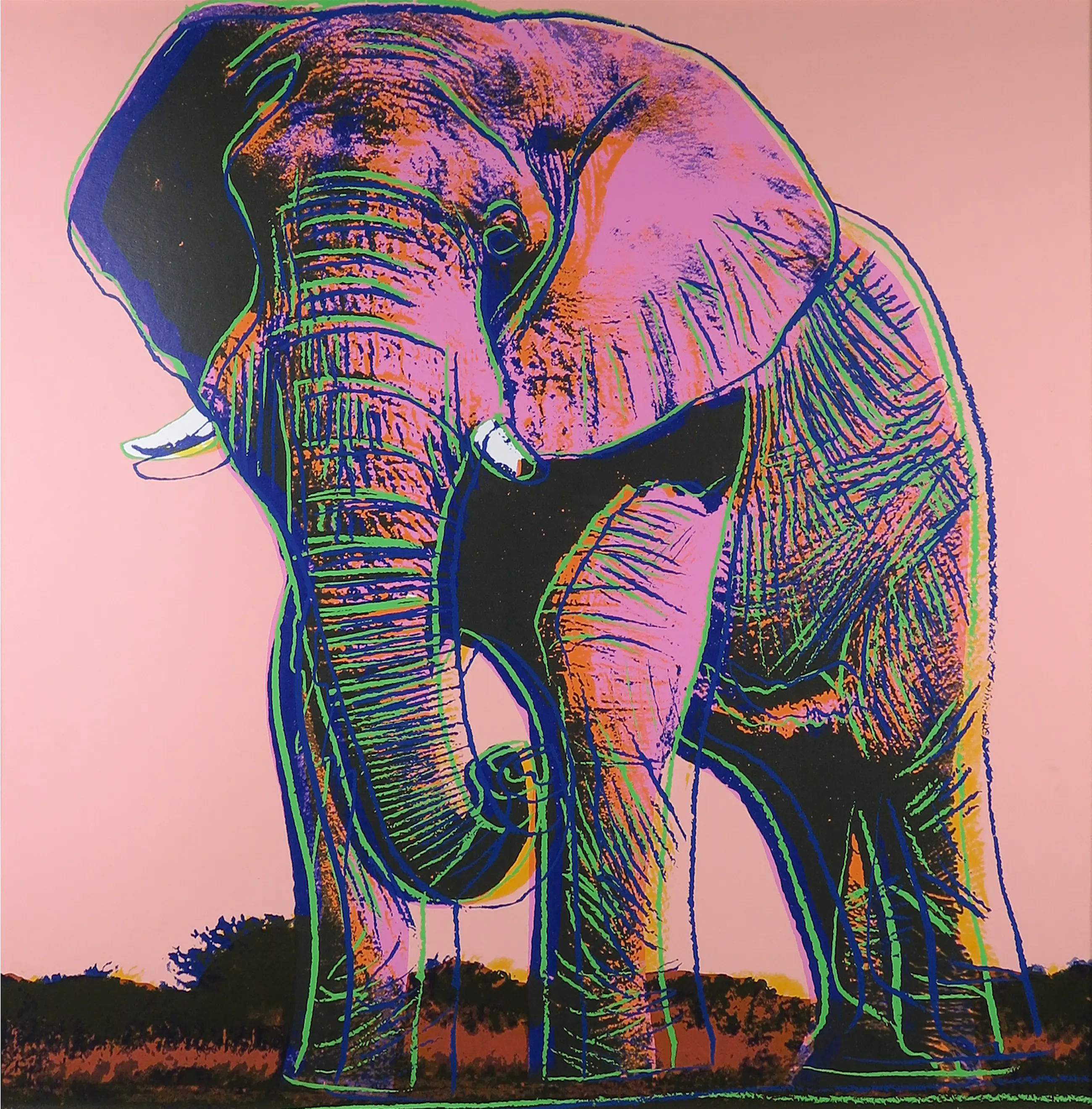 Zeefdruk getiteld African Elephant uit de Endangered Species door Andy Warhol.