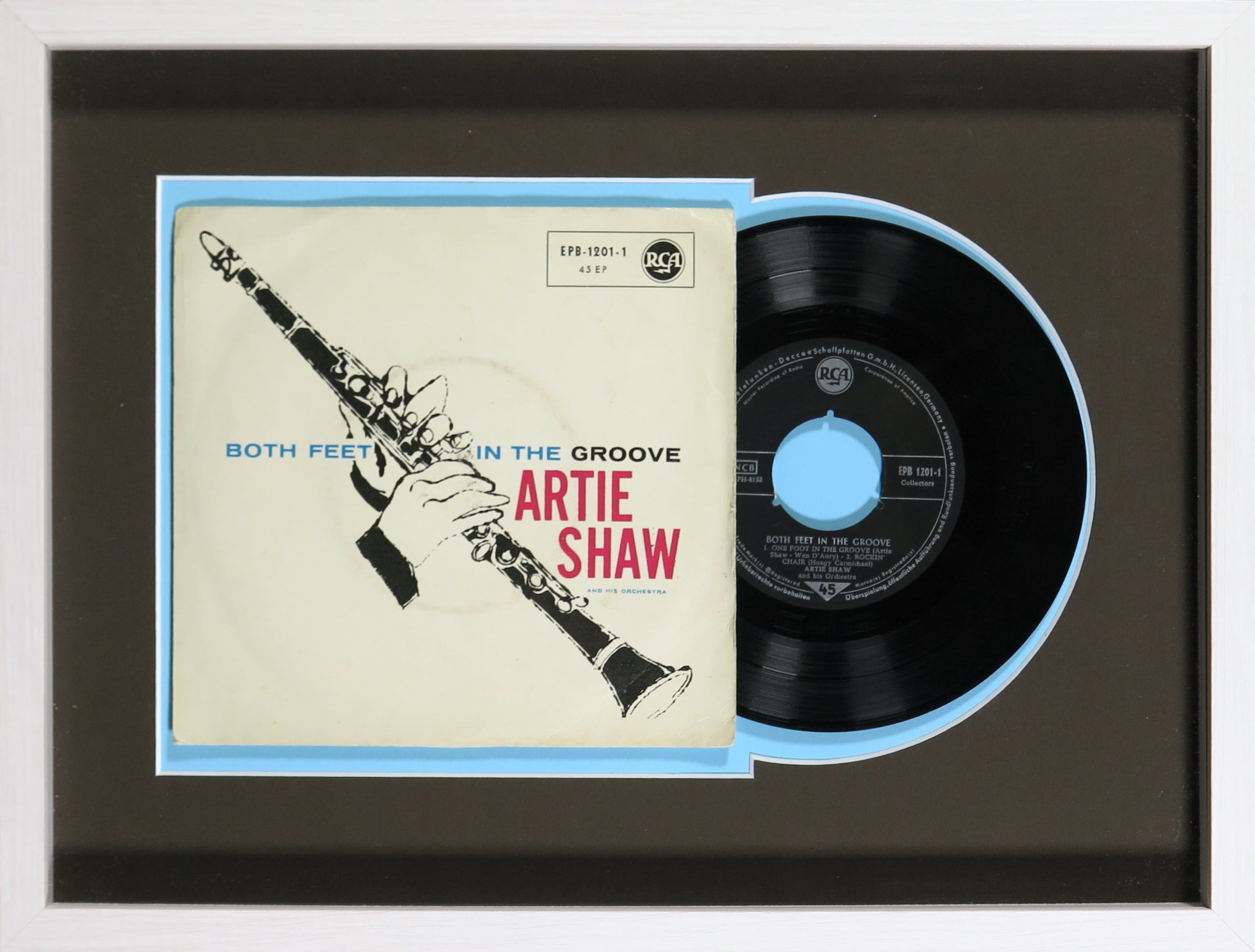 Originele 1956 7 inch vinyl, van Both feet in the groove van Artie Shaw and his Orchestra. De hoes is ontworpen door Andy Warhol.