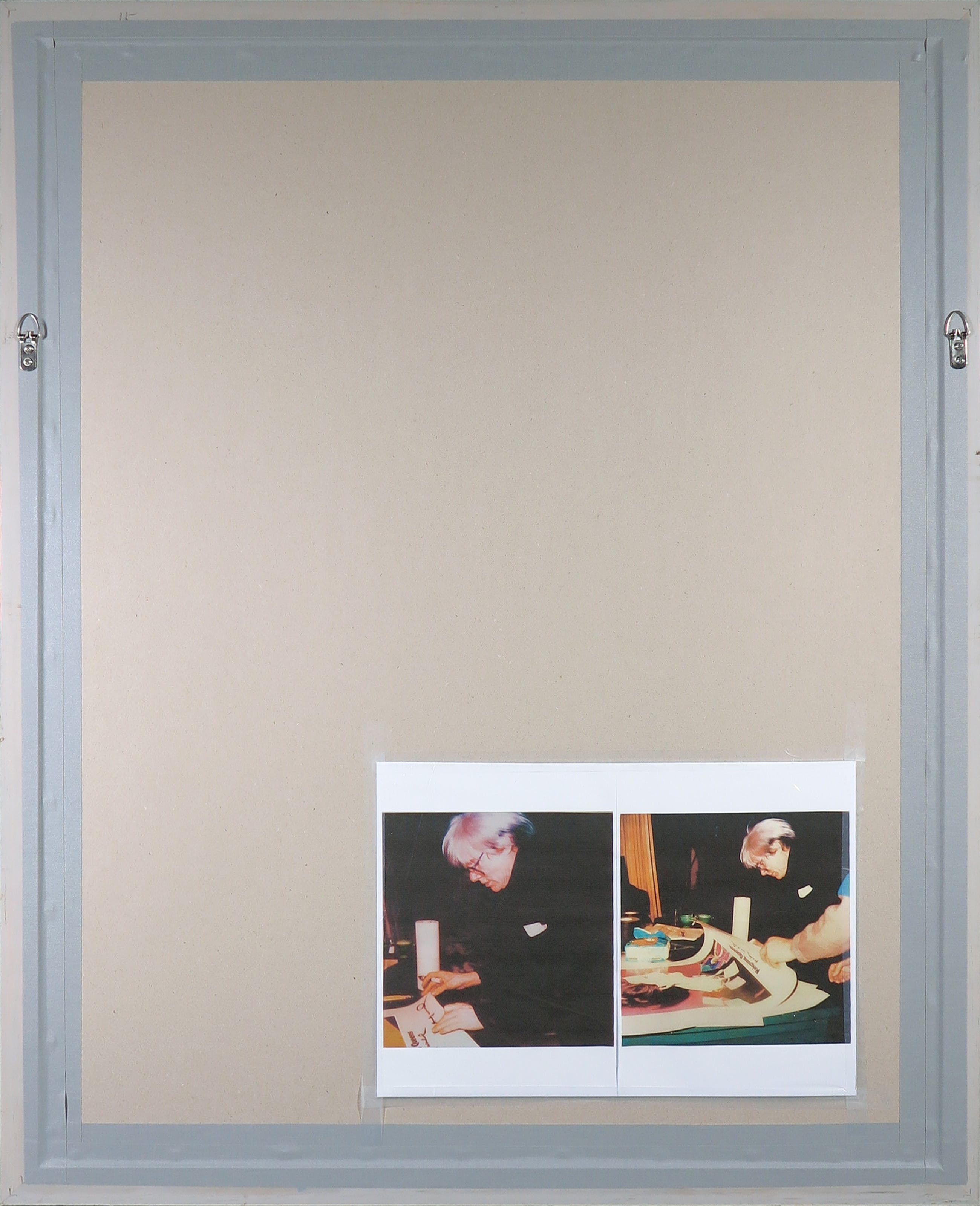 | Paar imperfecties c.q. lichte plekjes/vlekjes, met name in de bovenste hoeken, op de witte rand en het grijze kader (niet het passe-partout). | |