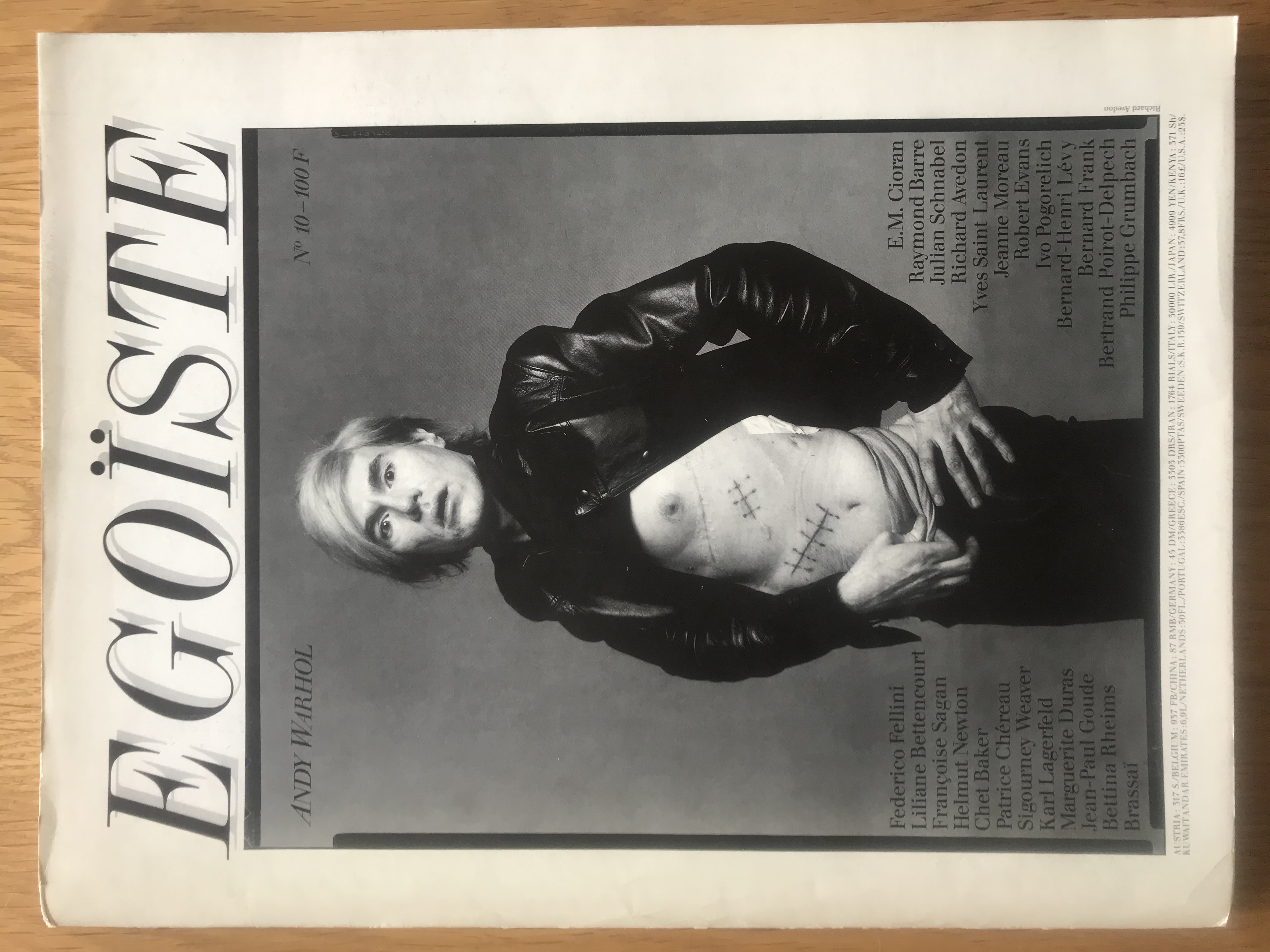 - EGOISTE - "Un égoiste, c' est quelq'un qui ne pense pas à moi" - Uitgever: 'Les éditions Cassini' - Mooie foto's van Warhol en anderen. - 155pp. - 40 x 30 cm - 1987 - Frans. - Andy Warhol: Transcript Of David Bailey's ATV Documentary - Uitgegeven door Givaudon Import Disques - 70pp. - 37 x 29 cm - 1972 - Engels. - INTERIEUR Magazine : February 1989 - 130pp. - 37 x 28 cm - Engels. - ARTSTUDIO nr 8- Special Andy Warhol - 1988 - 150pp. - 27 x 21 cm - Frans. - GRATUIT/DEJA VU 1987 nr 10 - 12pp. - 42 x 29 cm - Frans