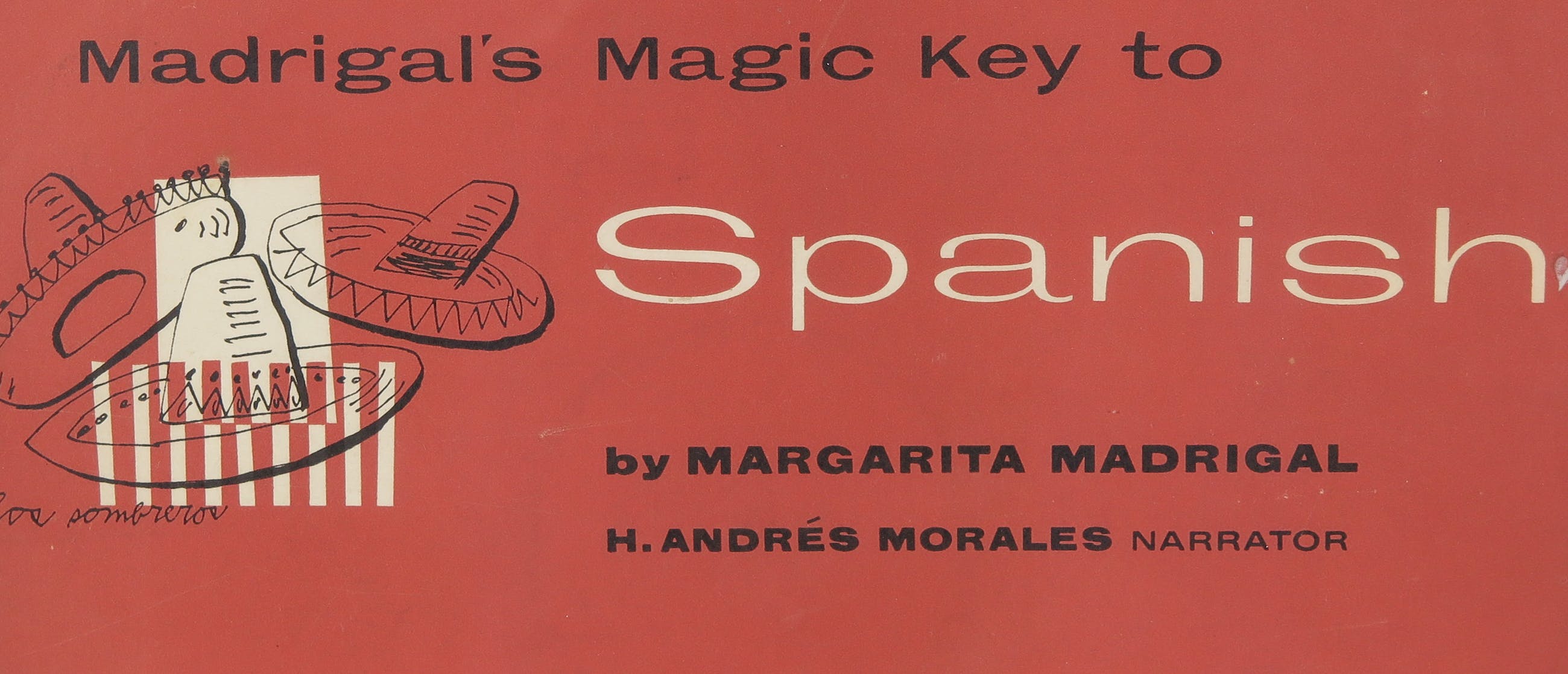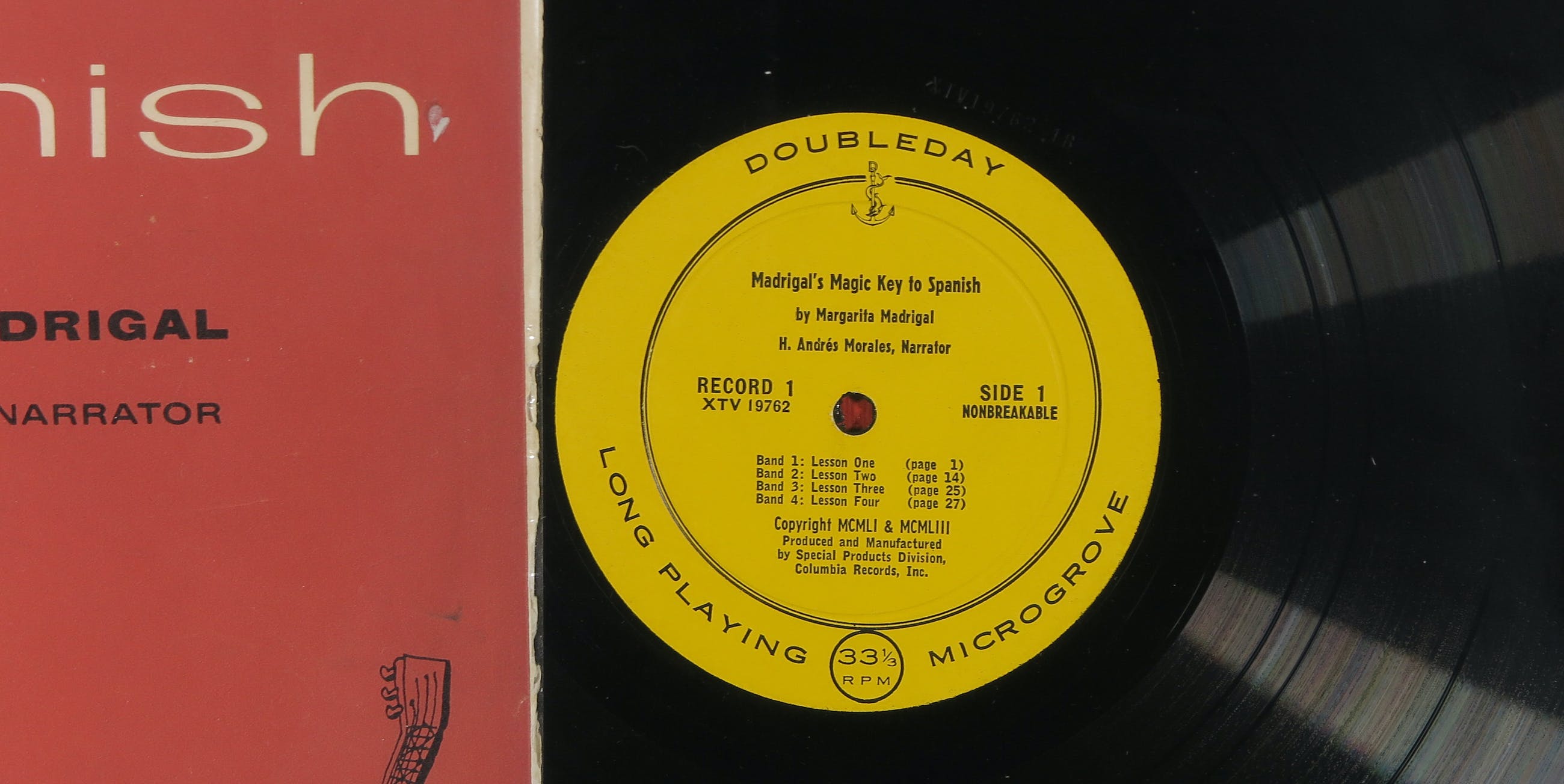 Originele 1953 U.S. MONO LP. 9 lessen om Spaans te leren spreken. De hoes, de voor- en achterzijde, is ontworpen door een jonge Andy Warhol.
