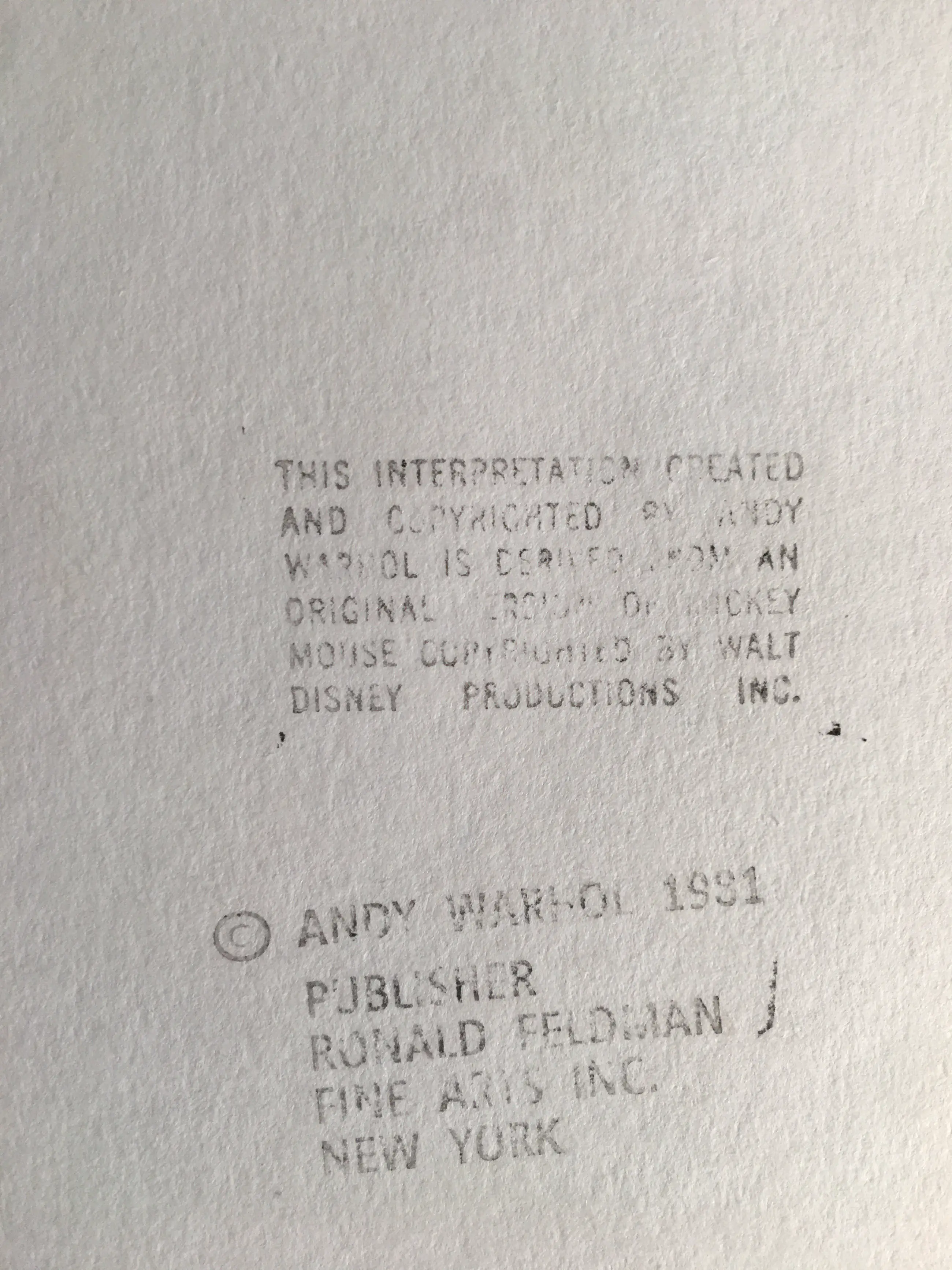 Verso ook een stempel aangaande de copyright op 'Mickey Mouse'.