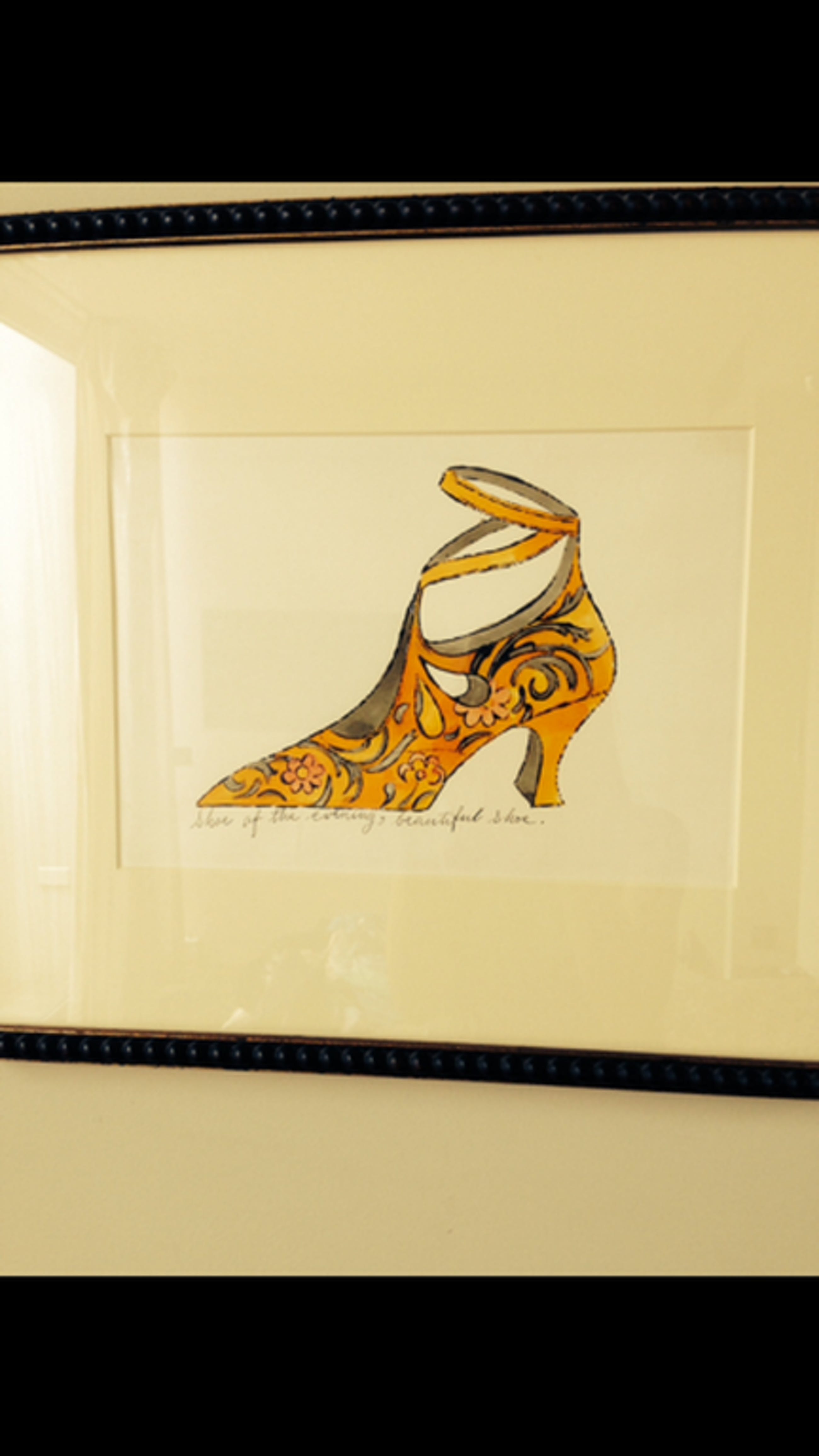 Andy Warhol ( 1928-1987). Untitled from À la recherche du shoe perdu, c. 1955. One from a portfolio of eighteen offset lithographs with synthetic ink additions, composition: TK; sheet: 9 3/4 × 13 11/16″ (24.7 × 34.8 cm).
