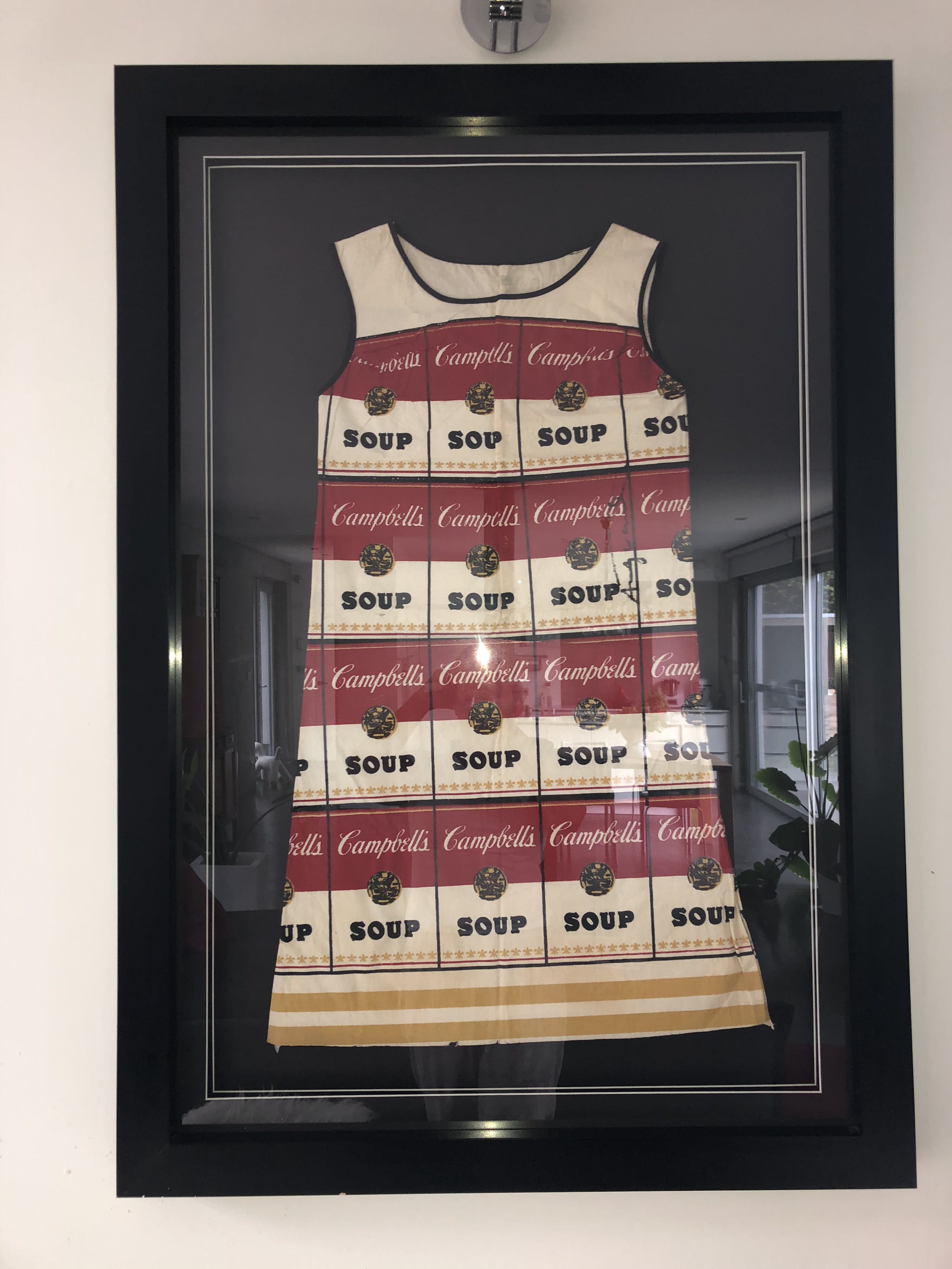 Warhol’s classic red, black and white soup can design was printed repeatedly upon the Campbell Souper Dress, creating an eye catching fashion statement. The dress was supposed to be disposed of after the first wear. As such, the number of dresses that survived remains unknown. The interest in these ephemeral pieces has increased in the last 50 years and examples can now be found in some of the world’s leading fine art collections, including the Metropolitan Museum in New York and exhibitions dedicated to the Pop Art movement.