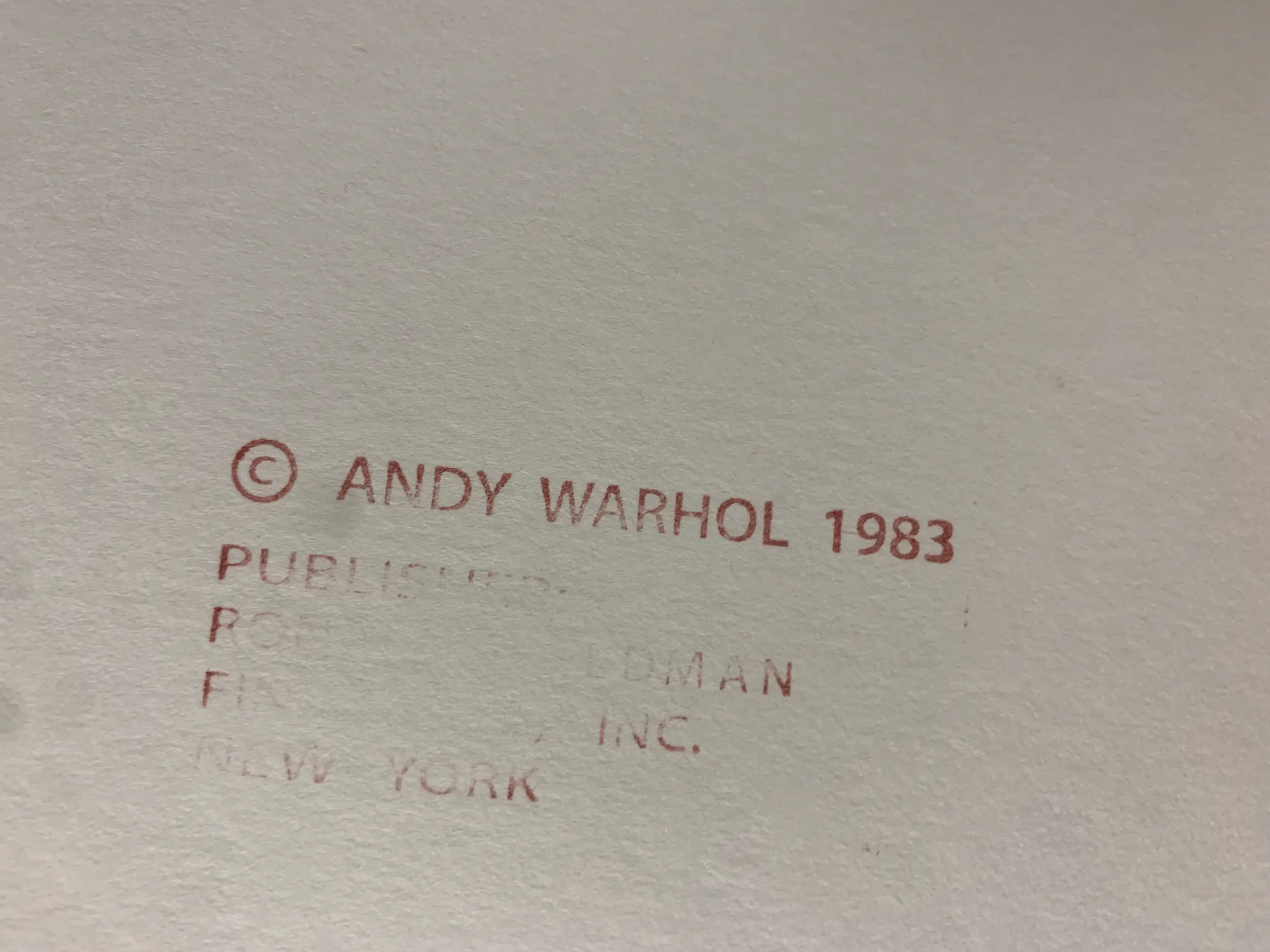 Het werk is niet gesigneerd of genummerd, maar is aan de achterzijde voorzien van copyright-stempels van Feldman en Warhol. Deze "printer proofs" waren een referentie voor de eigenlijke druk, en werden gebruikt voor exposities en ter promotie van de serie. Deze zeefdruk is uitgegeven bovenop de editie van 150 stuks. .