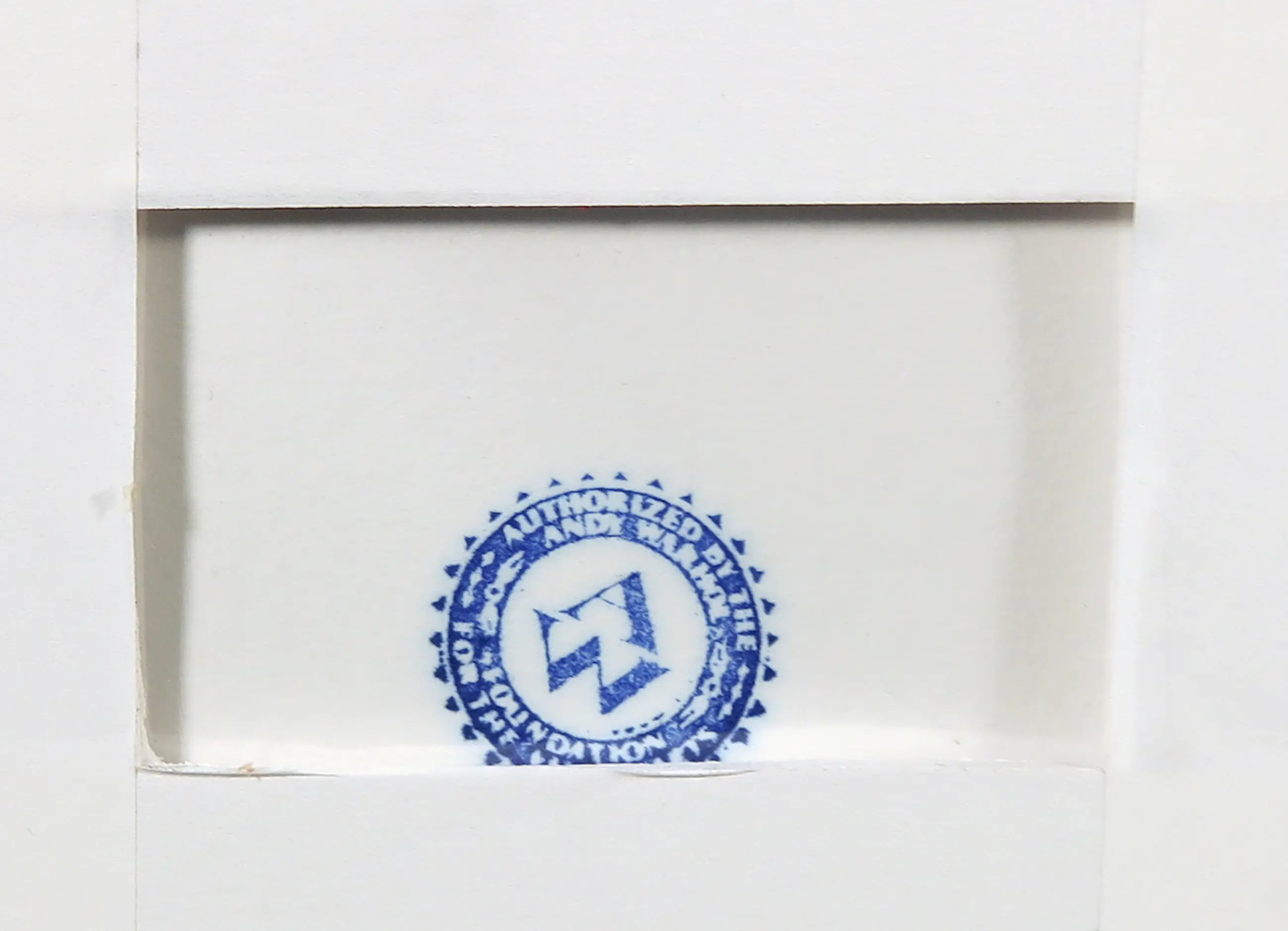 Oorspronkelijk uitgegeven in 1967 door Factory Editions, New York. Deze zeefdruk is na de dood van Warhol uitgegeven door de Andy Warhol Foundation for the Visual Arts. Voorzien van de stempel van de Foundation aan de achterzijde, zichtbaar middels een uitsparing in de achterplaat.