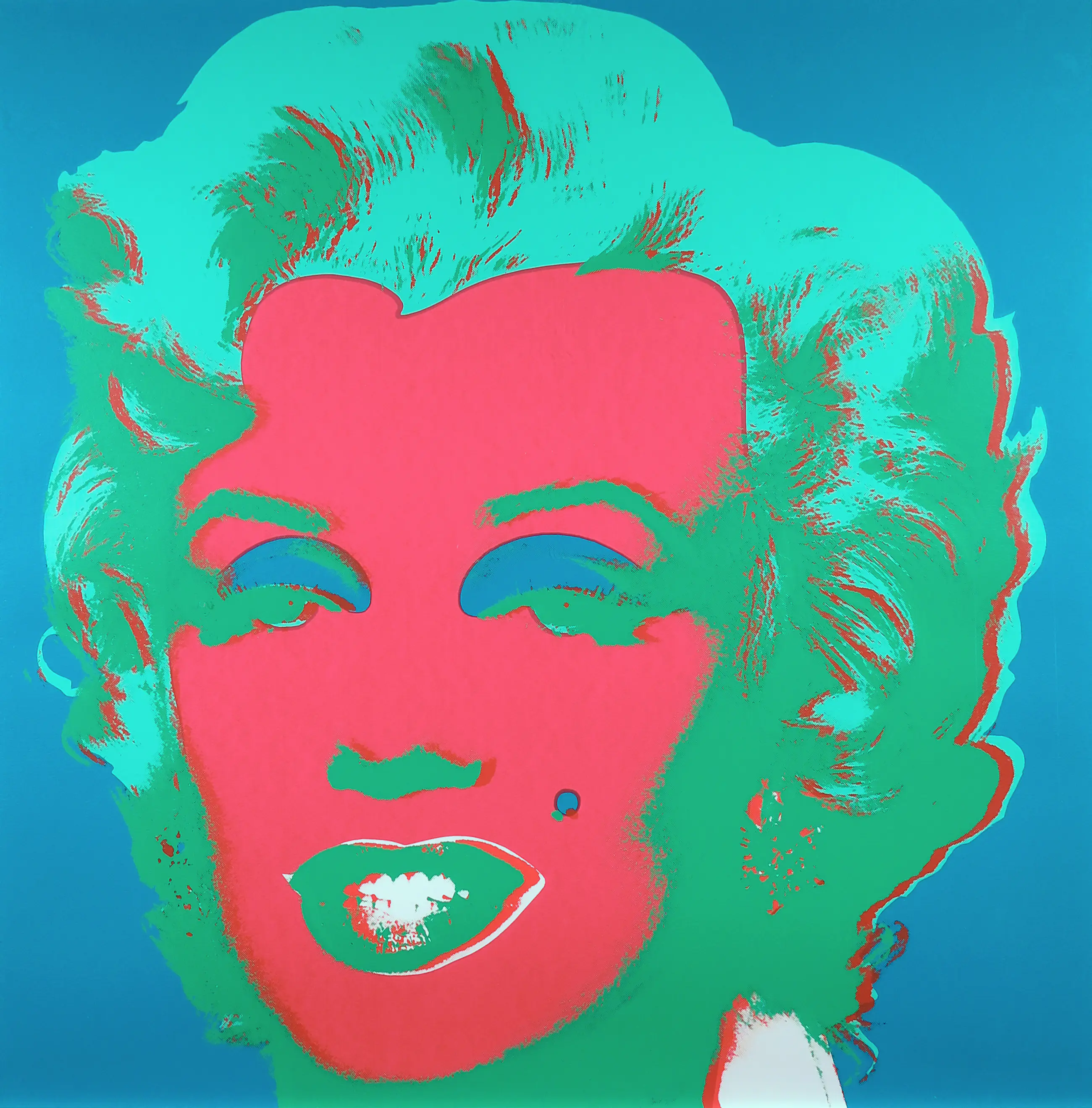 Iconische zeefdruk van Marilyn, naar een publiciteitsfoto voor de film Niagara uit 1953. De zeefdruk is gedeeltelijk voorzien van 'zilverdruk'.