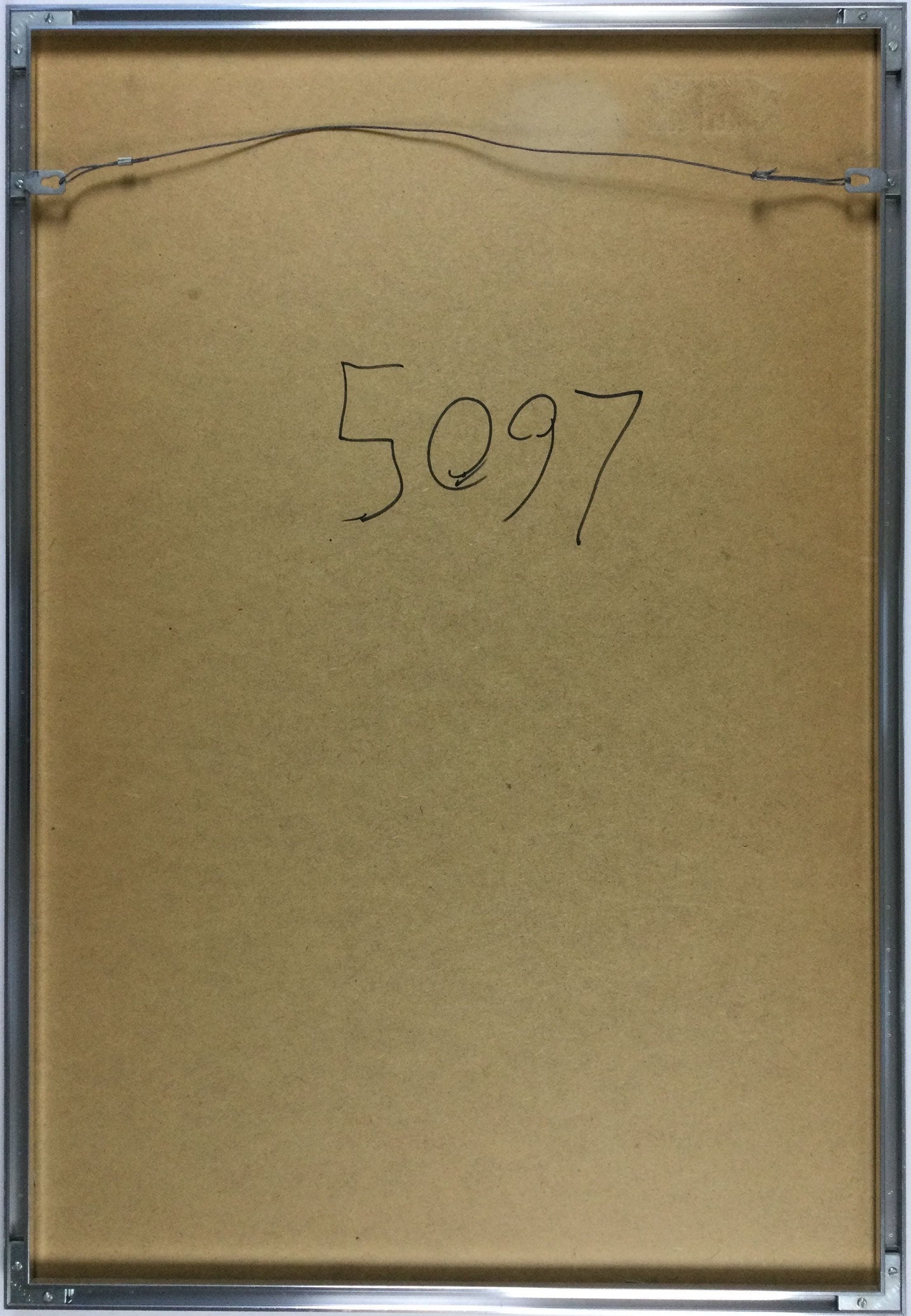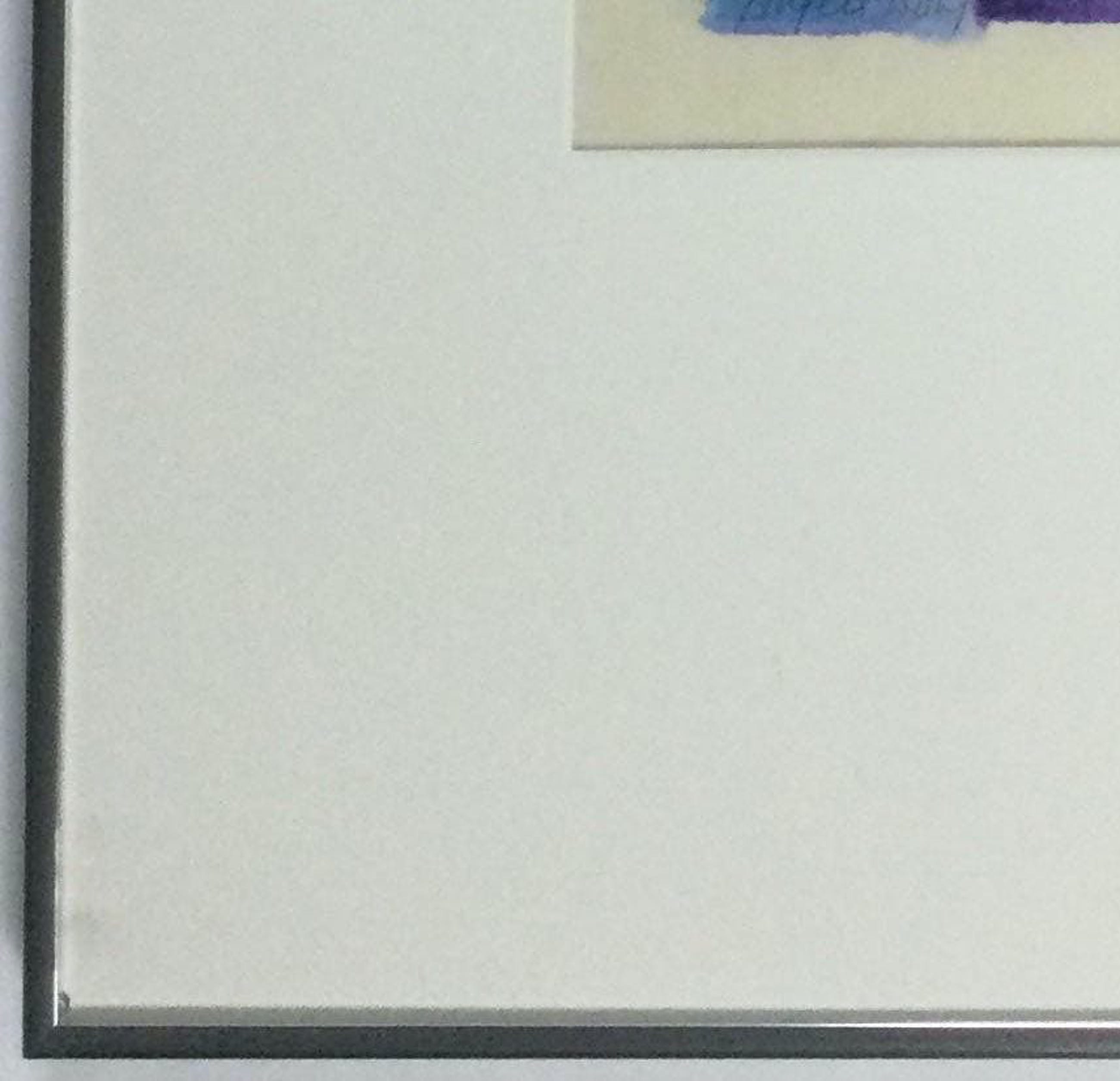 Zeer fraai ingelijst in degelijke chromen wissellijst met strak wit passe-partout.