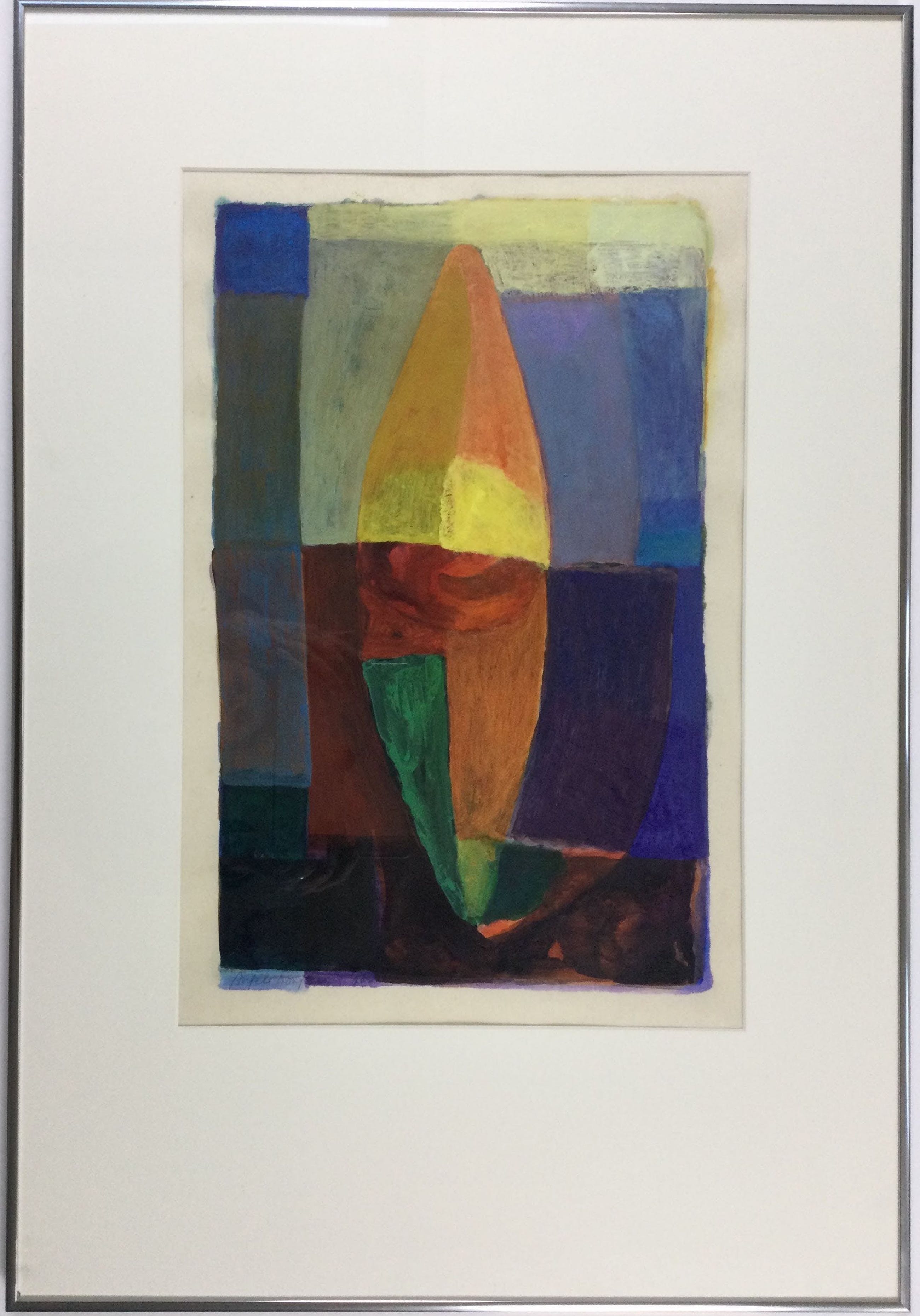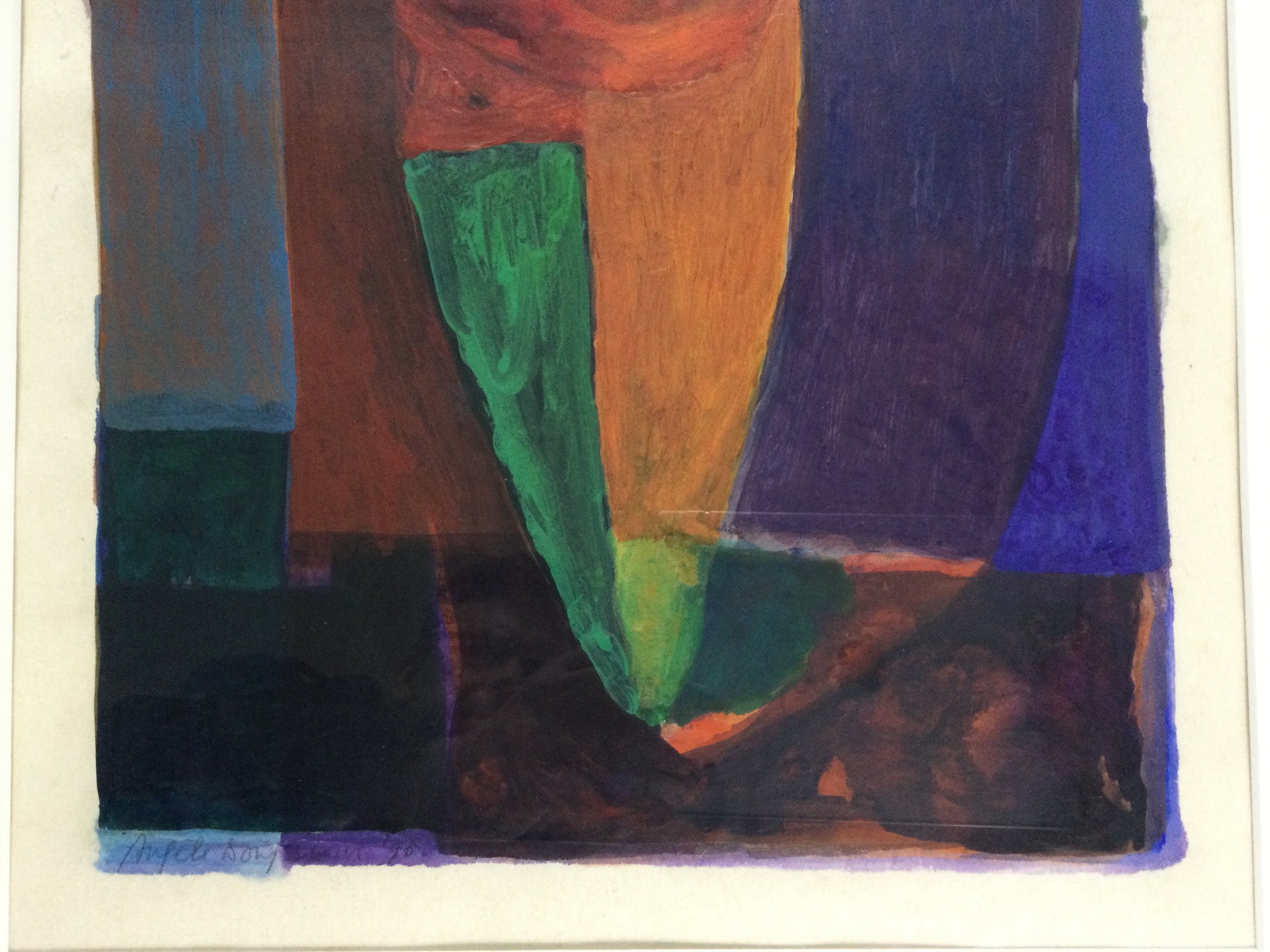 Zeer fraai abstract geometrisch schilderij van de in Zuid-Frankrijk woonachtige kunstenares Angèle Donjacour (Goes, 1954).