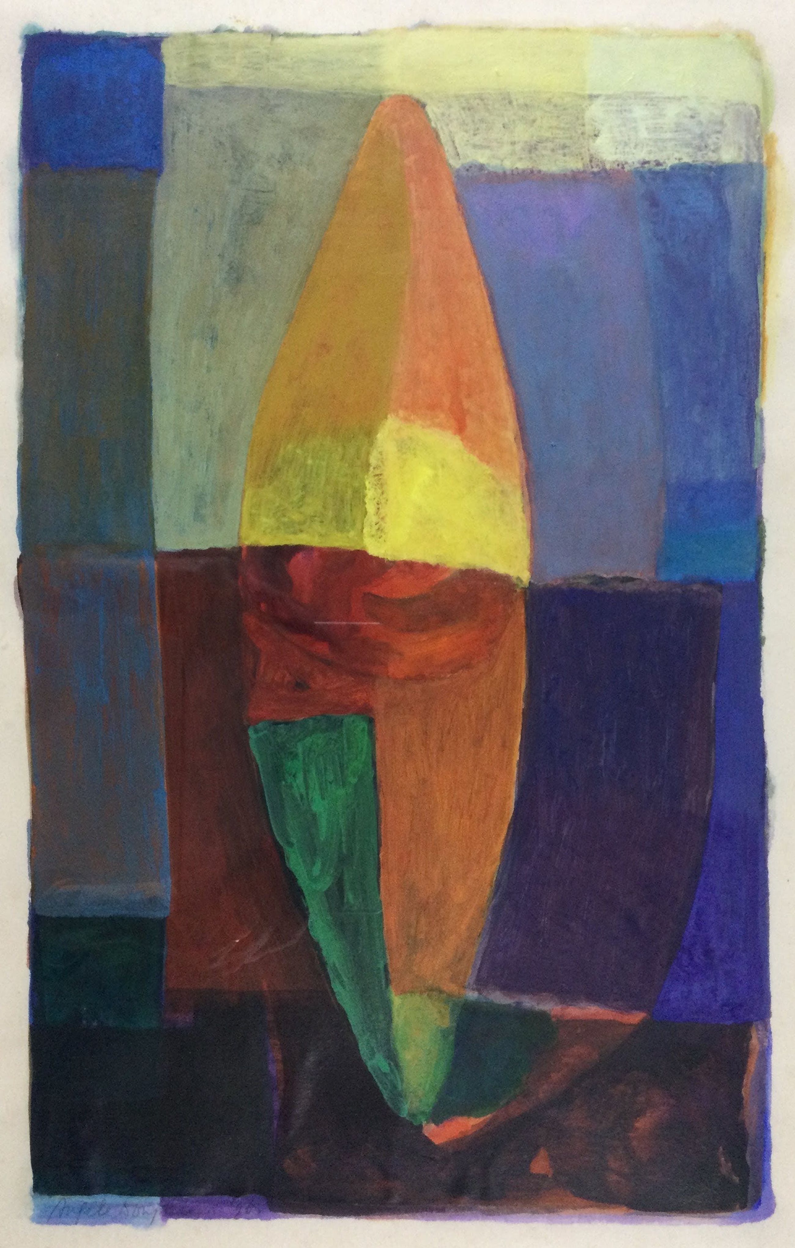 De vormen in haar denkbeeldige landschappen verschijnen in cirkels, spiralen en andere geometrische vormen. Een zeer persoonlijke, complexe en gevoelige abstractie.