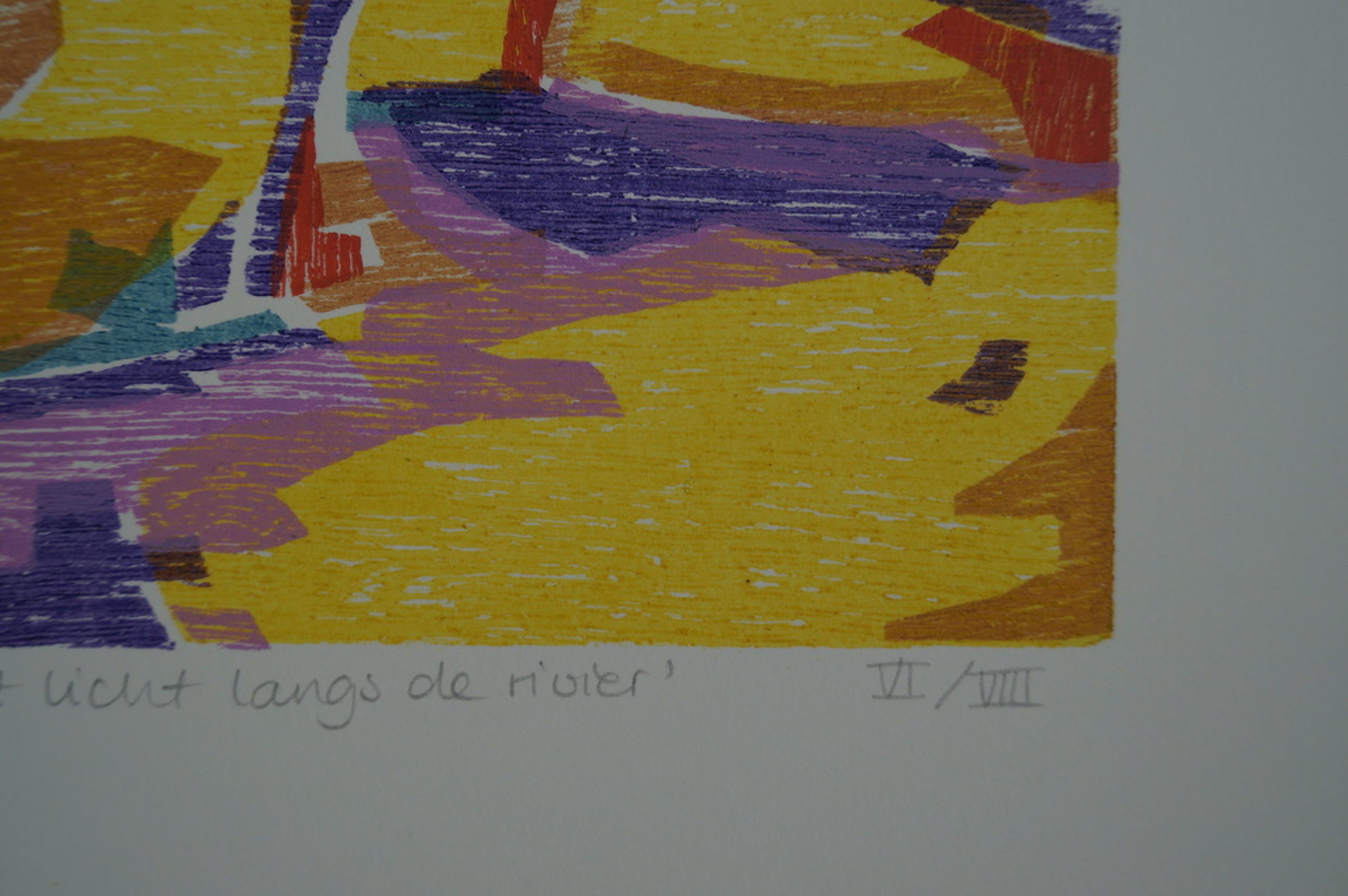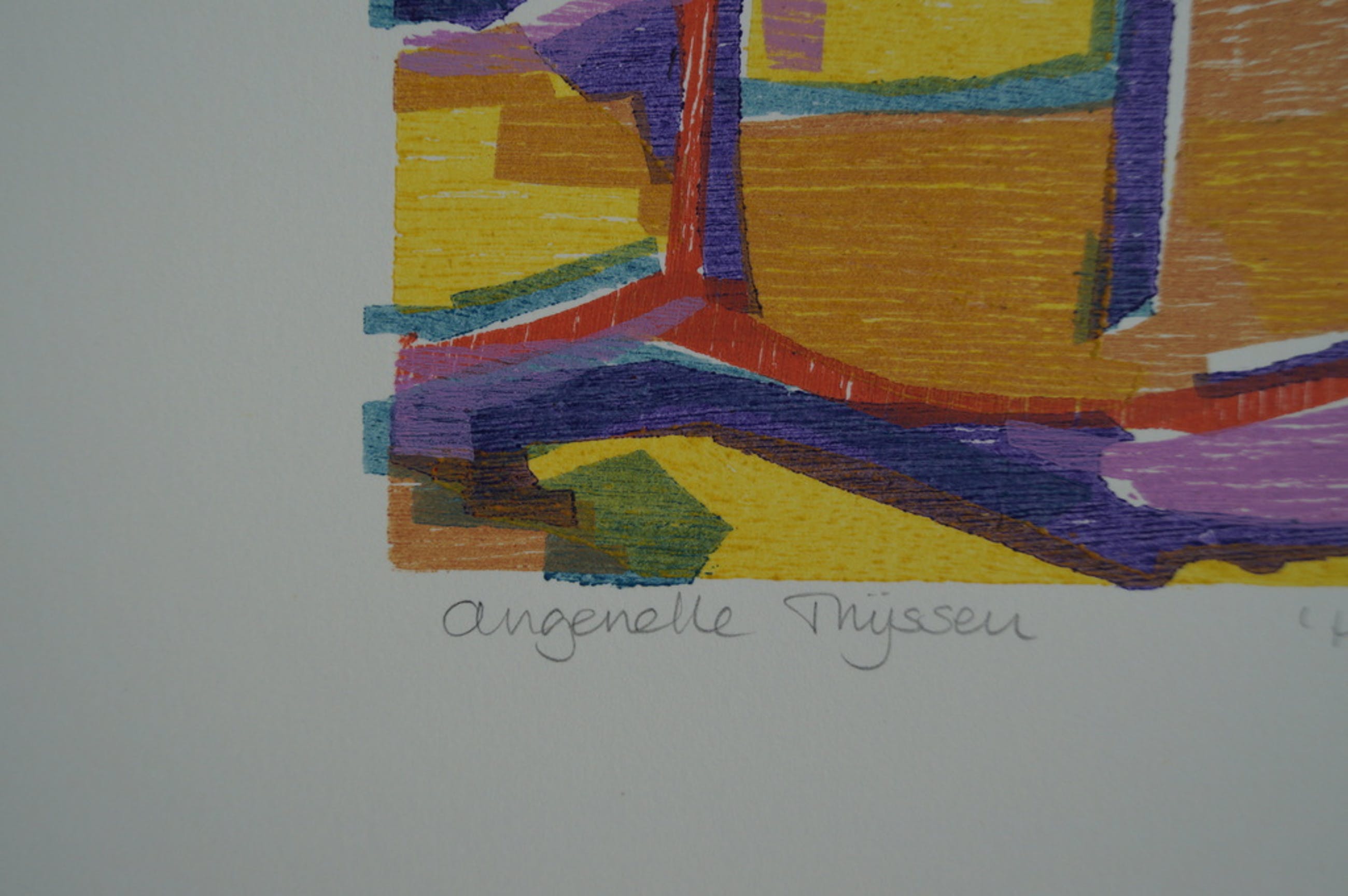 Mooie gesigneerde houtsnede van Angenelle Thijssen