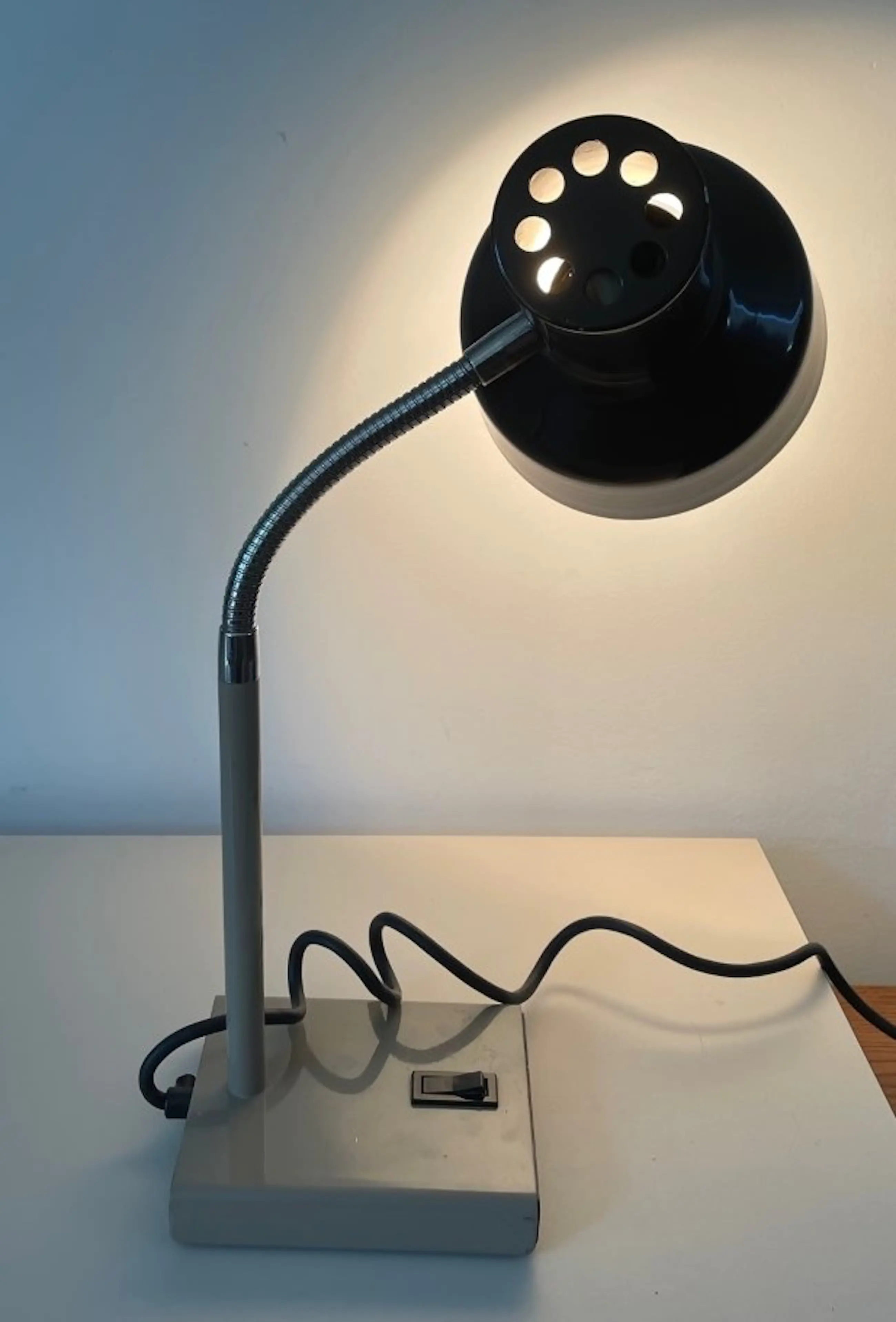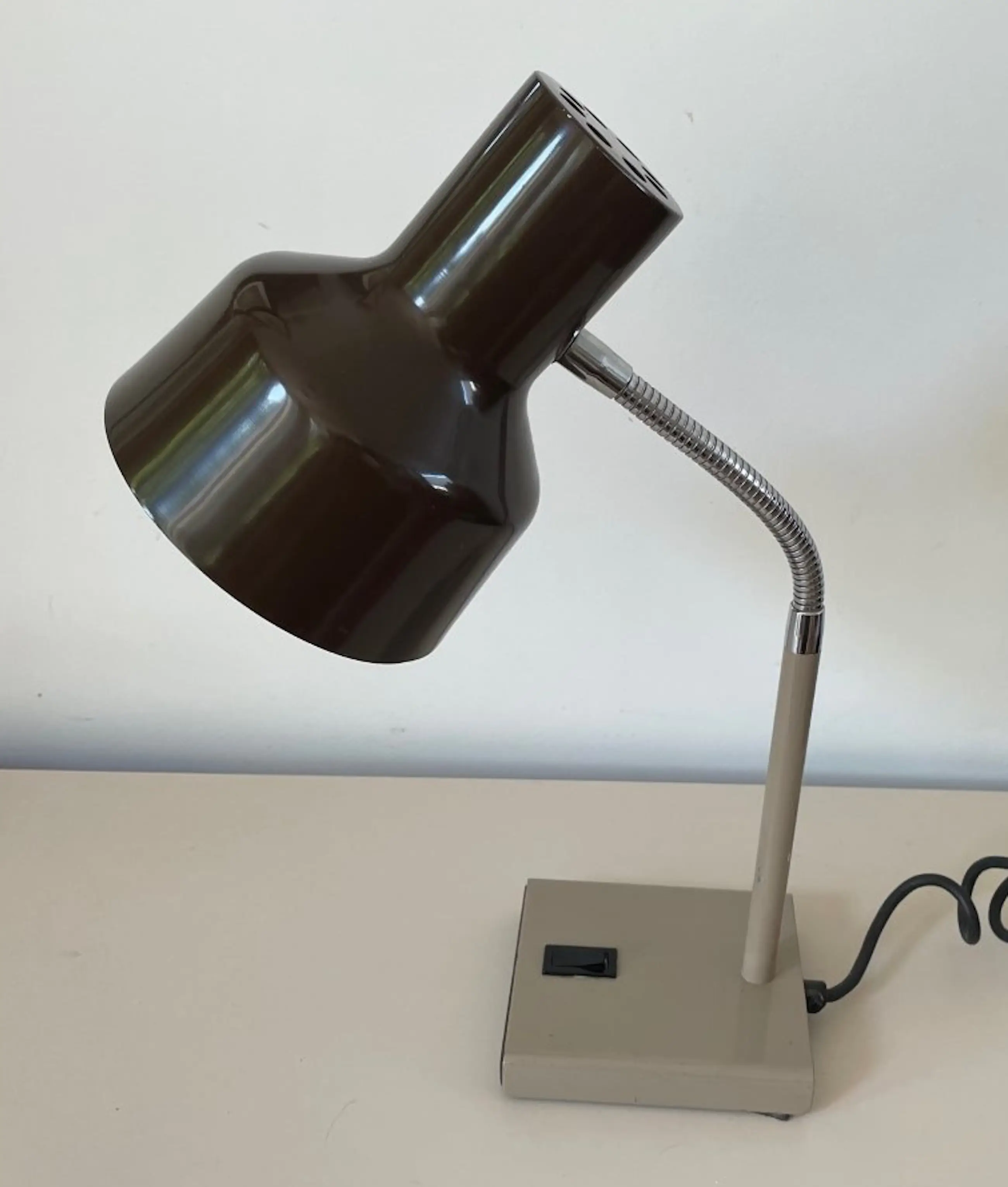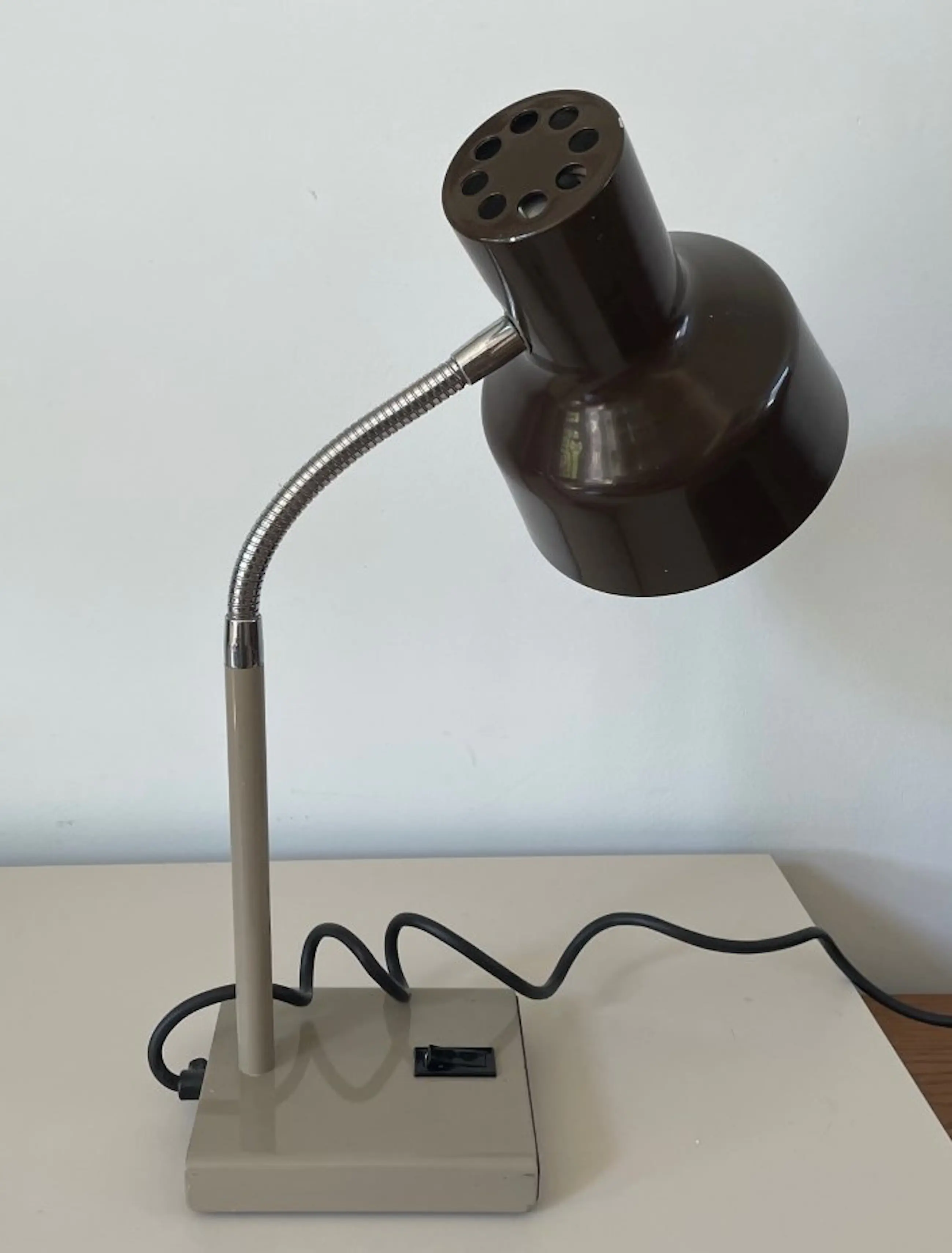 Anglepoise Lighting - Space Age bureaulamp model 99 - Bruin en beige gelakte uitvoering heeft wat krasjes op de lak maar verder in zeer goede en goed functionerende conditie. Ontwerp Herbert Terry.