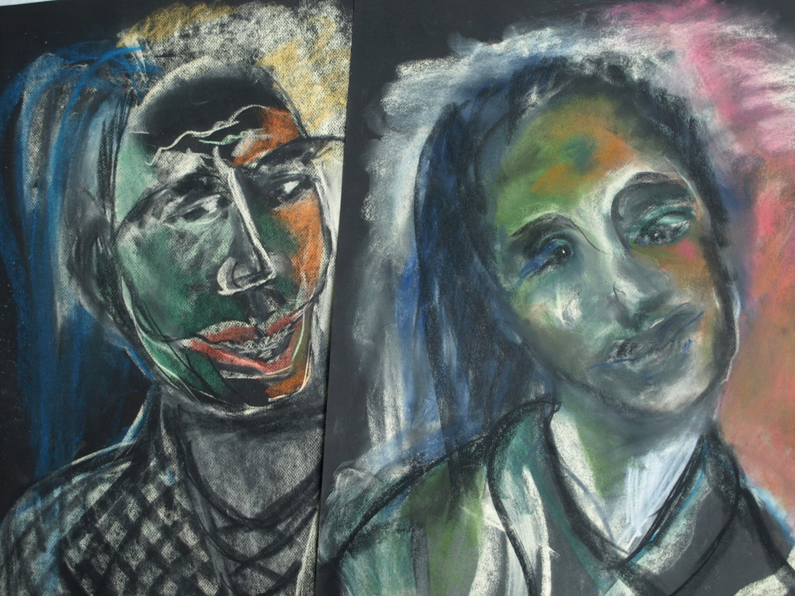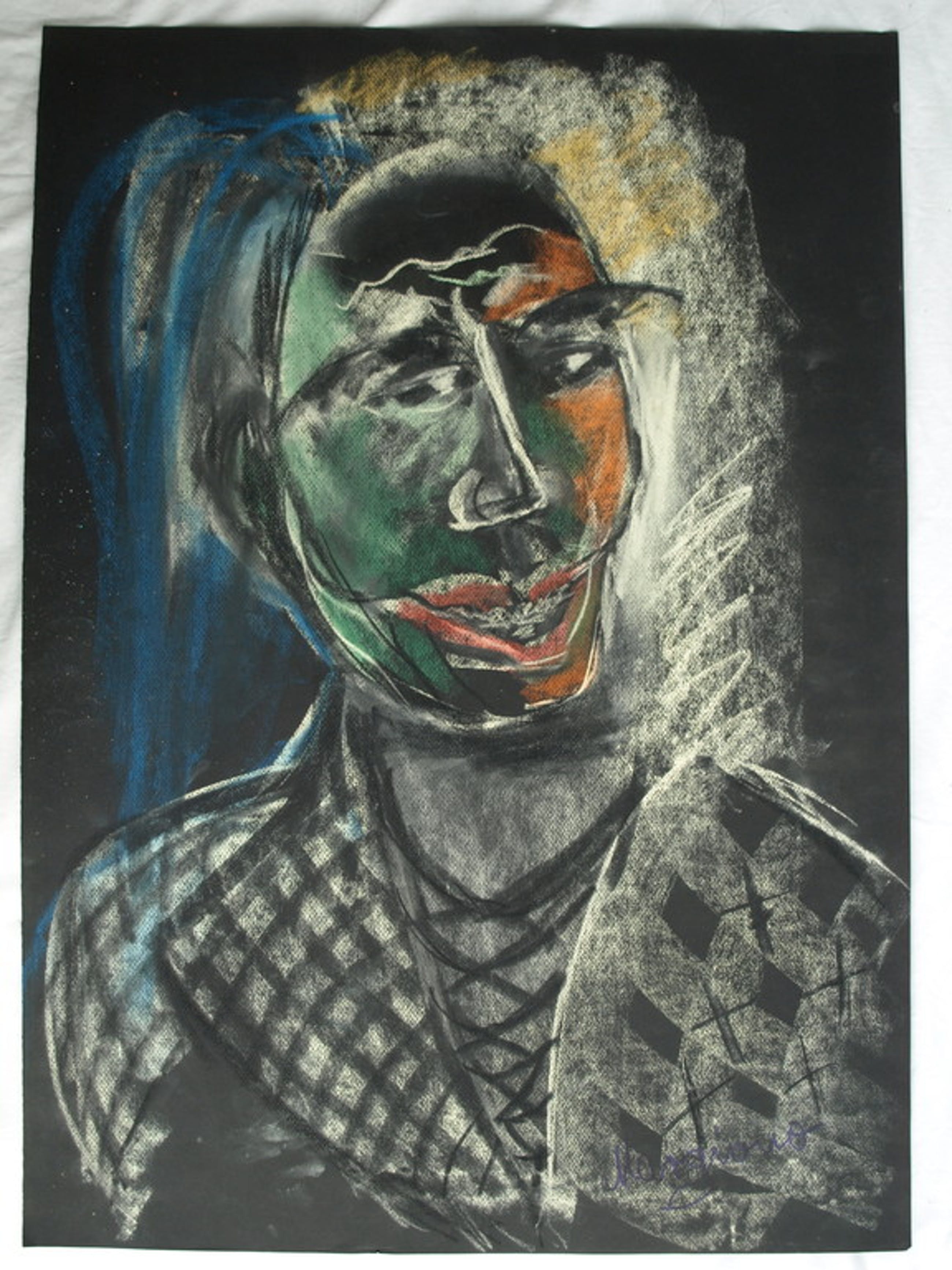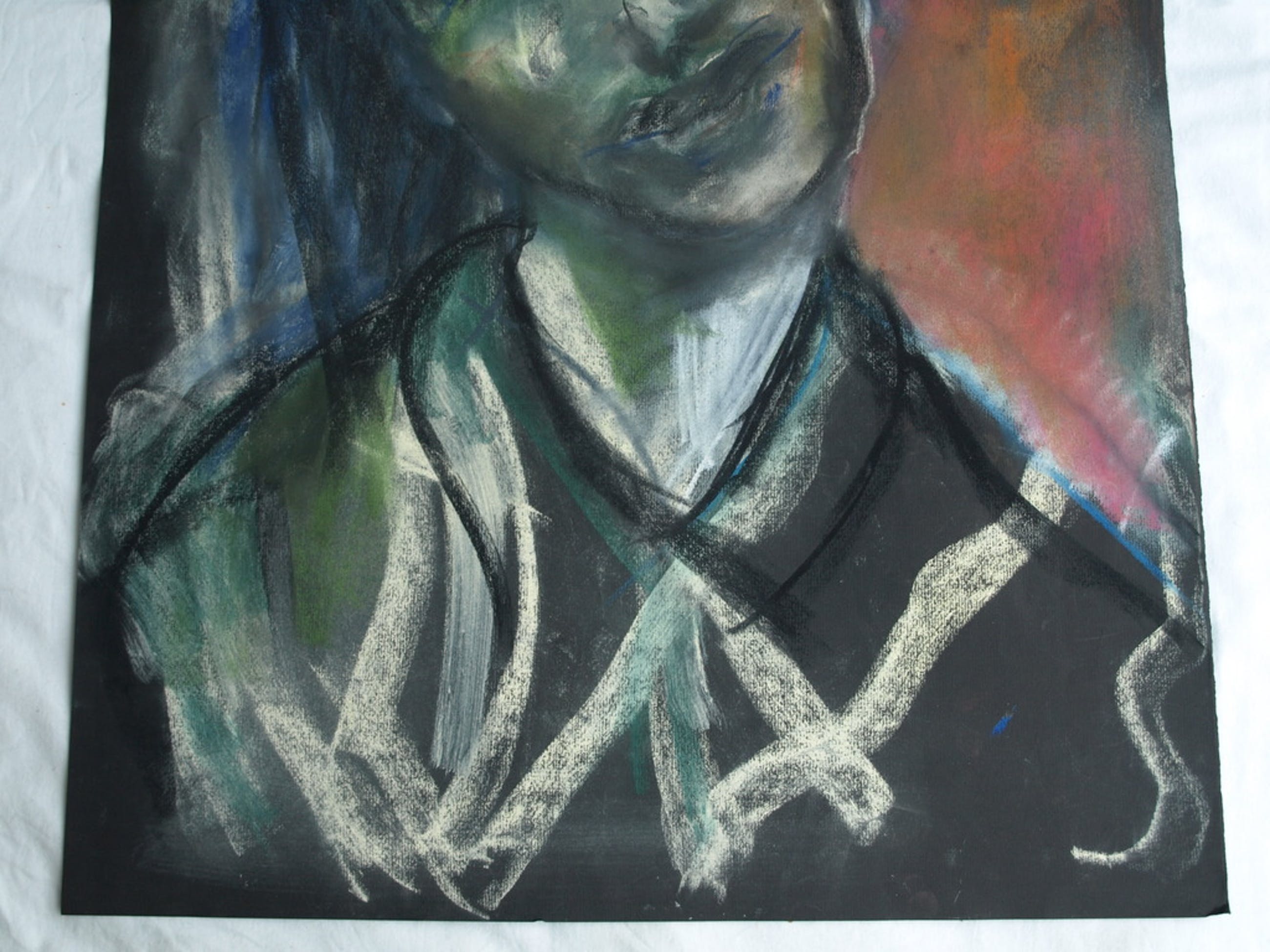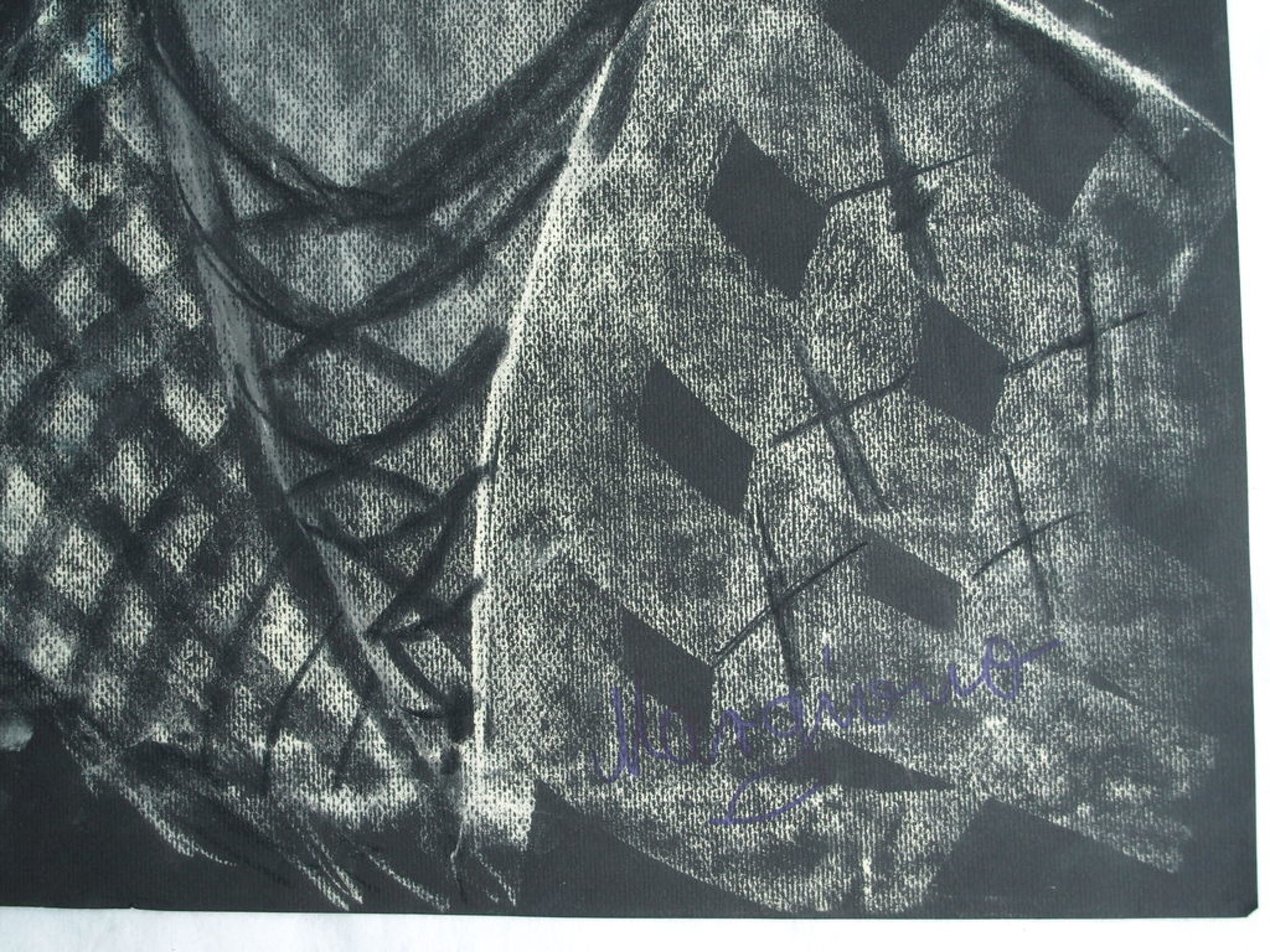 Techniek: Pastelkrijt op zwart papier.