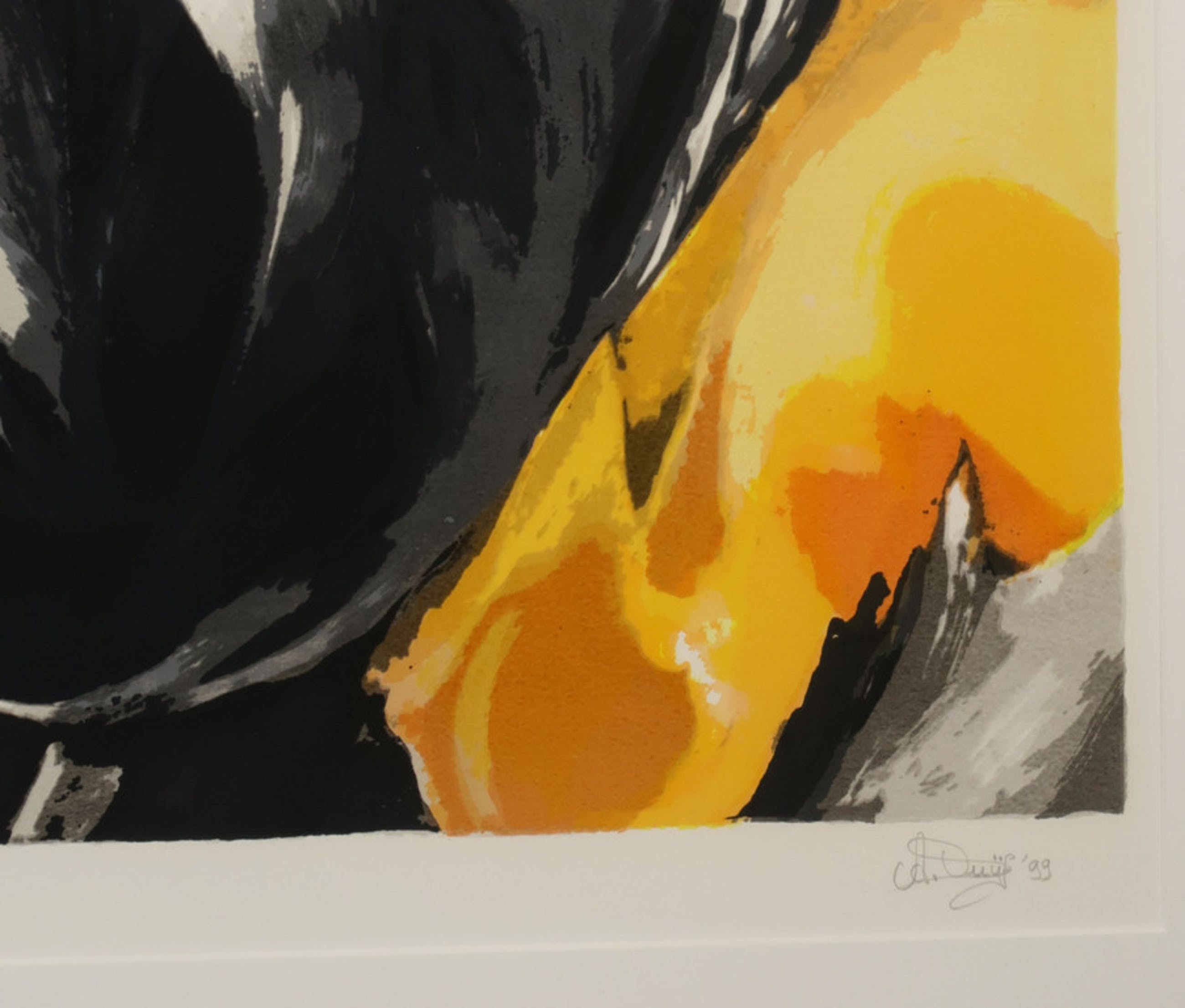Bij foto´s van ingelijste werken kan spiegeling zichtbaar zijn. Het oplagenummer op de foto(‘s) kan afwijken van het hierboven genoemde correcte oplagenummer.