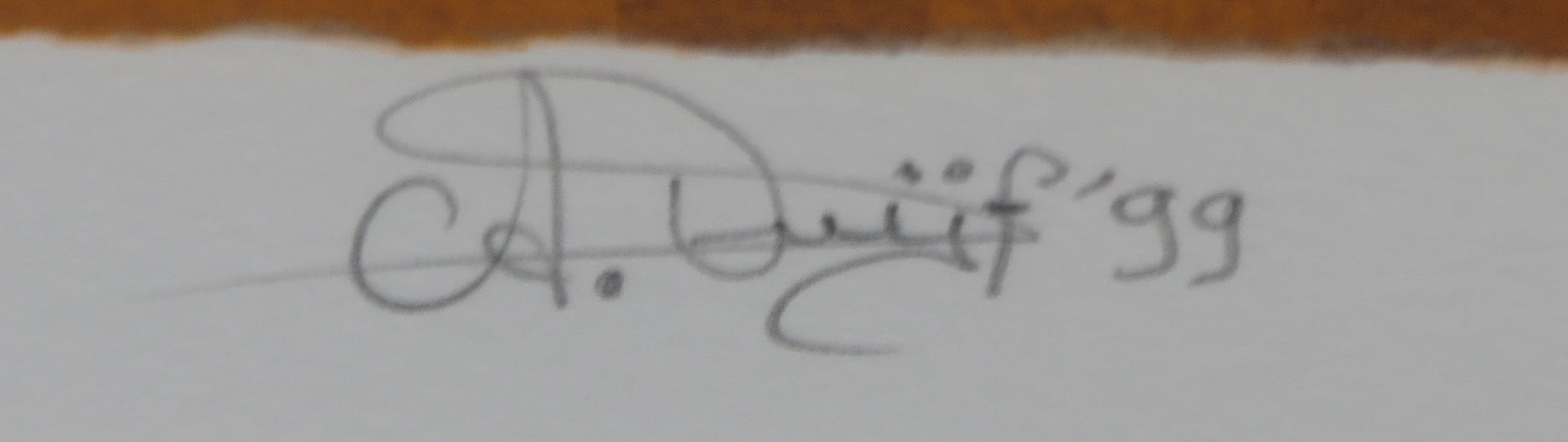Bezichtigen: Heeft u interesse in het werk? Het is ook mogelijk om dit werk vooraf te bezichtigen. Ondanks de aankoopgarantie van Kunstveiling waar uw werk onder valt, kunt u het werk bekijken voordat u een bod uitbrengt. Bezichtigen kan op afspraak op de vestiging van Kunstveiling in Amstelveen op dinsdag t/m vrijdag tussen 11.00 - 17.15 uur. Neemt u hiervoor contact met ons op.