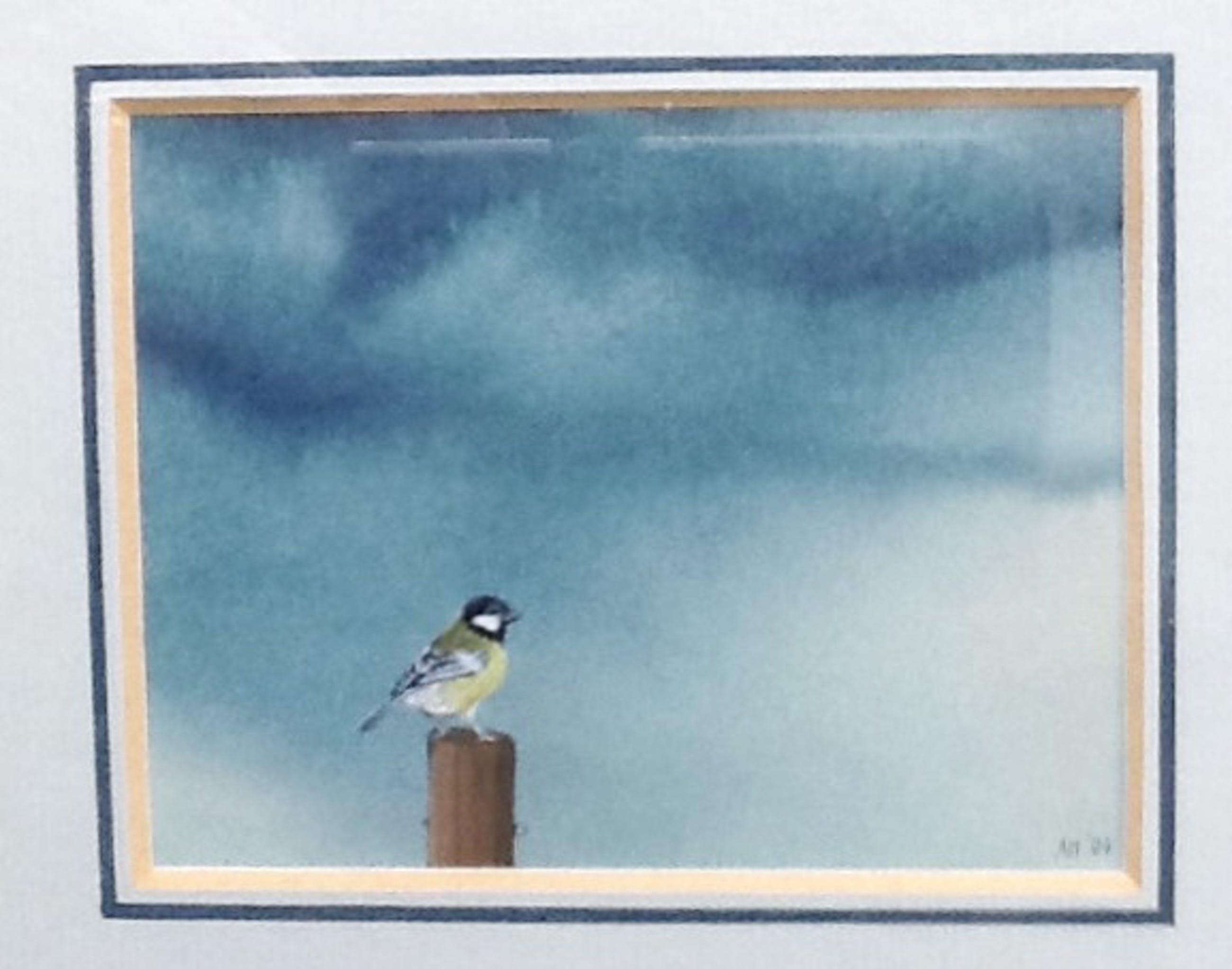 Mooi subtiel schilderwerken van Anja MiddelkoopTitel KoolmeesVerf op papierProfessioneel gelijst met passe-partoutConditie uitstekendOphang gereedWordt aangetekend verzonden