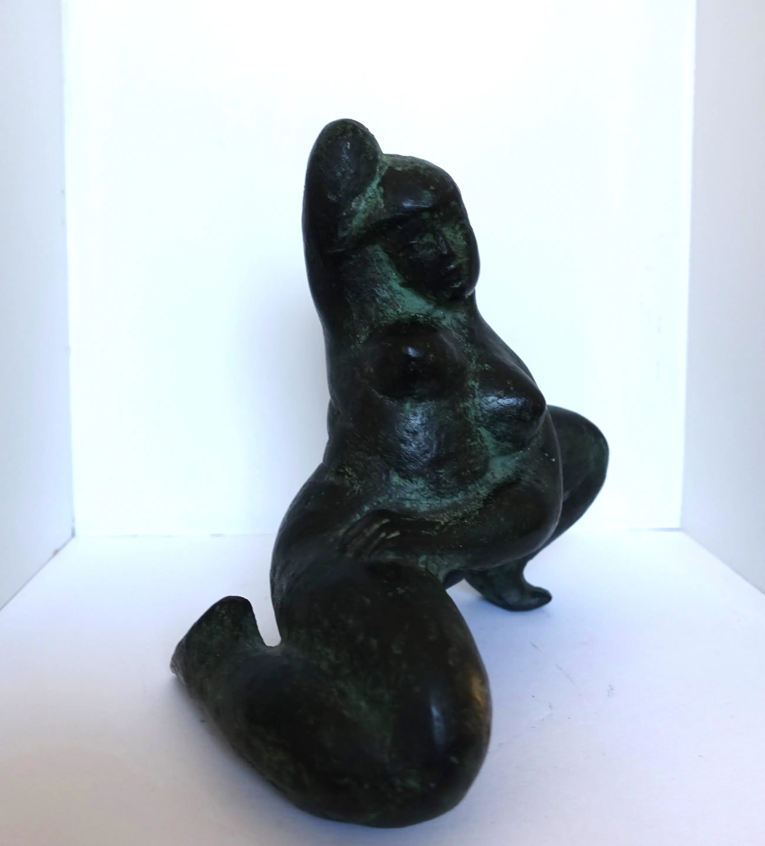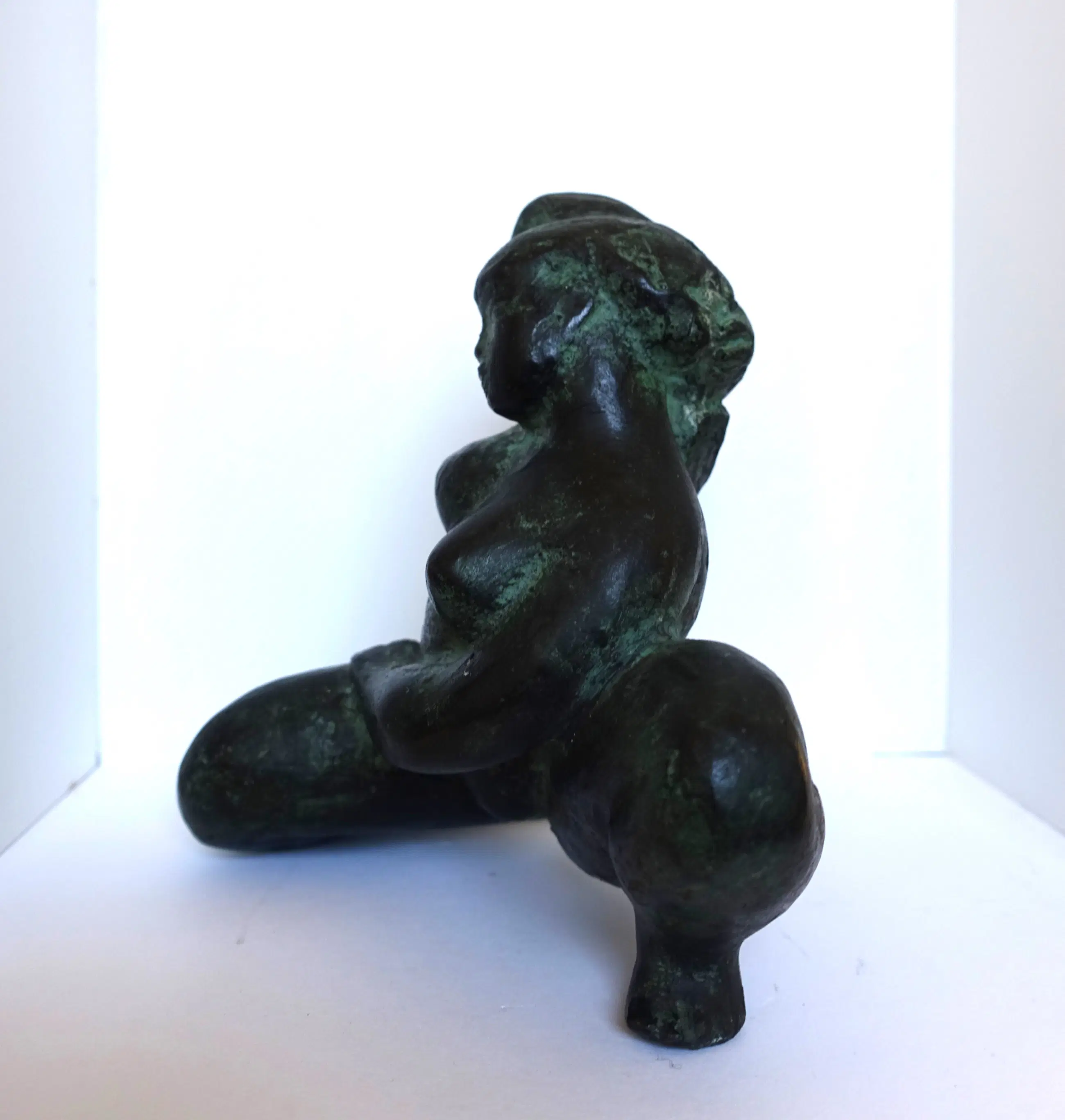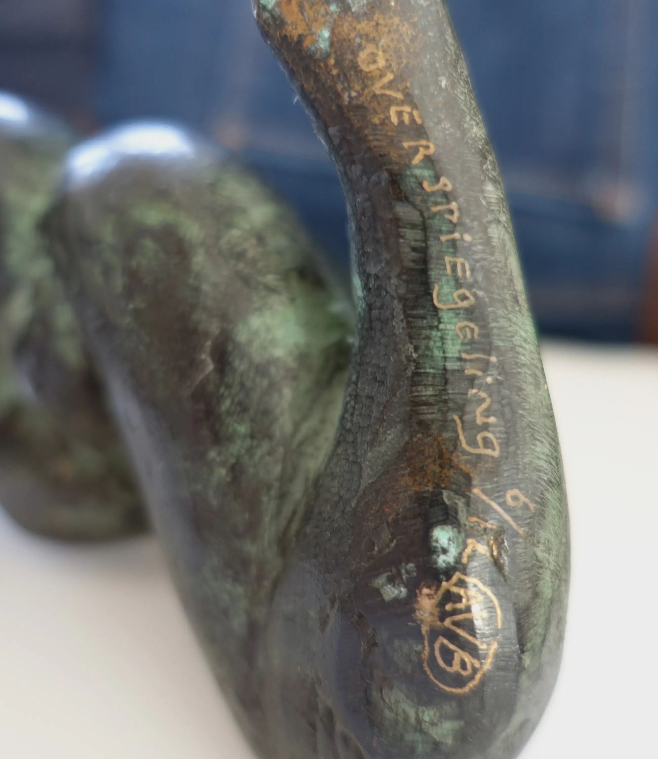 Anja Vosdingh-Bessem overleed helaas te vroeg al in 2021. Ze maakte voornamelijk voluptueuze vrouwen. Dit werk genaamd "overspiegeling" zou ik toch wel haar opus magnum willen noemen. Mooie rake pose, topbeeldje!