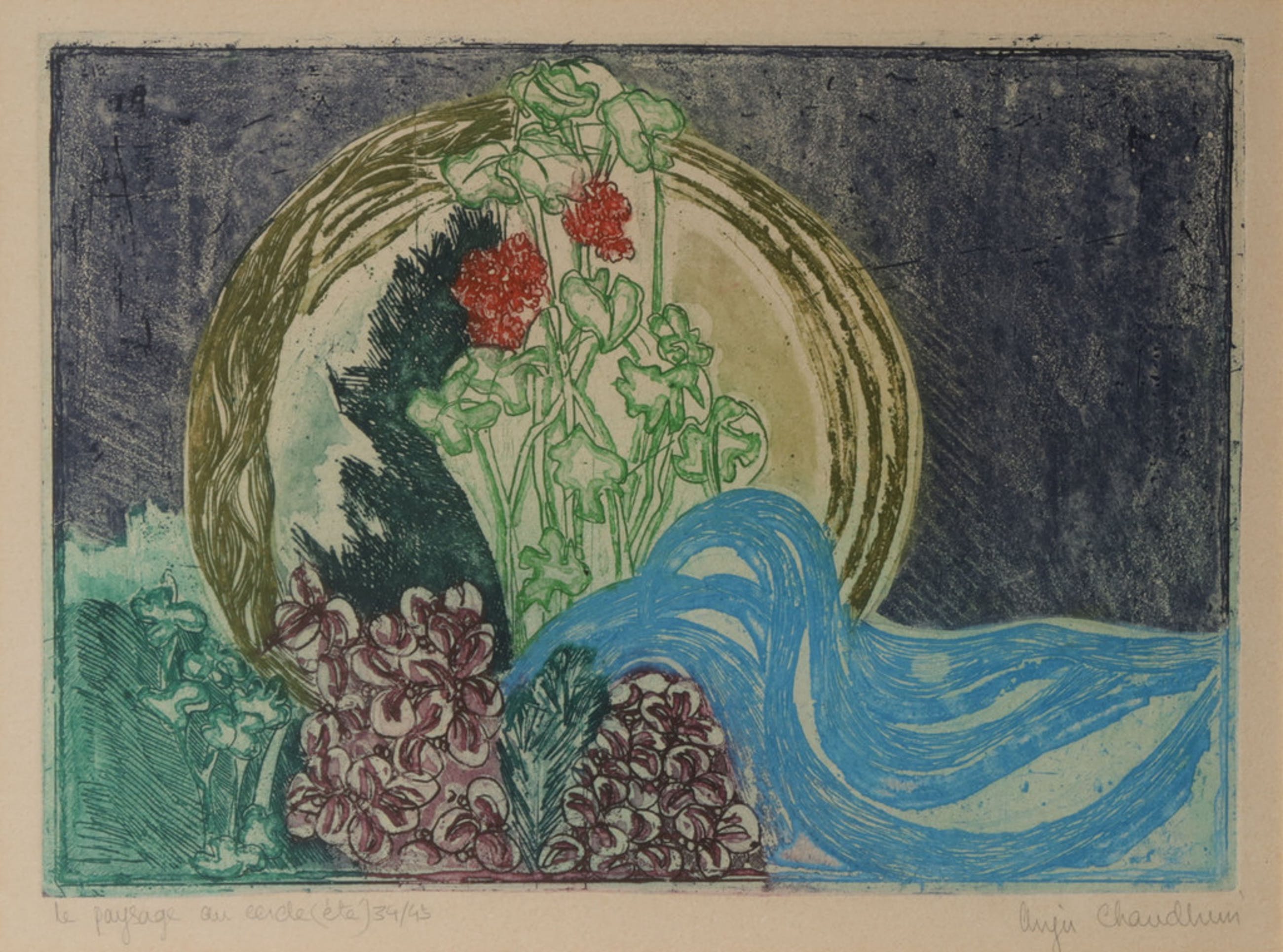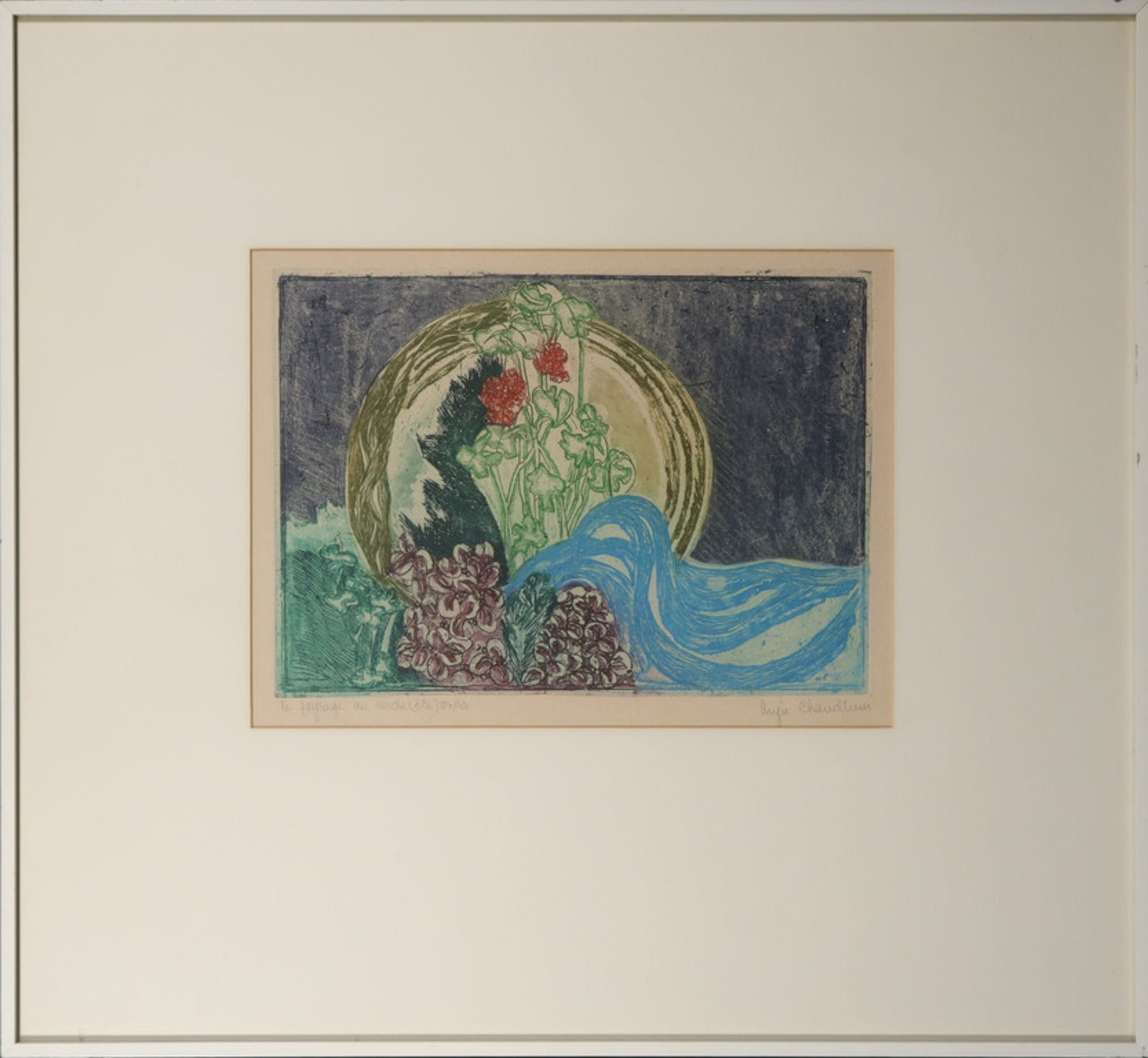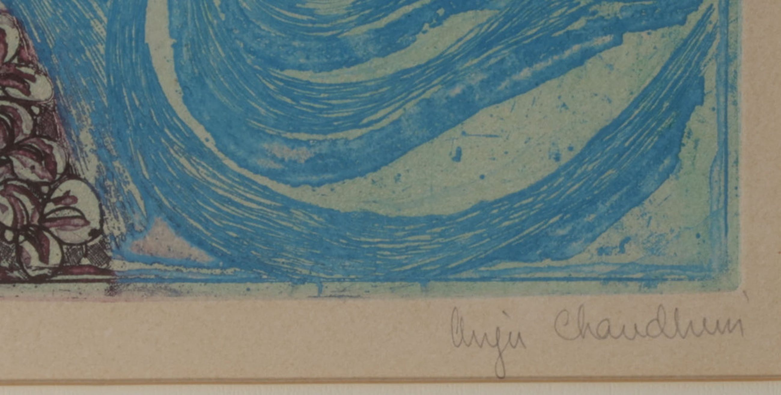Conditie kunstwerk: In goede staat. Het blad is egaal vergeeld.