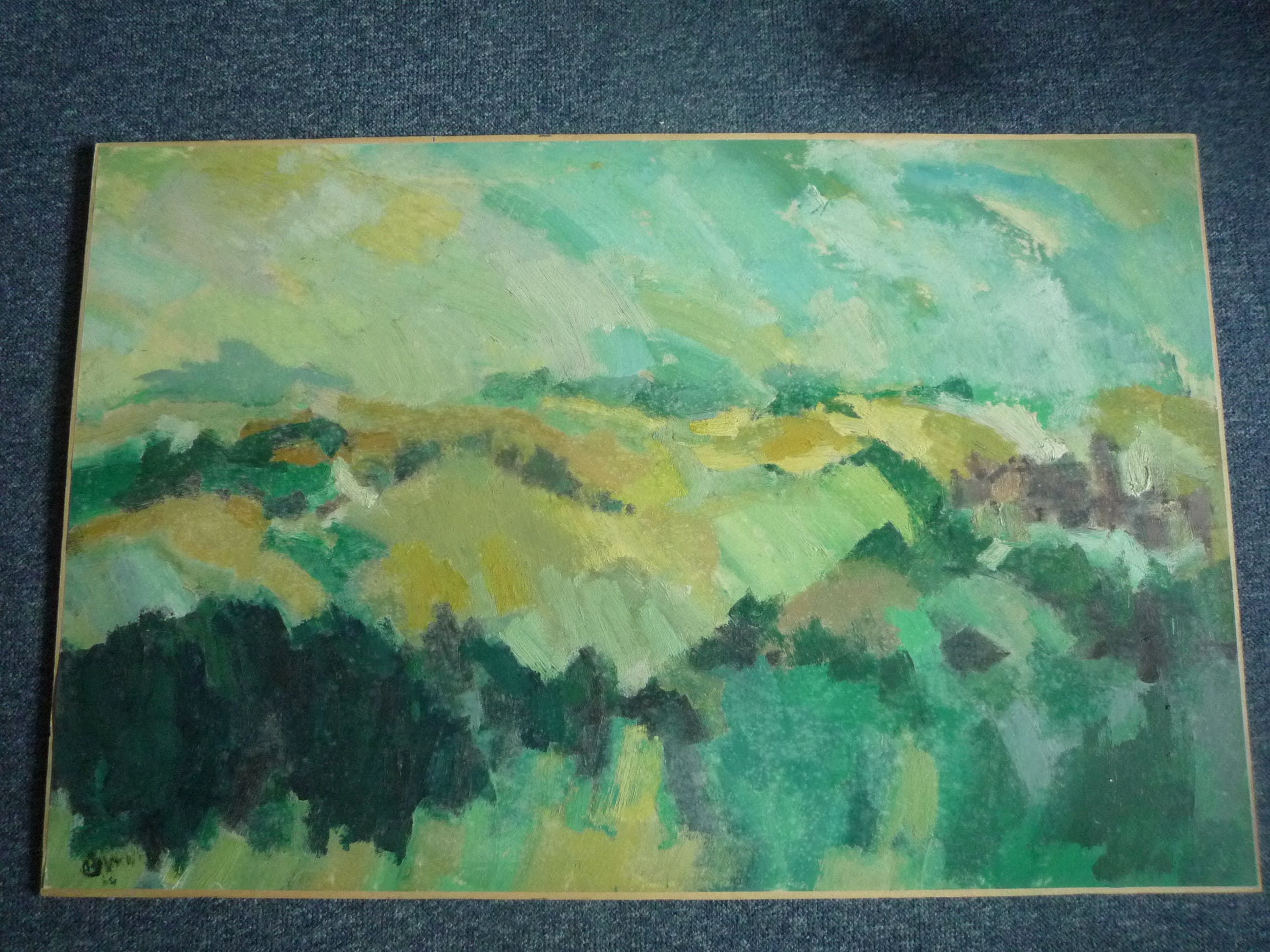 Abstract impressionistisch landschap door de recent overleden Ank Overweel Dit werk komt uit haar nalatenschap