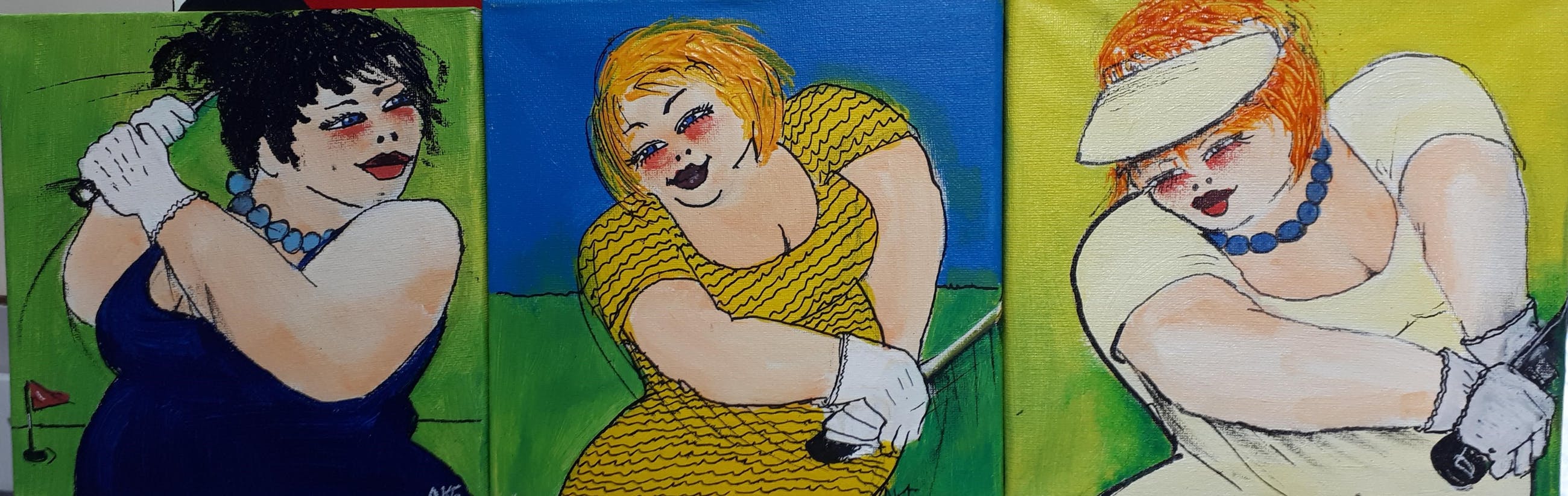 3 kleine schilderijtjes. Anke Peddemors geboren 1947 te Amsterdam. Werkt met acrylverf op doek. Onderwerpen; mensen, dieren en bloemen. Sinds 1975 professioneel kunstenaar. www.ankepeddemors.com