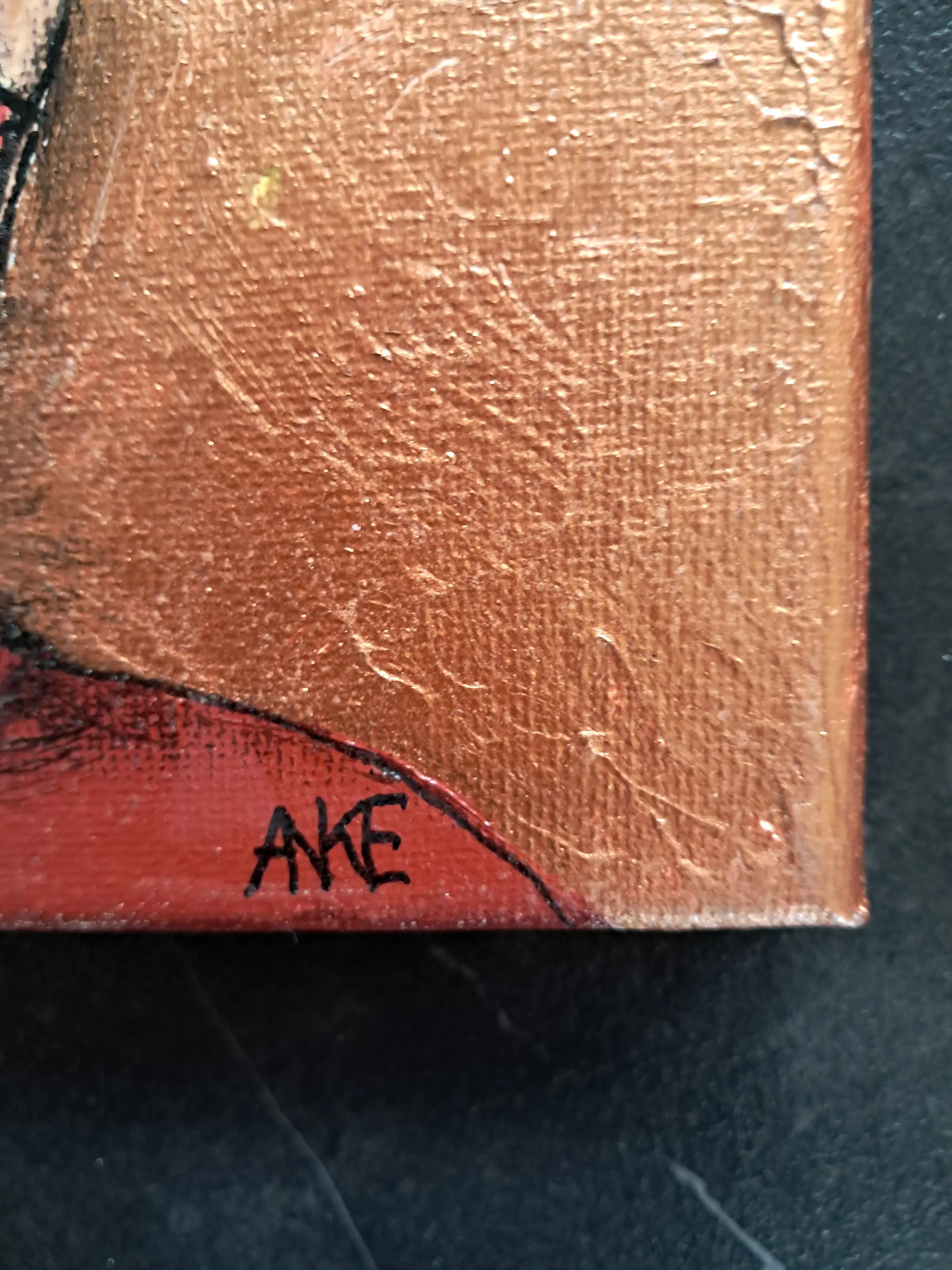 Anke is reeds vanaf 1985 professioneel kunstenaar. Ze schildert vooral mensen, dieren en bloemen. Het werk is op de zijkanten door geschilderd.