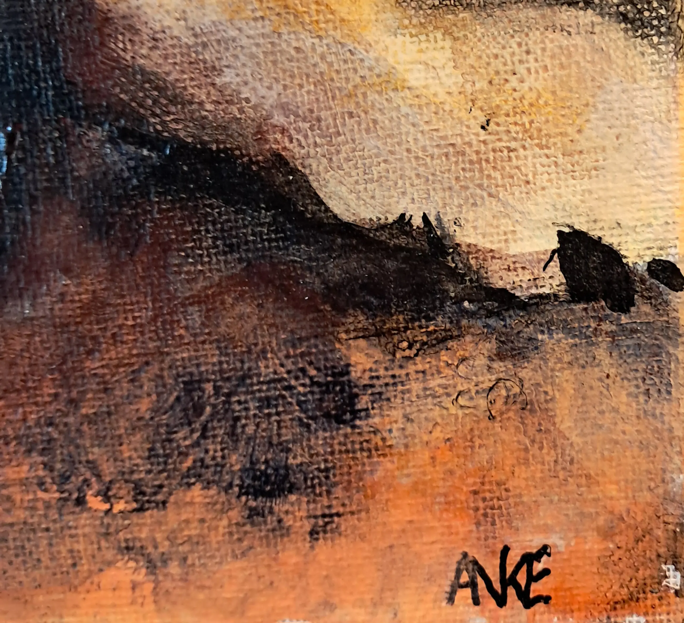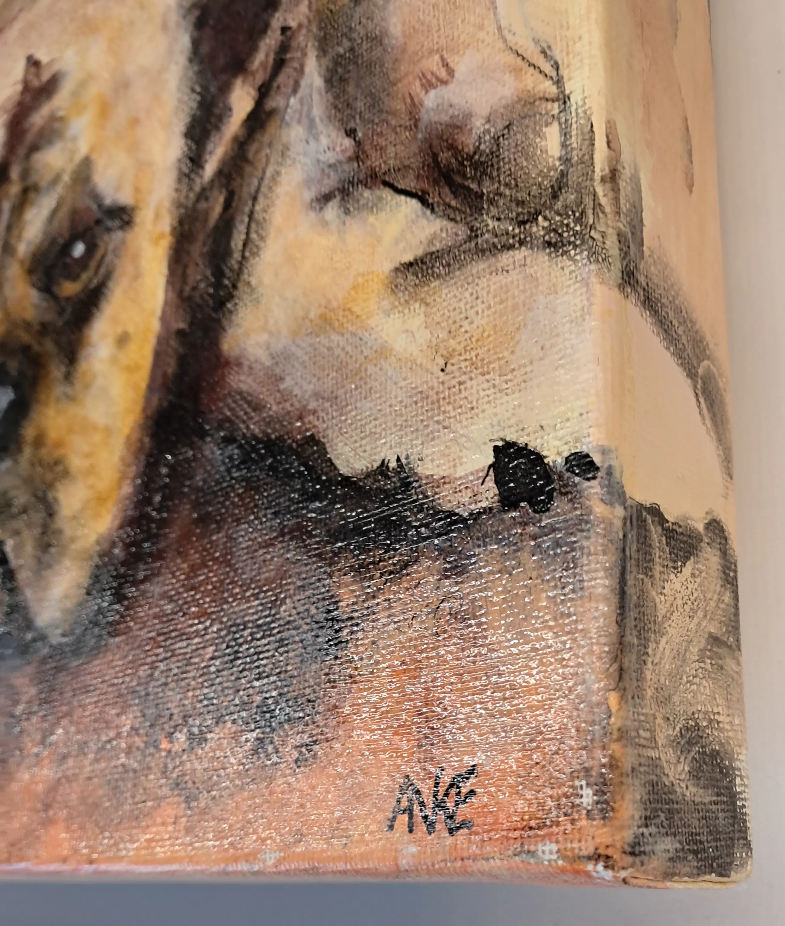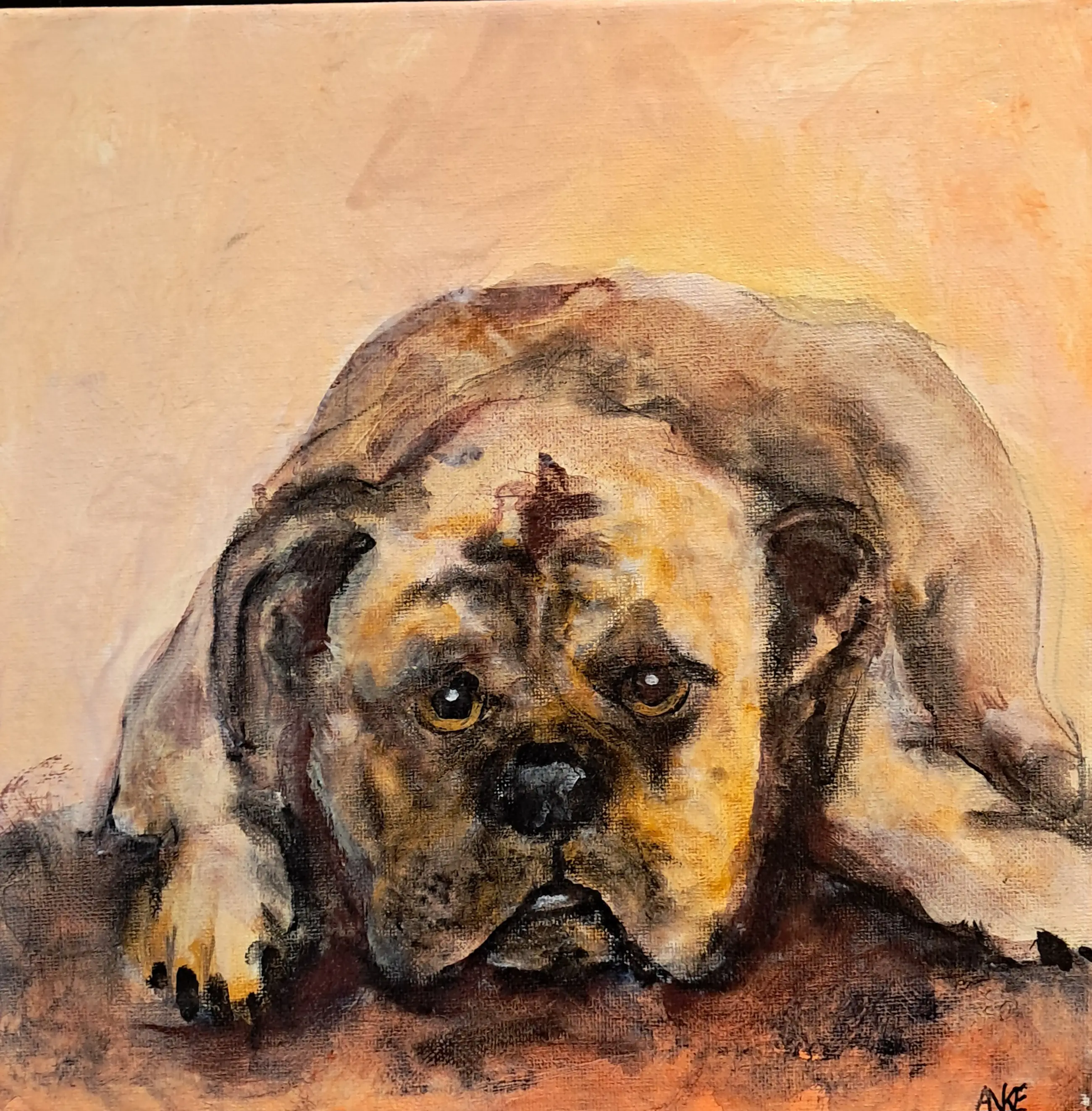 Anke is reeds vanaf 1985 professioneel kunstenaar. Ze schildert vooral mensen, dieren en bloemen. Het schilderij is 4 cm dik en op de randen doorgeschilderd