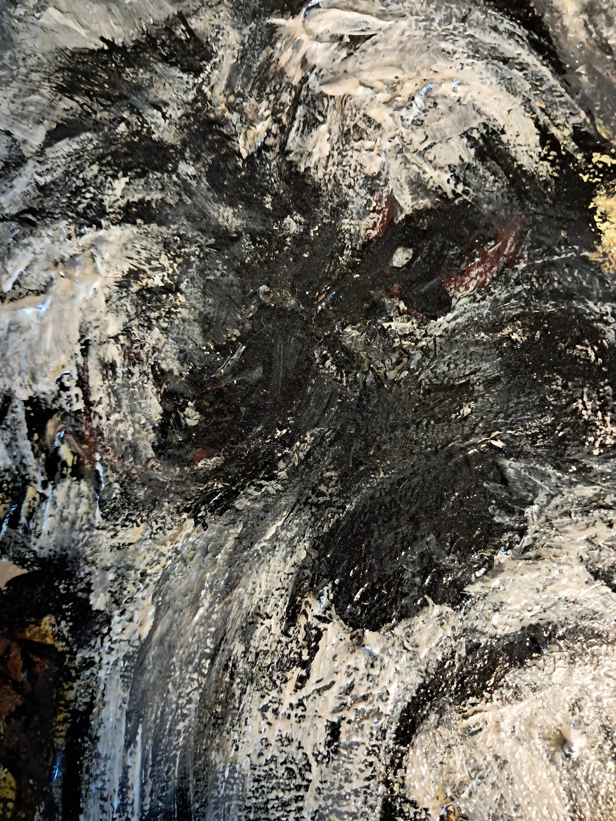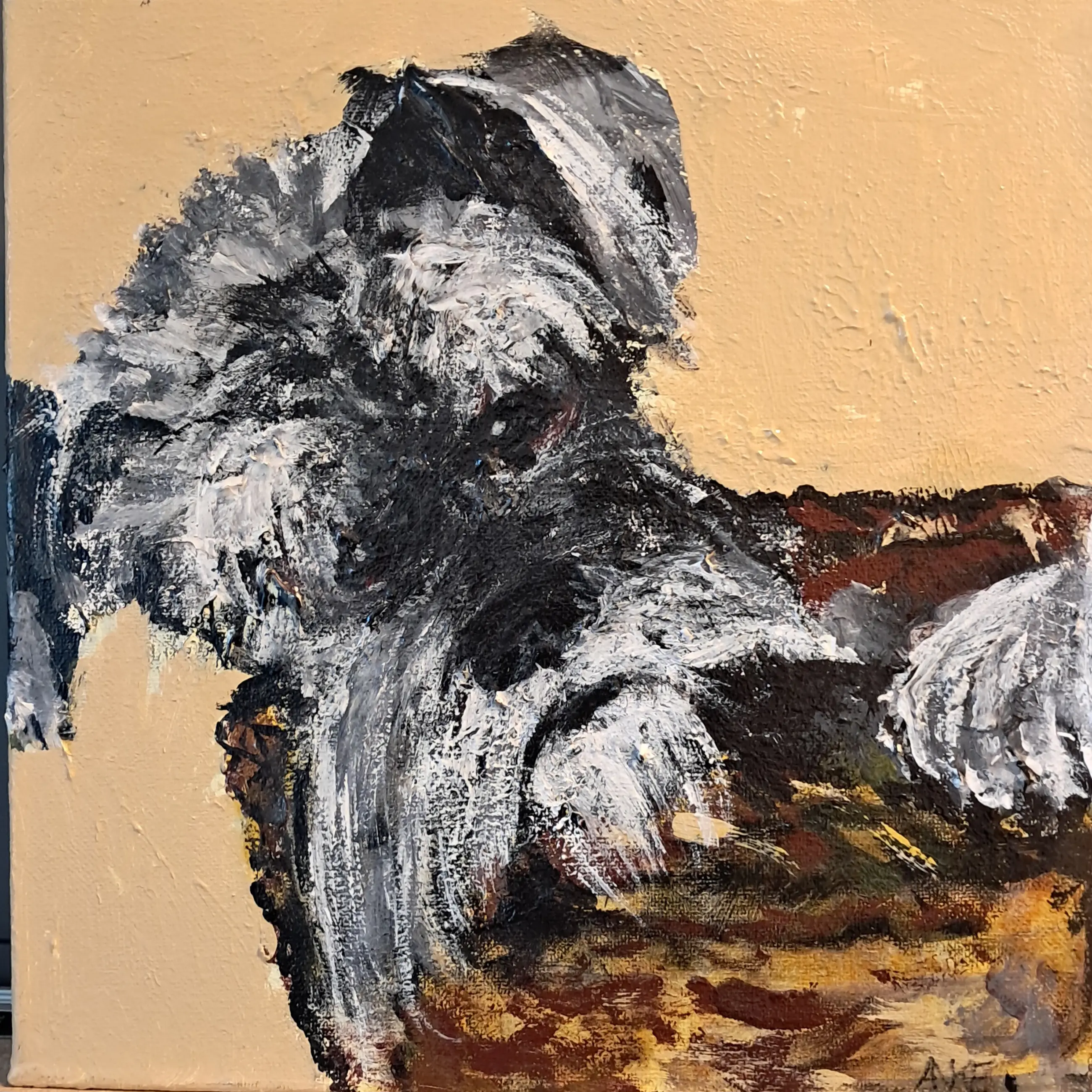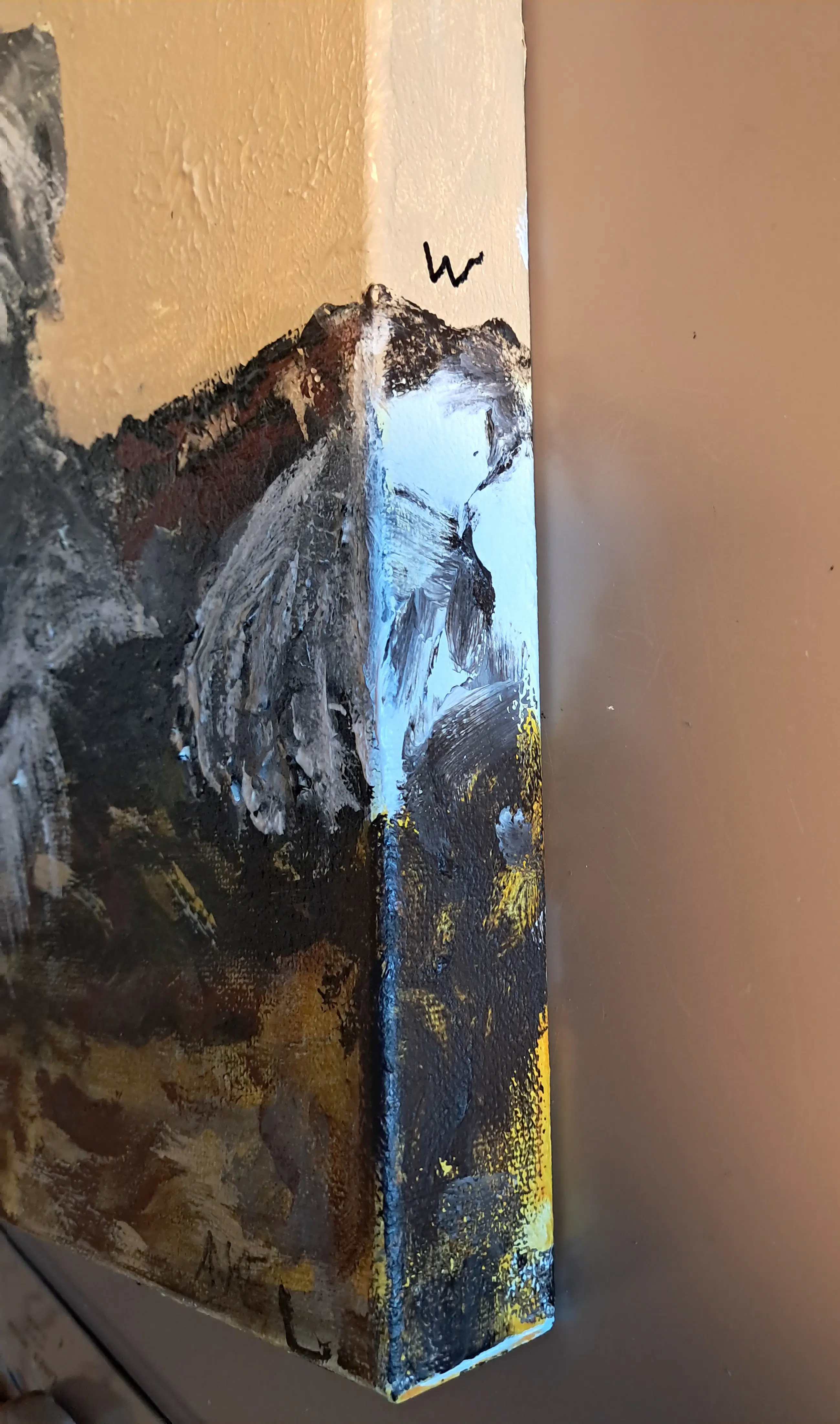 Anke is reeds vanaf 1985 professioneel kunstenaar. Ze schildert vooral mensen, dieren en bloemen. Het schilderij is 4 cm dik en op de randen doorgeschilderd