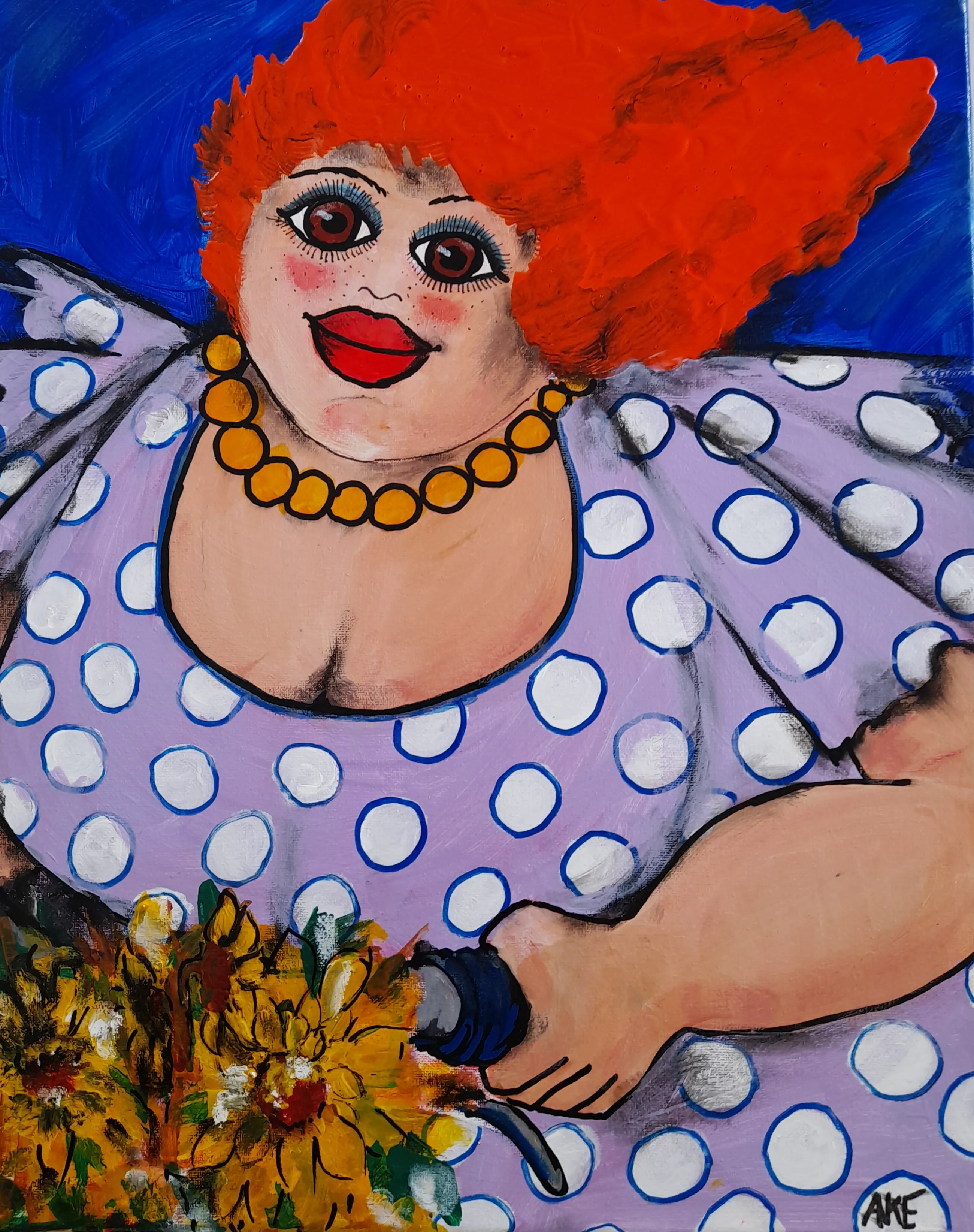 Acryl op doek. 20x20 cm. Vanaf 1975 schildert Anke Peddemors mensen.