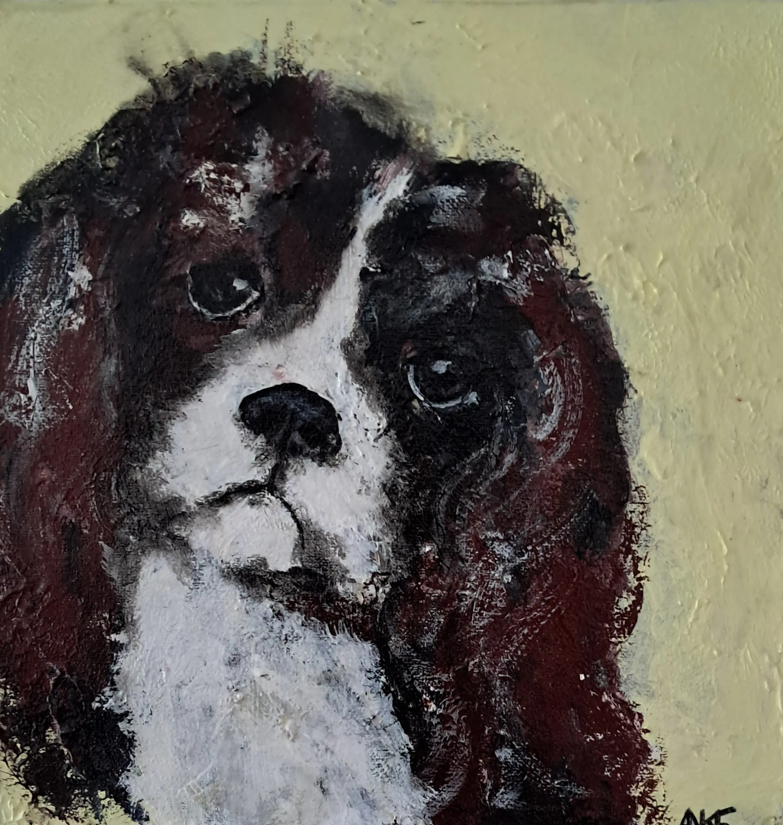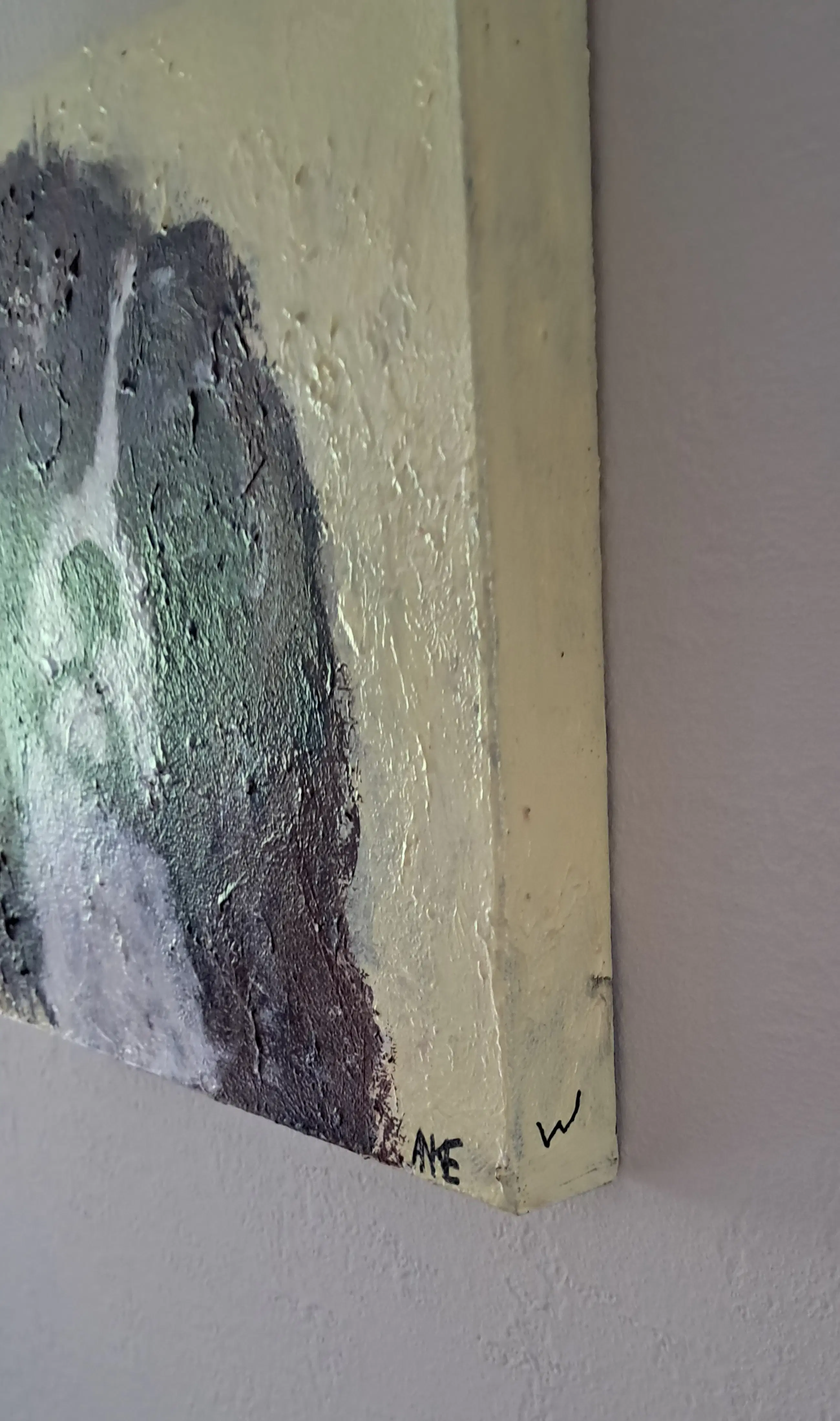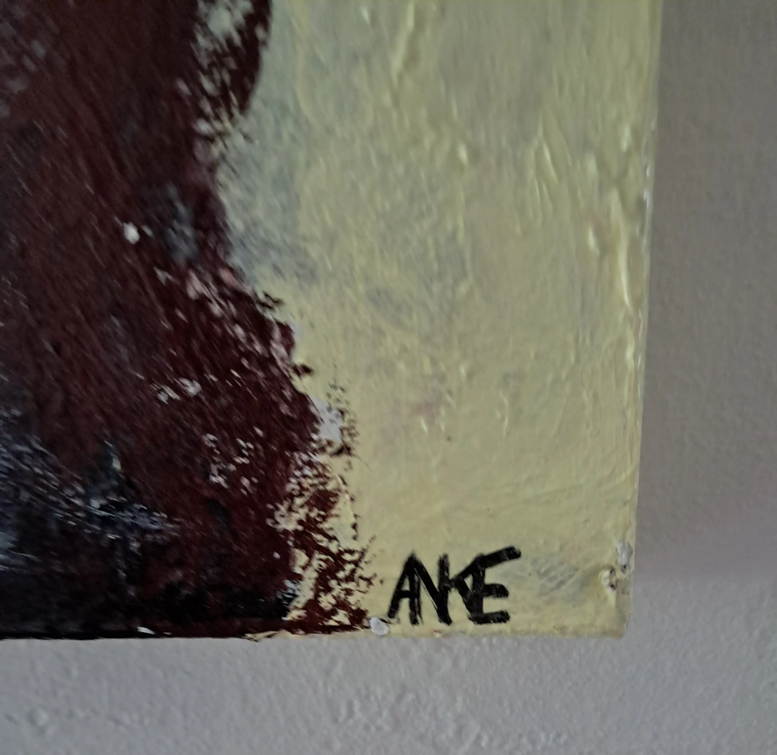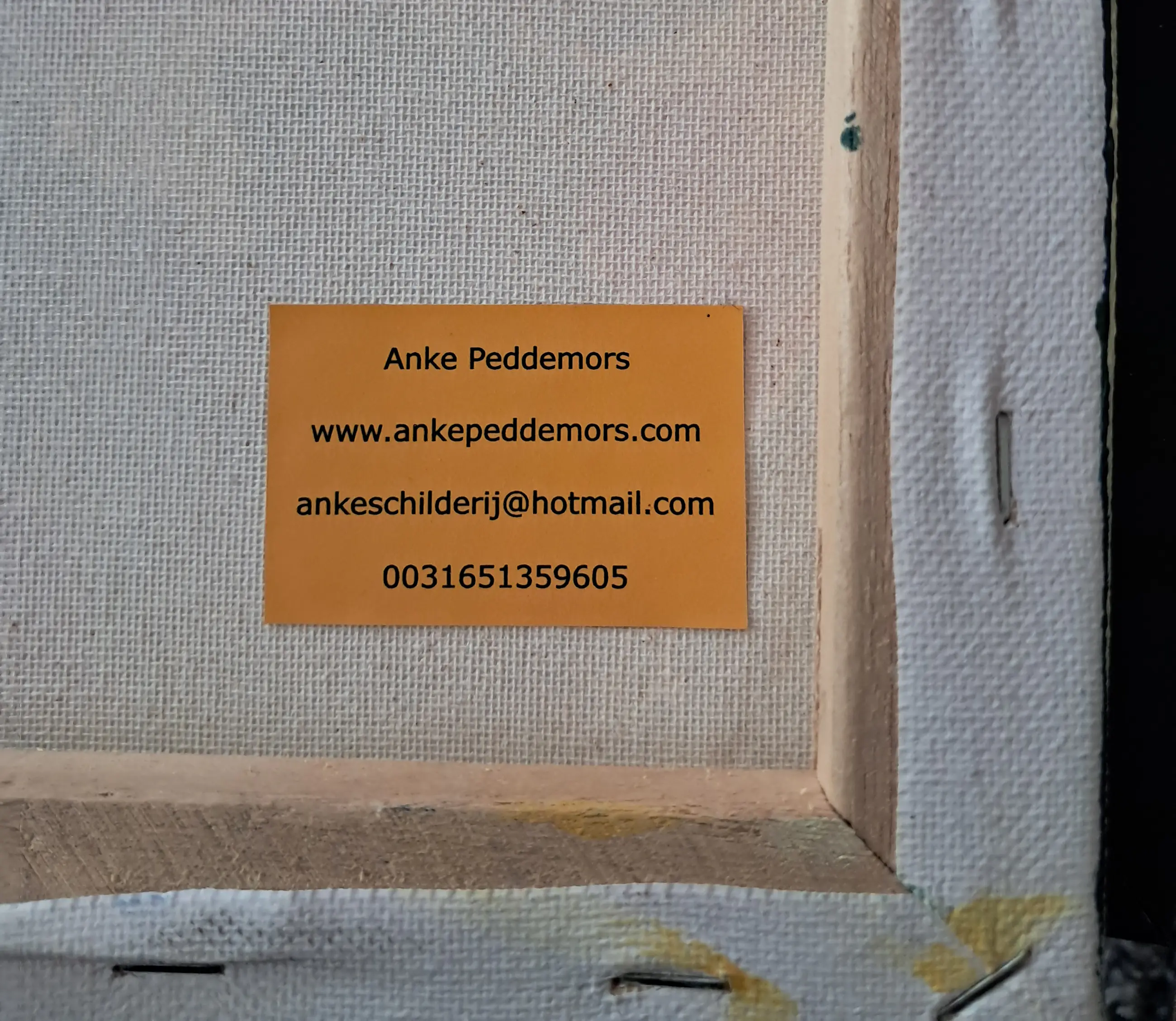 Anke is reeds vanaf 1985 professioneel kunstenaar. Ze schildert vooral mensen, dieren en bloemen. Het schilderij is 4 cm dik en op de randen doorgeschilderd
