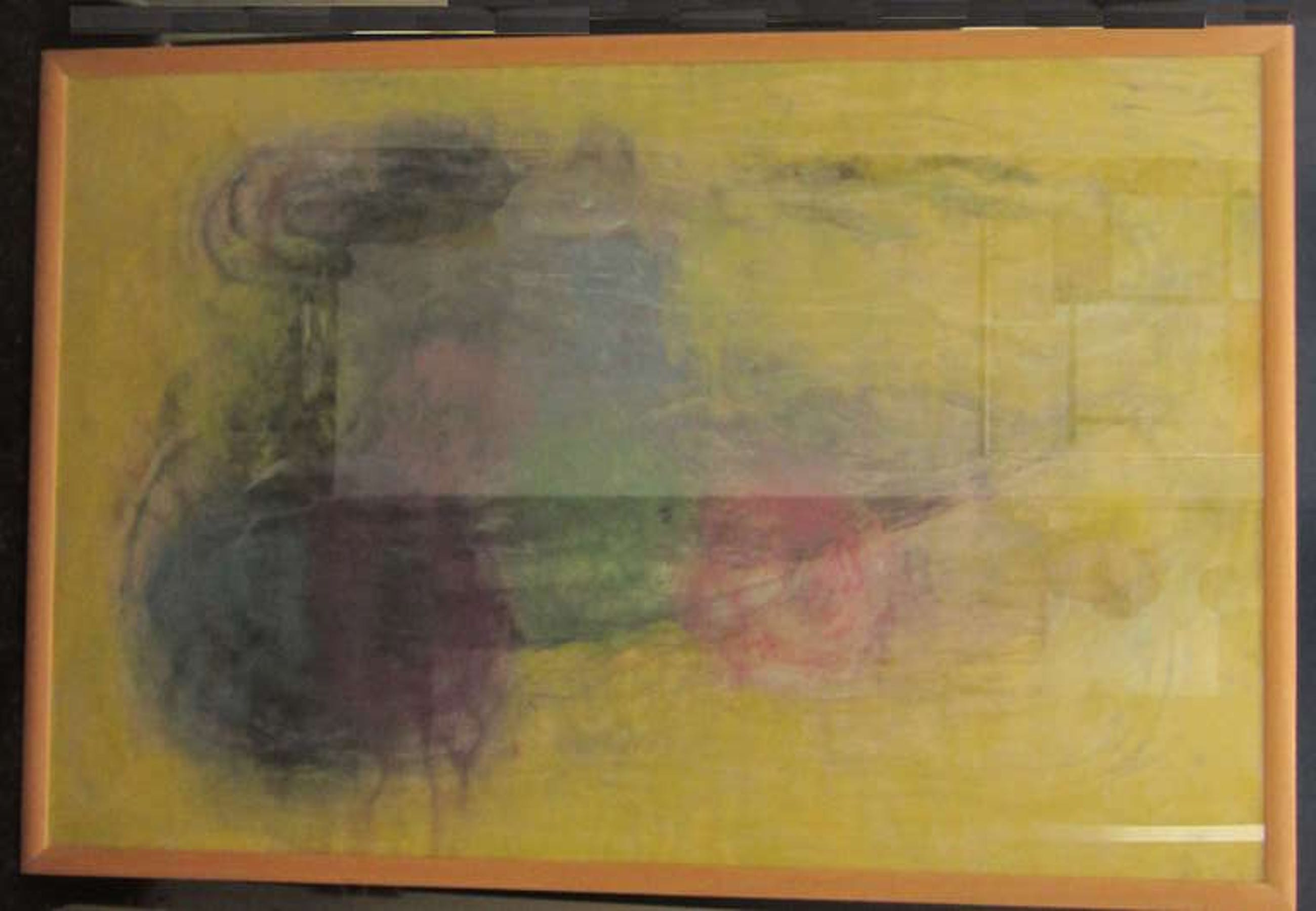 Zeer grote tekening ! (gekleurd pastel krijt en houtskool, achter glas, ingelijst in beuken lijst)