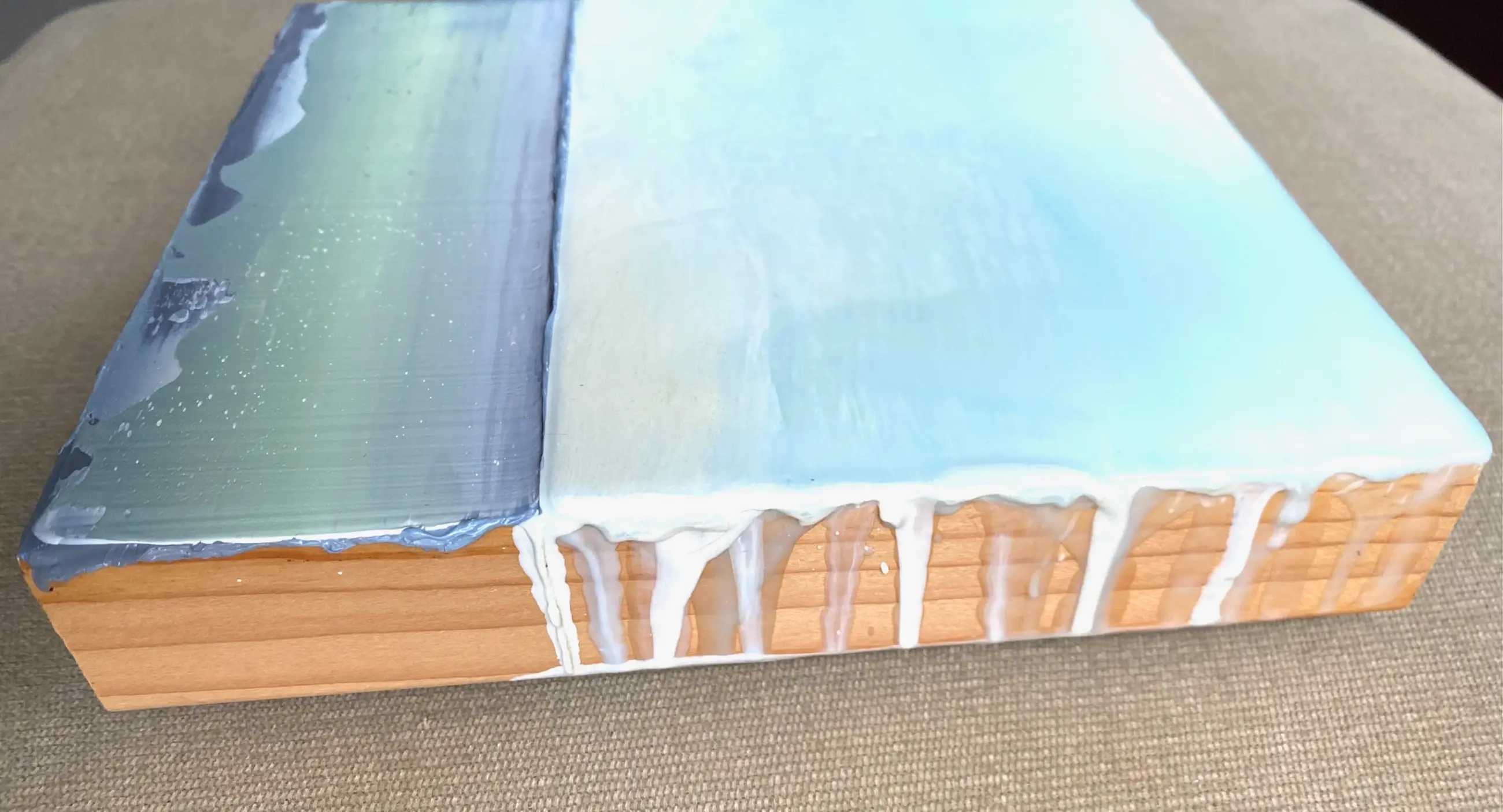 Waddenlandschap, encaustiek op houtpaneel Onderkant olieverf bovenkant pigmenten in bijenwas