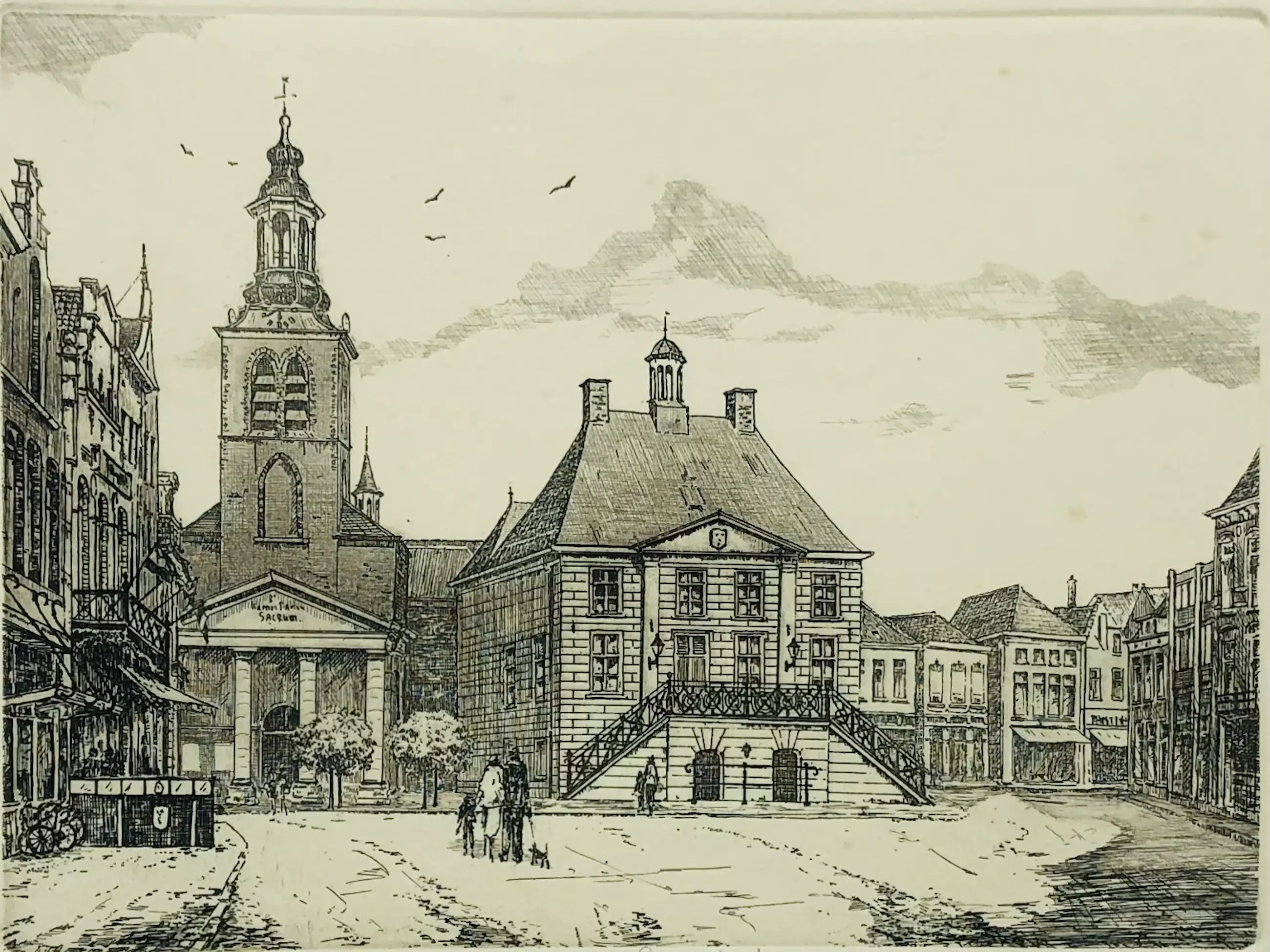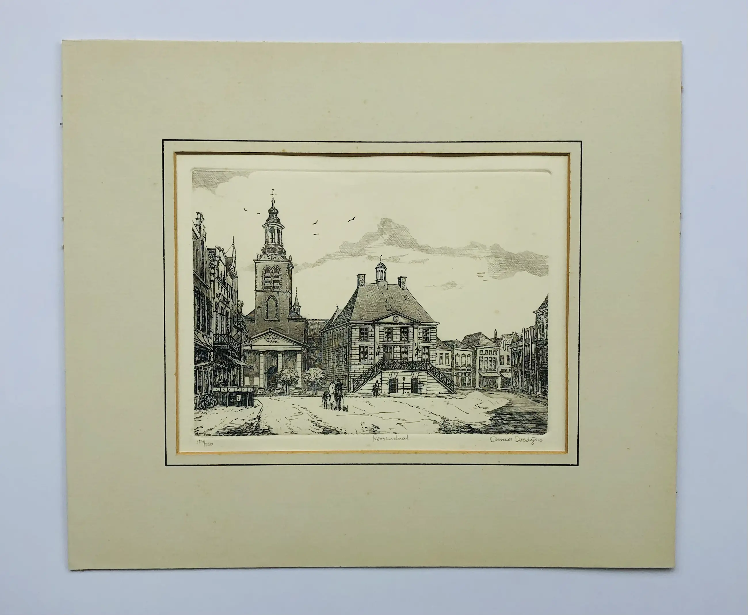 Fraaie ets van Anna Doedijns (1942). Werk op leeftijd, passe partout moet vervangen worden.