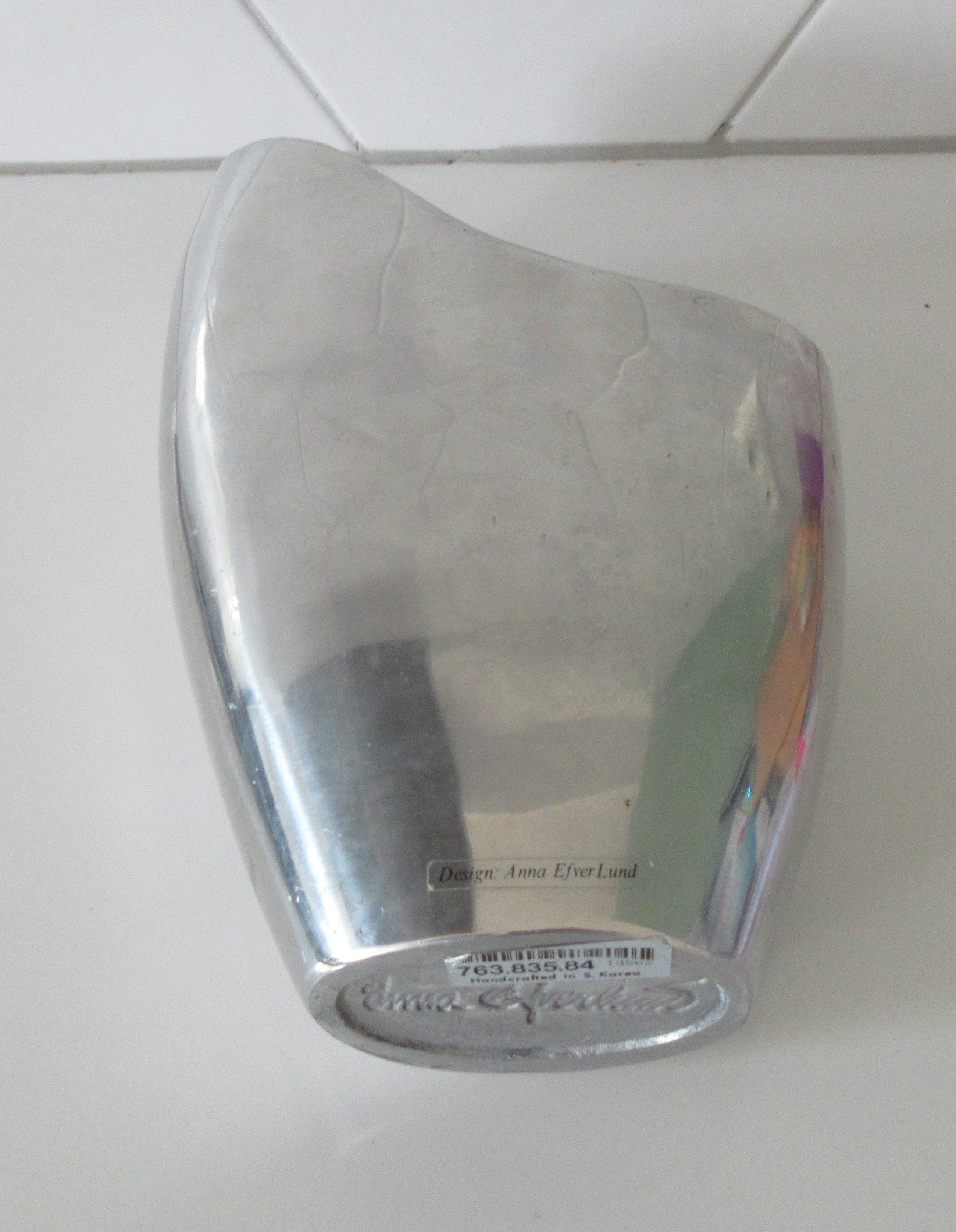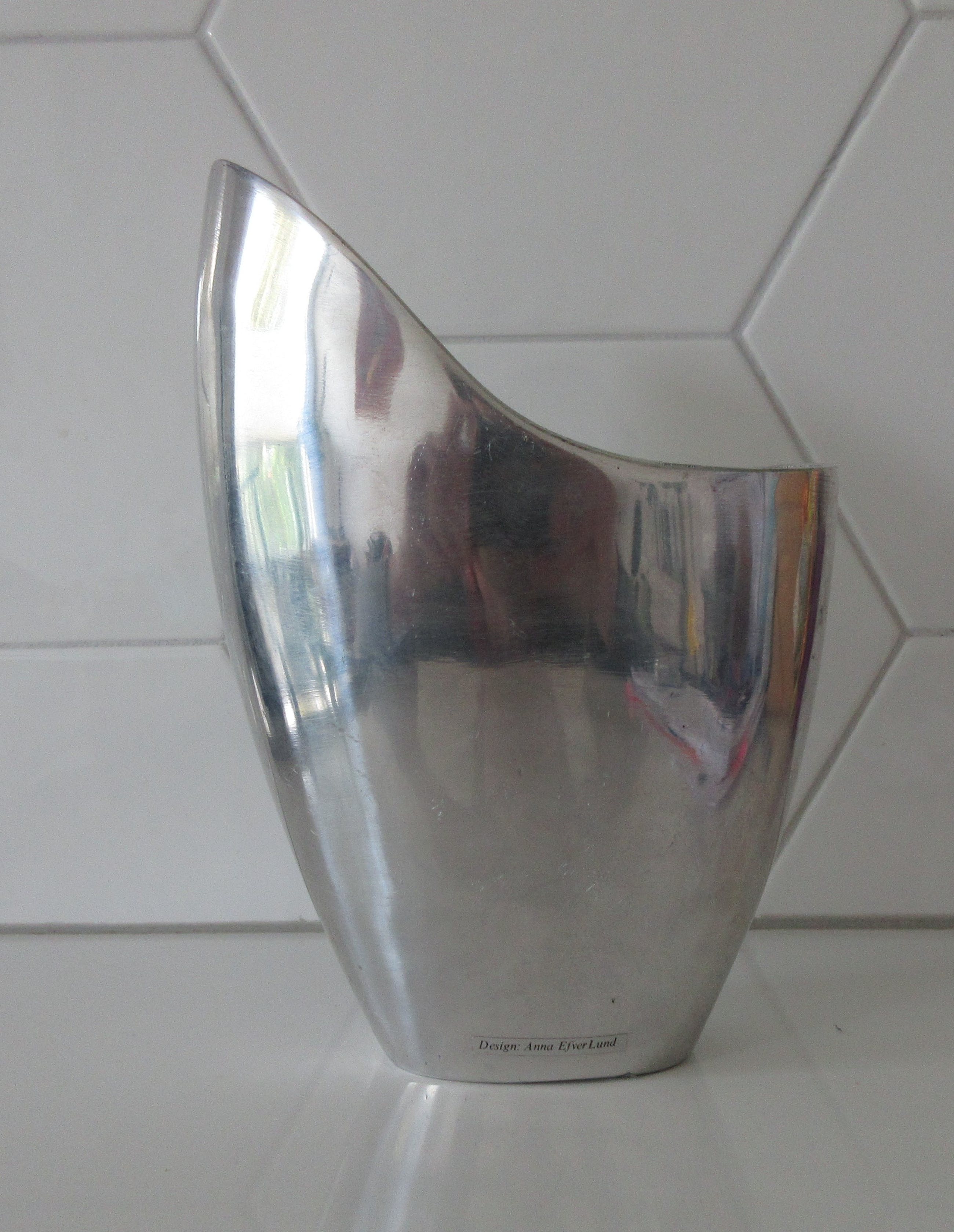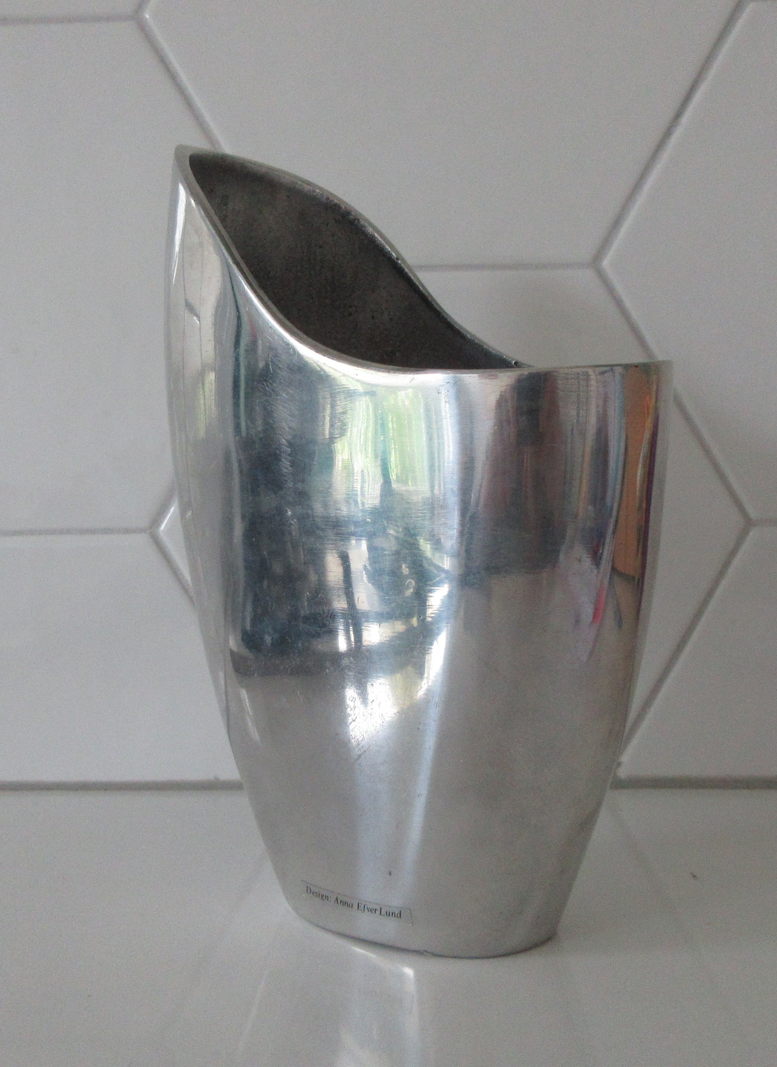 Aluminium hand gemaakte Design vaas van Anna Efverlund. In prima conditie. Aan de onderzijde gesigneerd Efverlund en voorzien van een sticker met de naam van de ontwerpster.