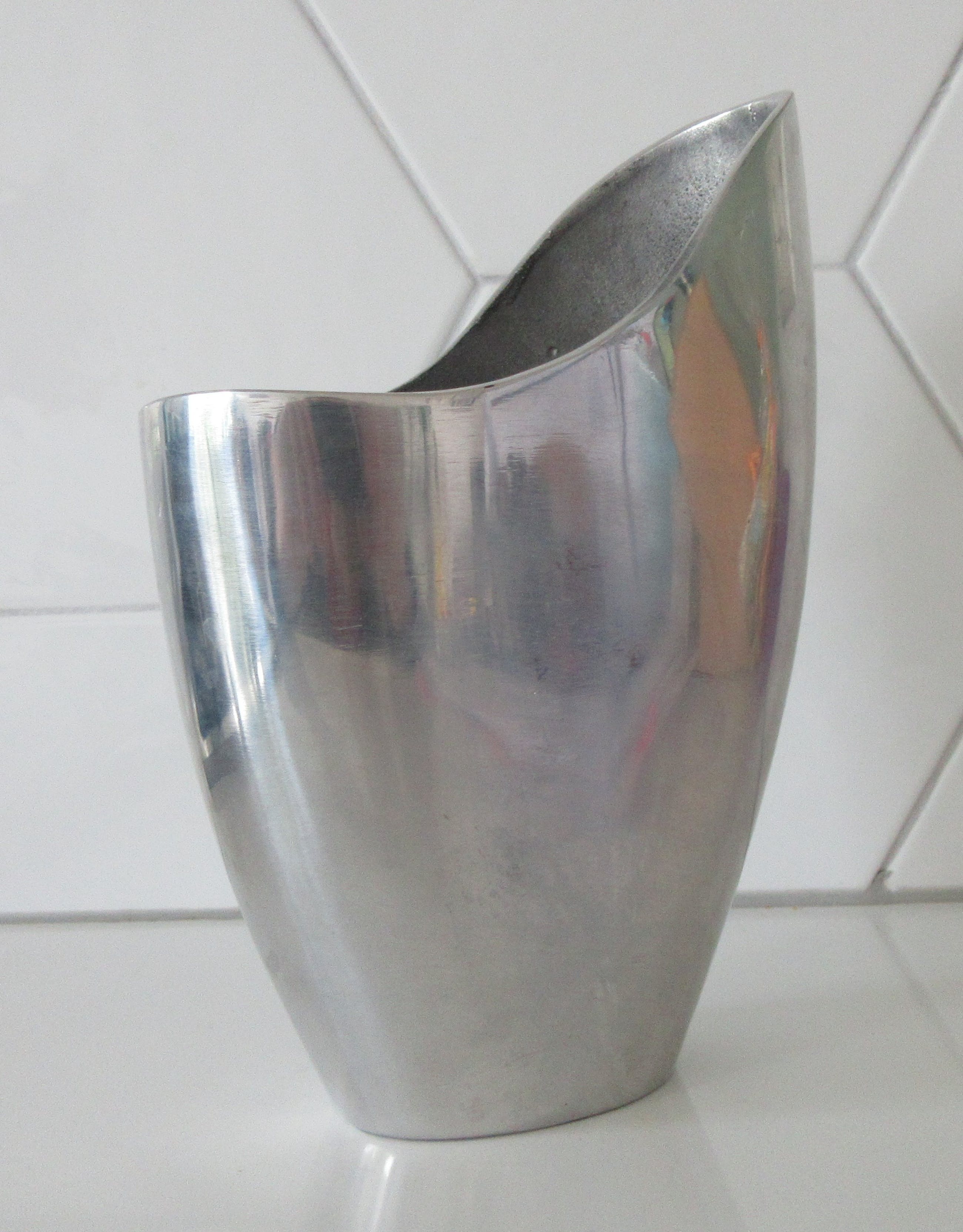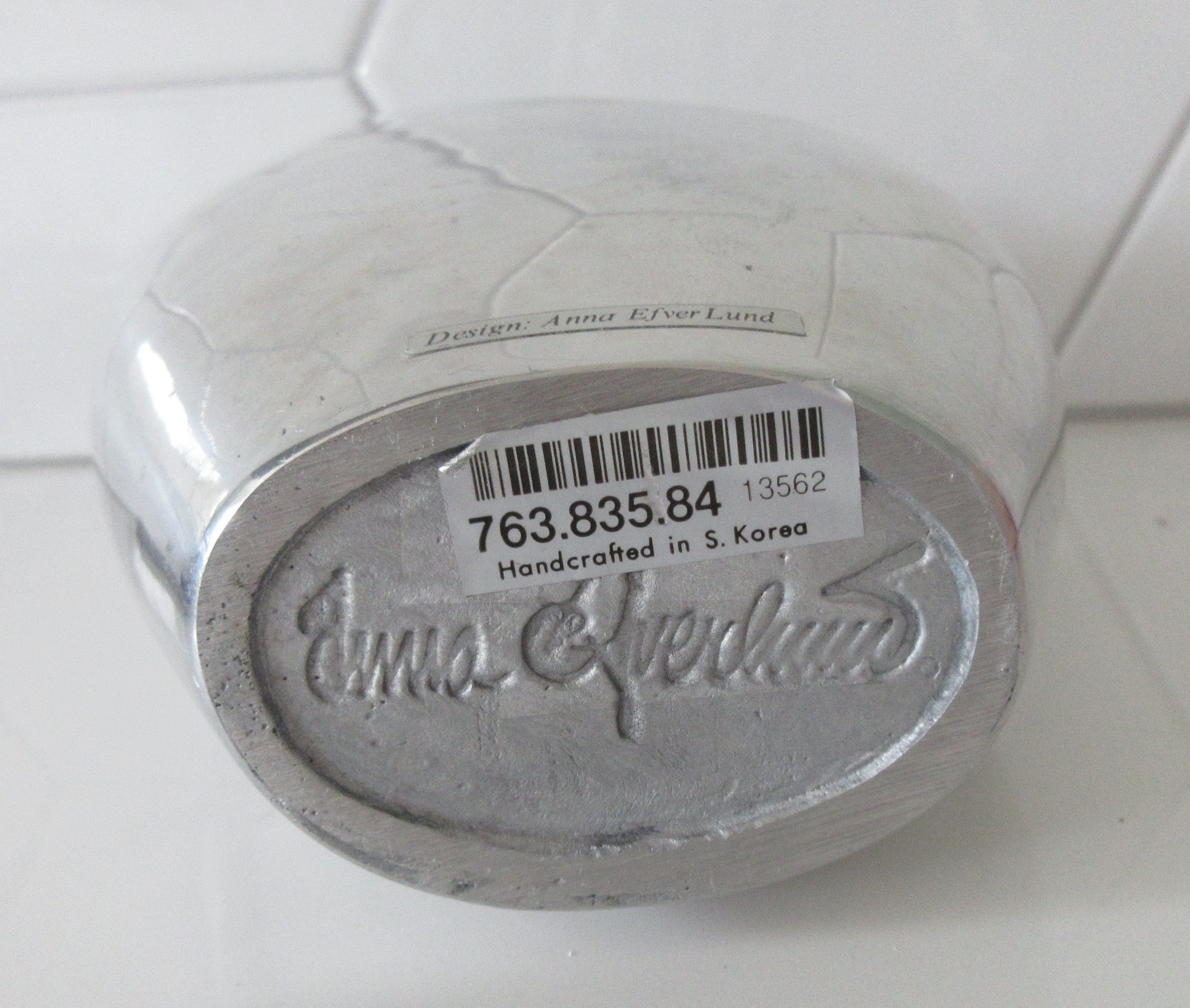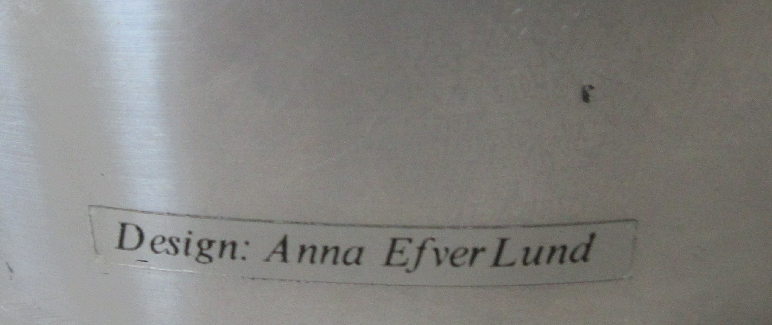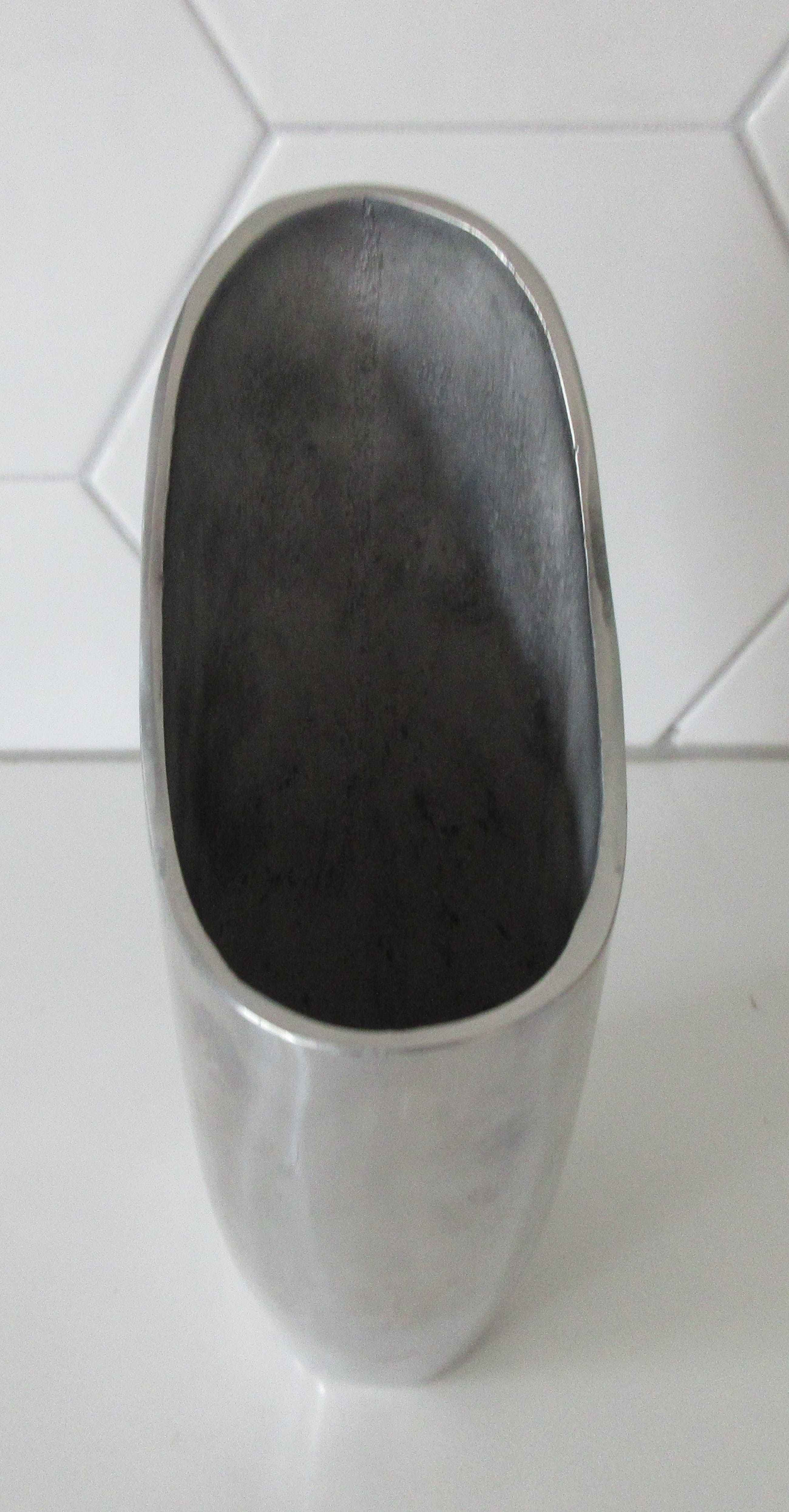 Aluminium hand gemaakte Design vaas van Anna Efverlund. In prima conditie. Aan de onderzijde gesigneerd Efverlund en voorzien van een sticker met de naam van de ontwerpster.