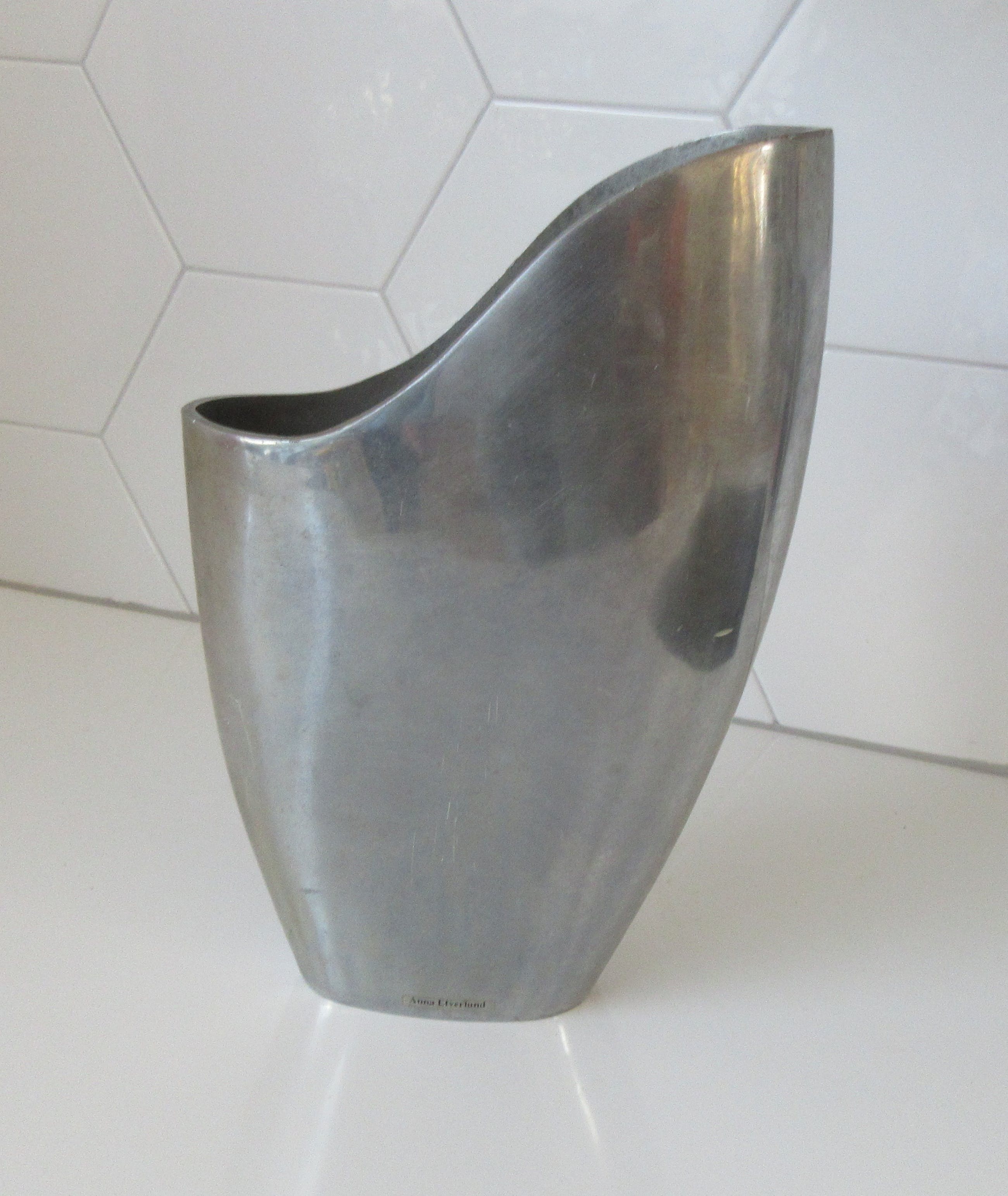 Grote Aluminium Design Vaas. In prima gebruikte conditie, gemerkt met een sticker aan de zijkant.