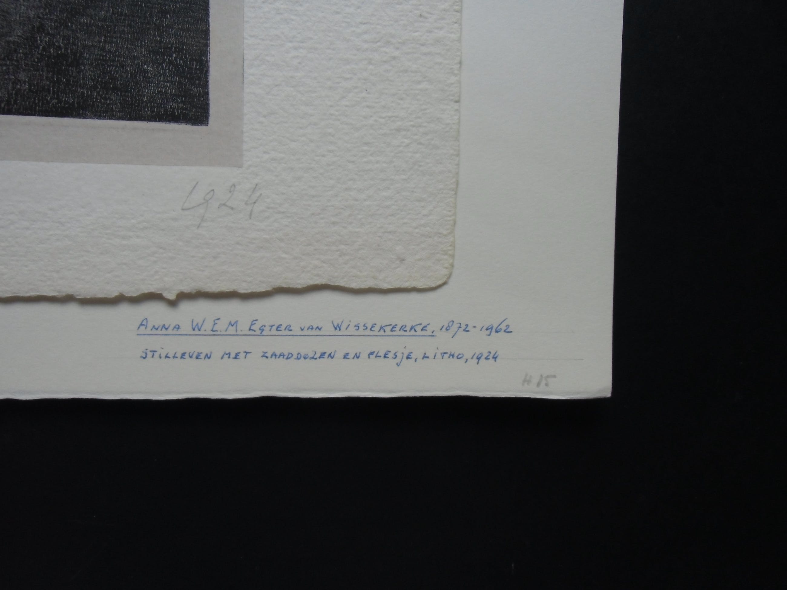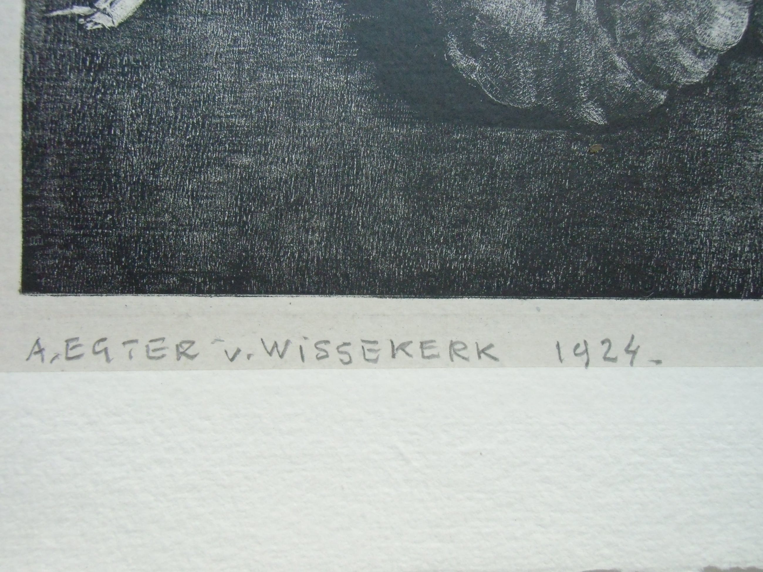 Met potlood gesigneerde litho van Anne Egter van Wissekerke uit 1924. Los opgenomen in passepartout. Zeer goede conditie. Monogram l.b. op de steen.