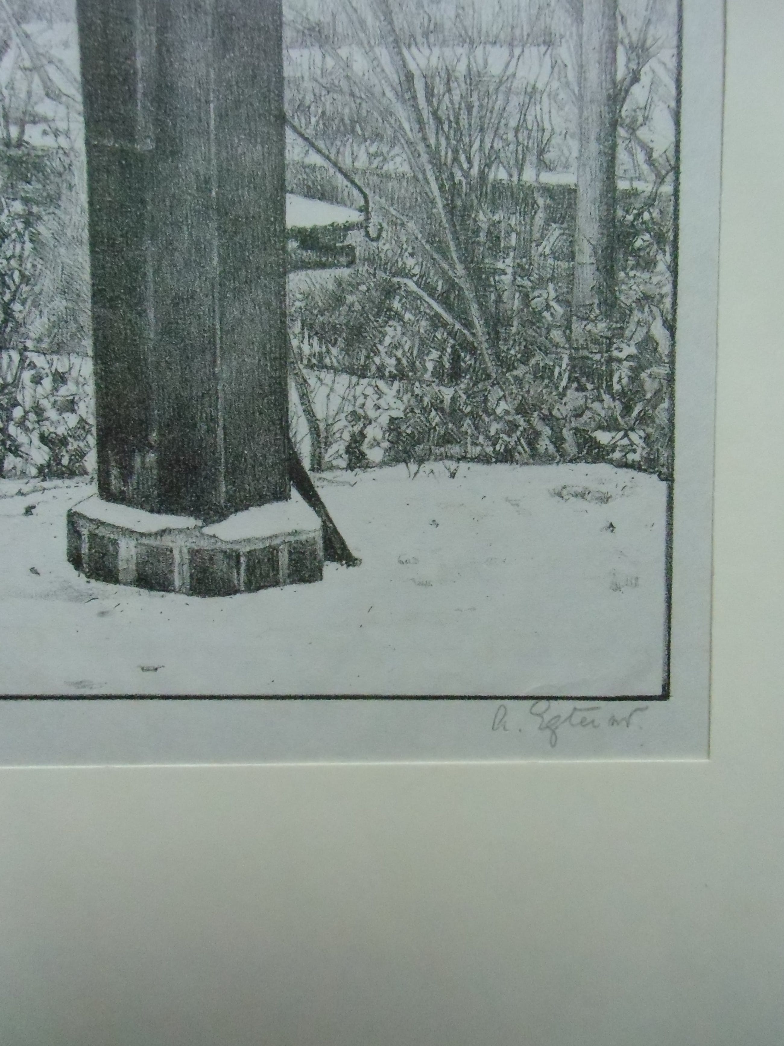 Een subtiele litho van Anna Egter over een bijzonder onderwerp. Monogram l.o. en gesigneerd met potlood r.o. Uit de eerste helft van de vorige eeuw in zeer goede staat.