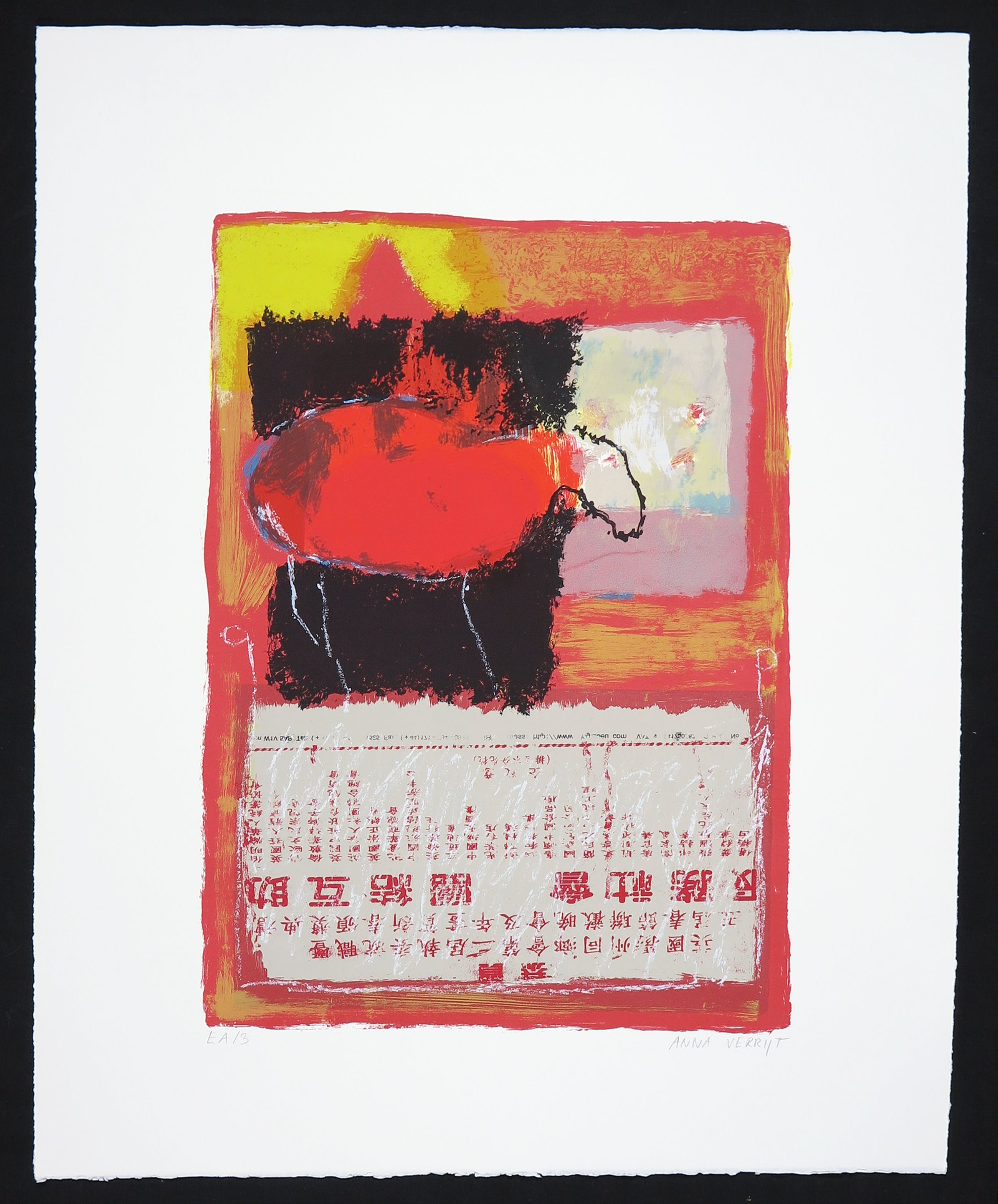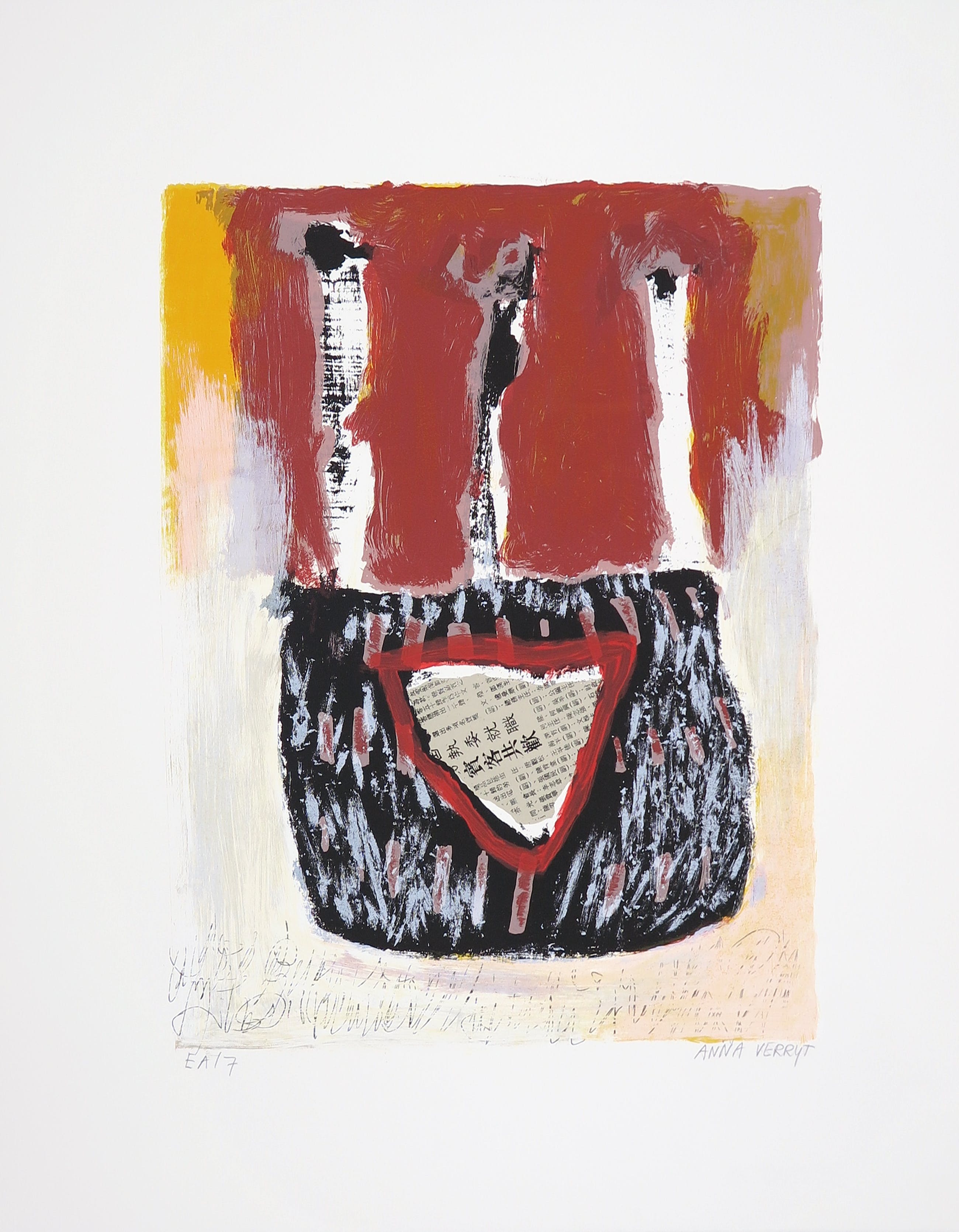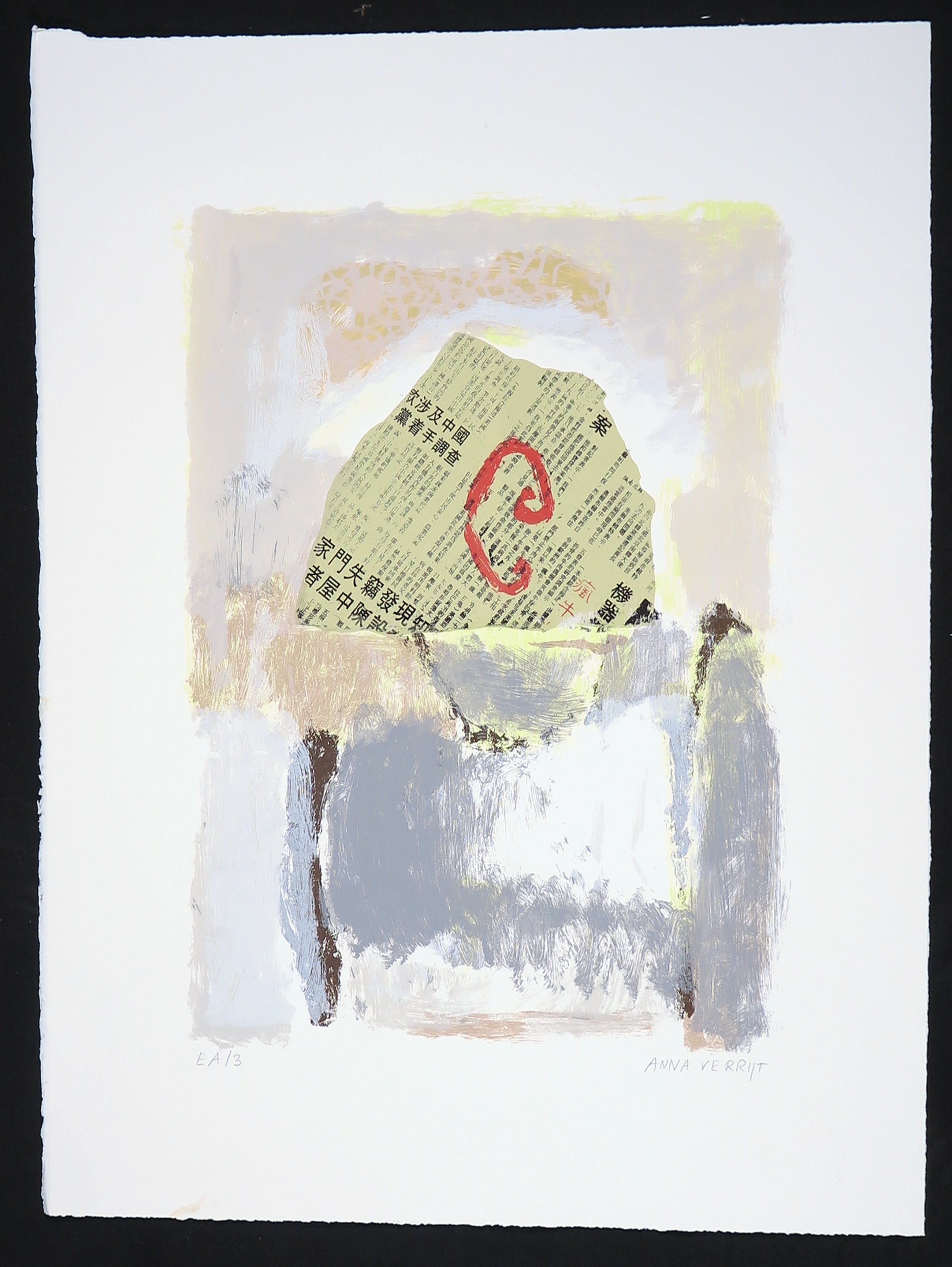 Portfolio met vijf zeefdrukken van Anna Verrijt, getiteld 'Scraps'.